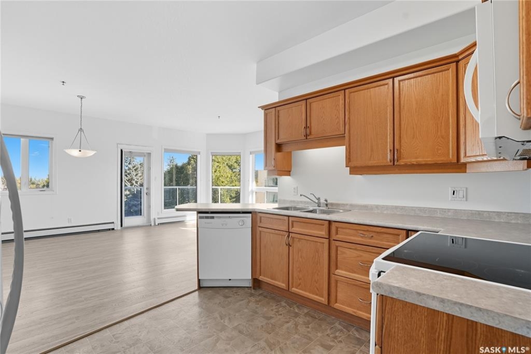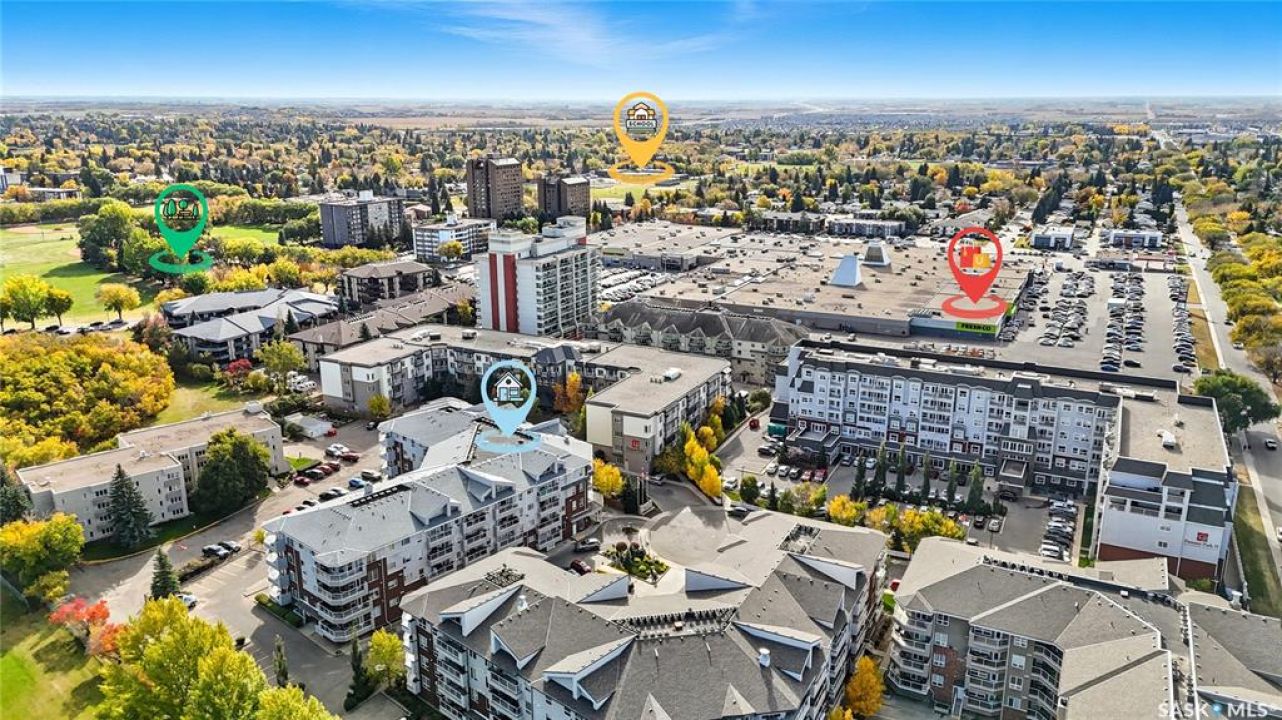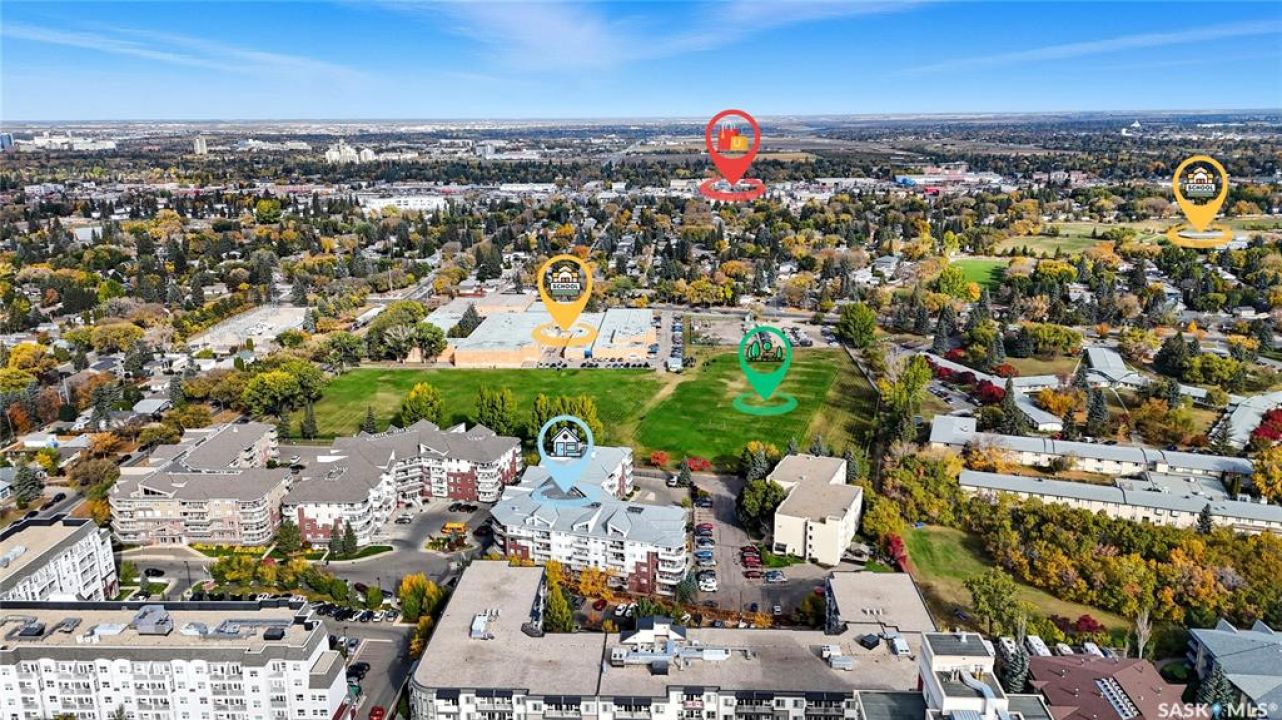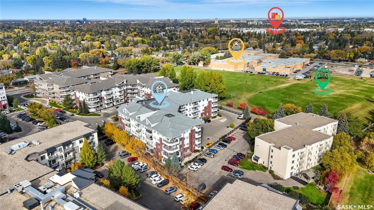 Welcome to unit #314 – 110 Armistice Way, located in Nutana S.C. With a beautiful location, situated walking distance to Market Mall, Nutana Kiwanis Park, many schools, and easy access onto Circle Drive and 8th Street. Stepping inside, you are welcomed with an abundance of natural light that this corner unit offers, an open layout, and fresh paint throughout. Your kitchen provides ample cabinetry, dishwasher, stove, fridge and OTR microwave. Next is your dining / living room space with spectacular park views wrapped around, with access to your balcony to enjoy those morning coffees! Behind the glass door, you have your own office/den. The spacious primary bedroom includes a walk-in closet with custom organizers, and a 4-pc bath with jet tub. An additional bedroom, 4-pc bath, and in-suite laundry room with stacking washer/dryer and deep freeze complete this home! Complex includes an exercise room, as well as a large amenities room, and visitor parking. Come see this very well kept, one of a kind unit in this highly desirable building!