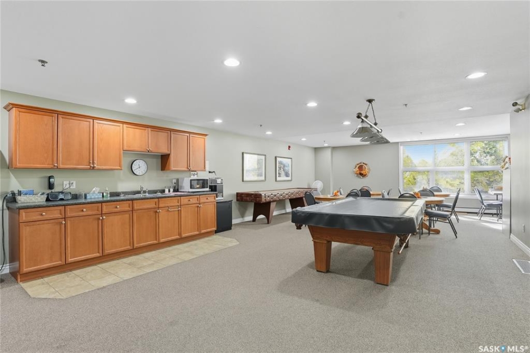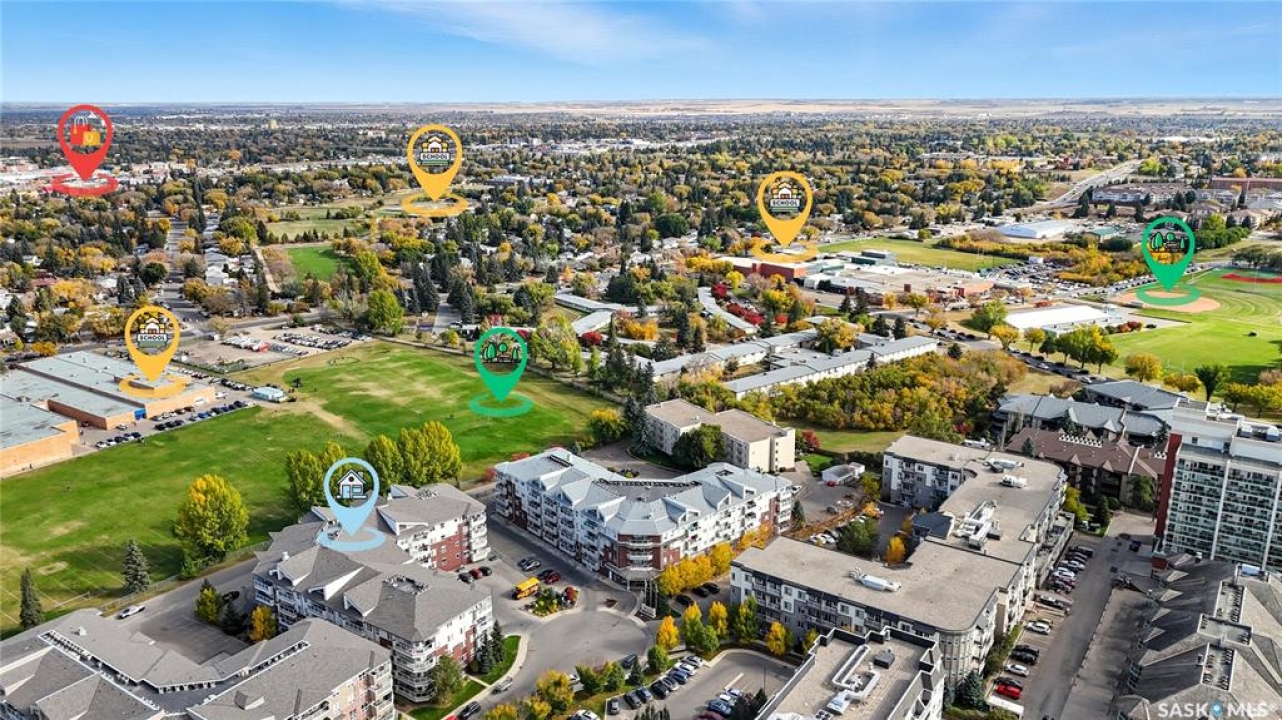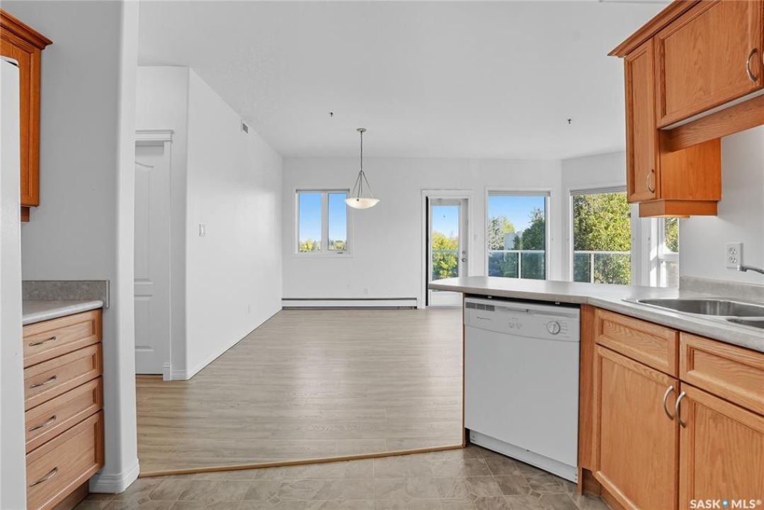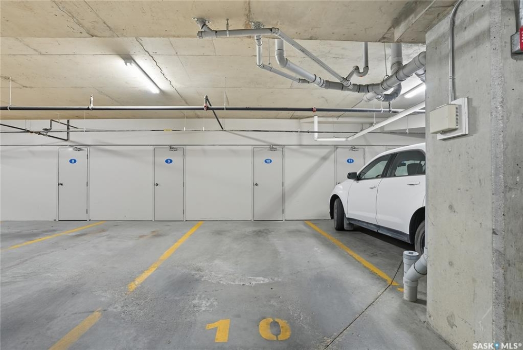 Welcome to unit #314 – 110 Armistice Way, located in Nutana S.C. With a beautiful location, situated walking distance to Market Mall, Nutana Kiwanis Park, many schools, and easy access onto Circle Drive and 8th Street. Stepping inside, you are welcomed with an abundance of natural light that this corner unit offers, an open layout, and fresh paint throughout. Your kitchen provides ample cabinetry, dishwasher, stove, fridge and OTR microwave. Next is your dining / living room space with spectacular park views wrapped around, with access to your balcony to enjoy those morning coffees! Behind the glass door, you have your own office/den. The spacious primary bedroom includes a walk-in closet with custom organizers, and a 4-pc bath with jet tub. An additional bedroom, 4-pc bath, and in-suite laundry room with stacking washer/dryer and deep freeze complete this home! Complex includes an exercise room, as well as a large amenities room, and visitor parking. Come see this very well kept, one of a kind unit in this highly desirable building!