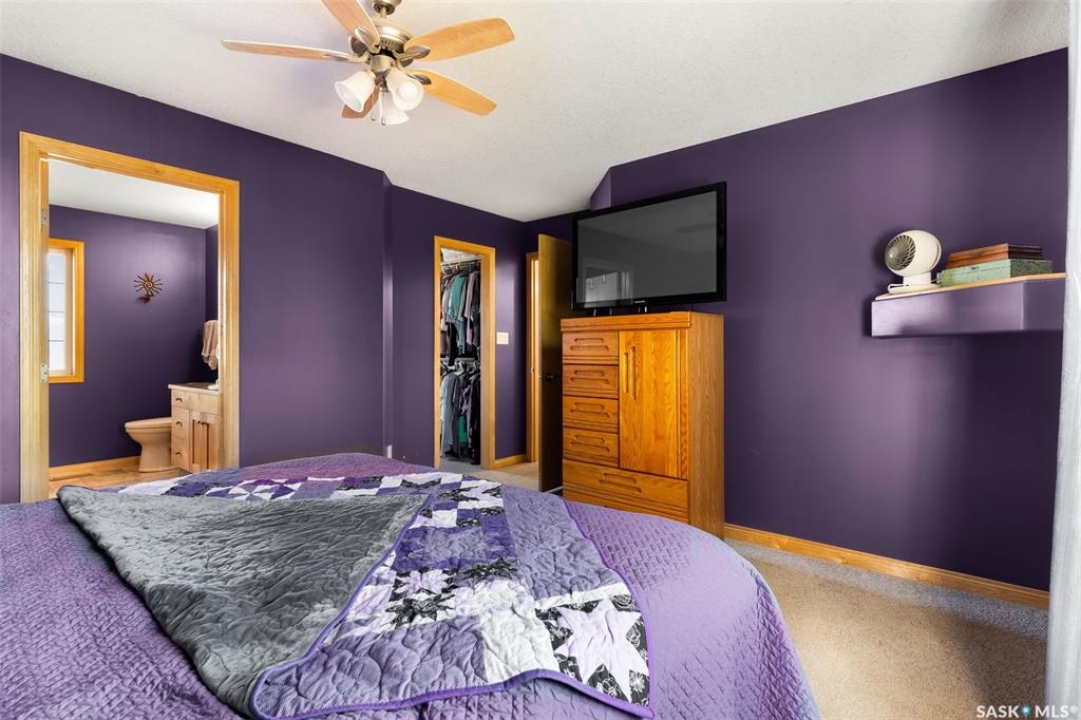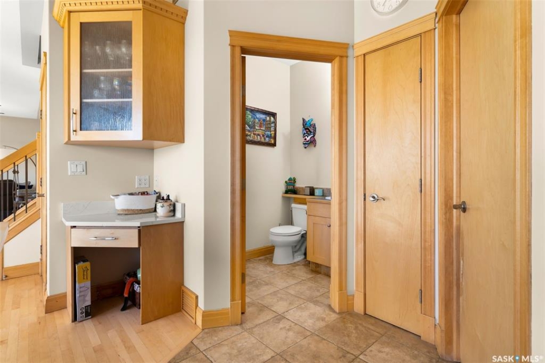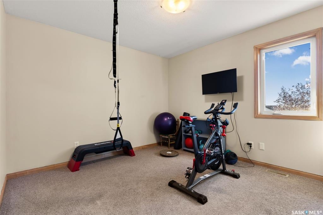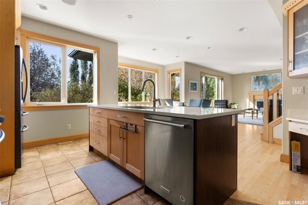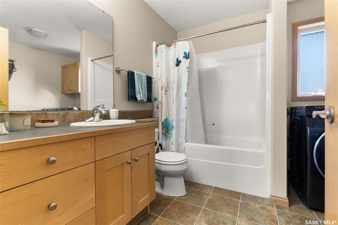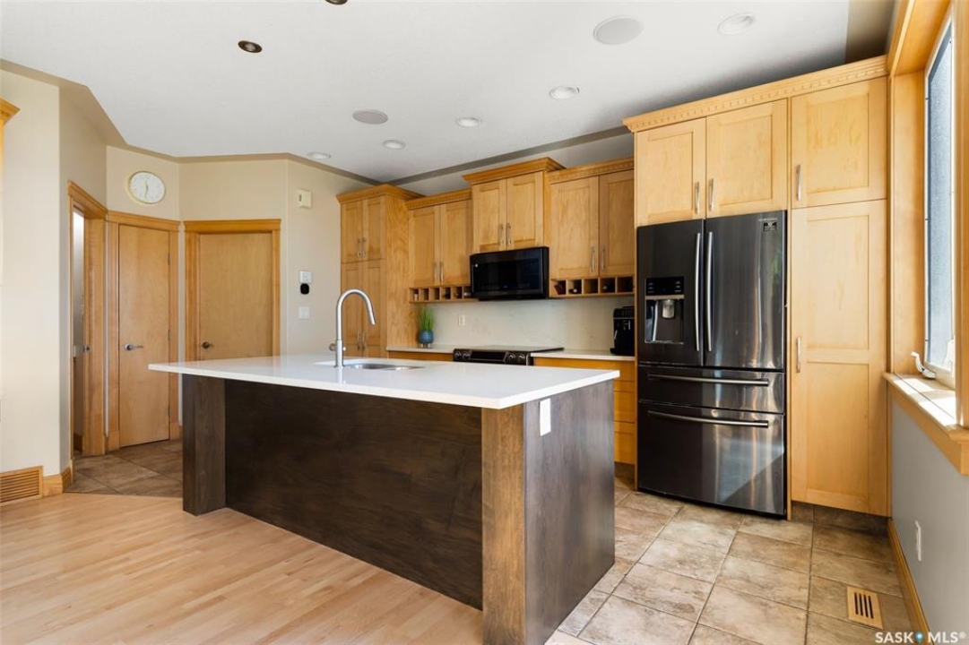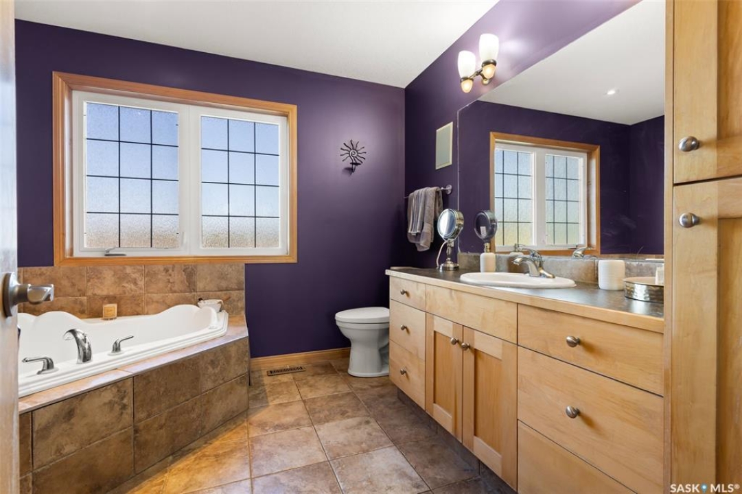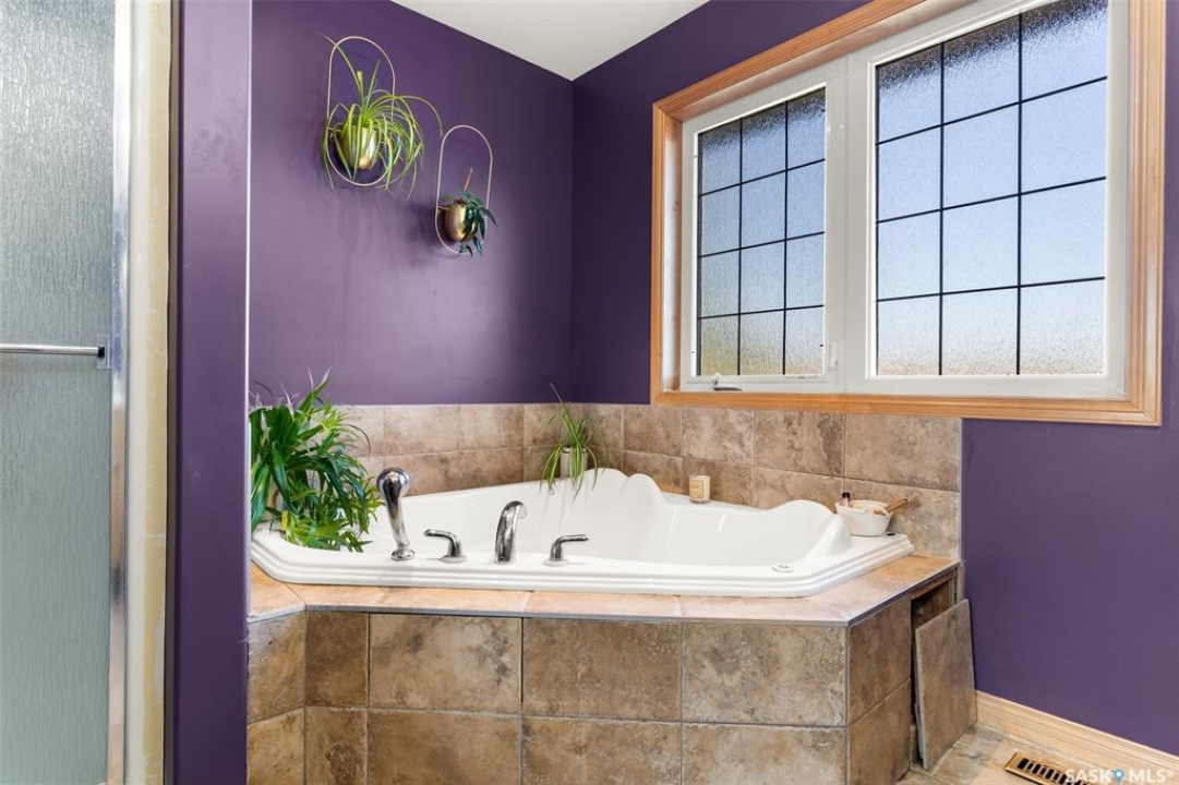 Gorgeous 2 story home in Emerald Park in prime location. Custom built home by Ripplinger Homes is nearly 2200 sq/ft and backs green space and southern exposure. Loads of natural light throughout. Welcoming entrance with ceramic tiled flooring transitions into maple hardwood floors. Main floor office is the perfect space for those who work from home. Spacious living room with natural gas fireplace with tiled accent and maple trim. There's an open view to the backyard thanks to a large picture window. Nice transition to the formal dining and kitchen area, upgraded kitchen island with quartz countertops ('24), stainless steel appliances and two piece bathroom. Main floor hardwood flooring was refinished in 2025. Direct entry to the 26 x 28 garage. Second level features 3 large bedrooms PLUS a bonus room that's the perfect media space. Walk-in closet in the primary bedroom and large ensuite. Basement is fully finished with additional bedroom and rec-room area and 3 piece bathroom. (current vanity will be changed out). Gorgeous and private backyard with mature trees, storage shed and hot tub included. Other recent upgrades include: shingles ('2018), new paint (2024), furnace ('23), c/air ('24). Move in ready family home is close to schools, shopping and Regina's east end amenities.
