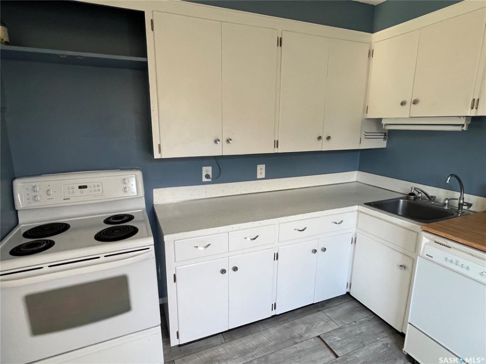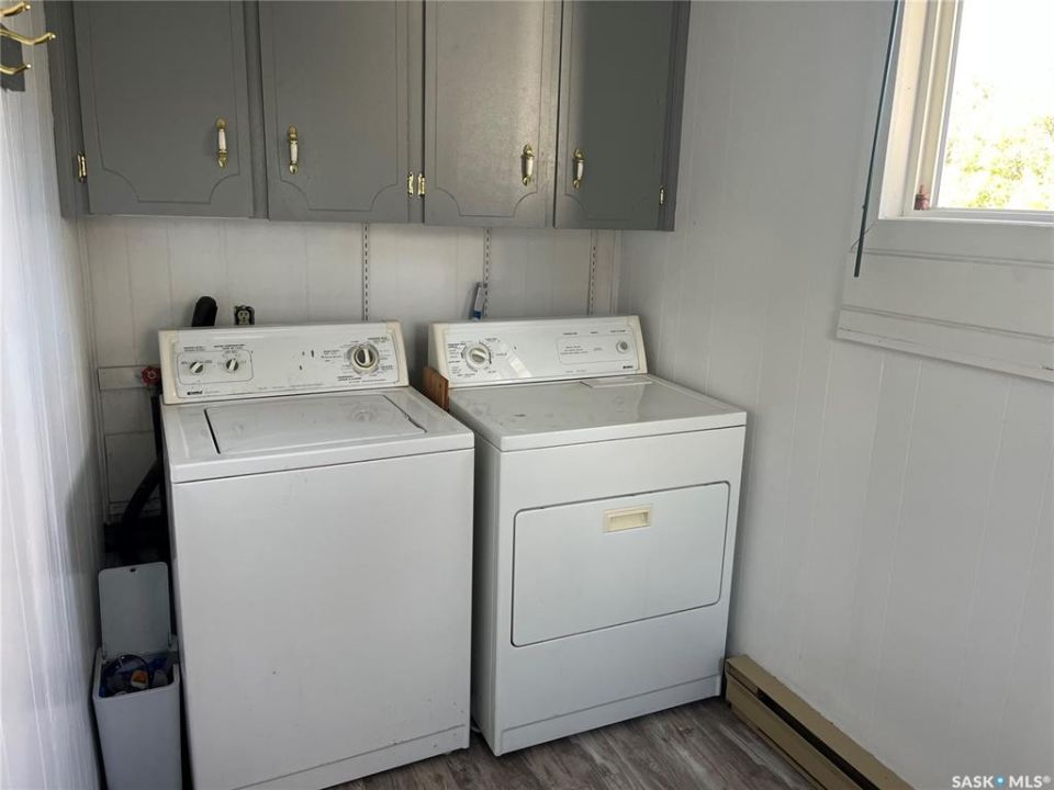 This two bedroom bungalow has a nice private back yard, open concept main area, and a 1+ car garage with a golf cart sized garage off the back. The house has a nice porch/laundry area off the back leading downstairs or to the kitchen. The washroom has a accessible tub. The basement is partially finished and has a workshop area, utility area, and a family room area that is carpeted.