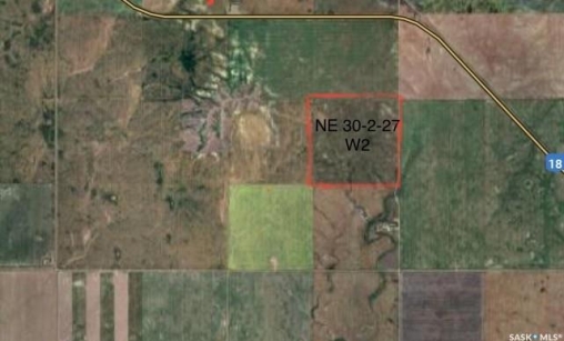 RM Hart Butte No. 11 - NE 30-2-27 W2 160 acres, 158 cultivated SAMA acres. Soil class J, Assessment 252,400. High assessed land, with some stones, no sloughs and no alkaline. Investment opportunity or add to your farm land base with one quarter of grain land. Located 5 1/2 Miles North and 1/2 Miles South of Coronach.