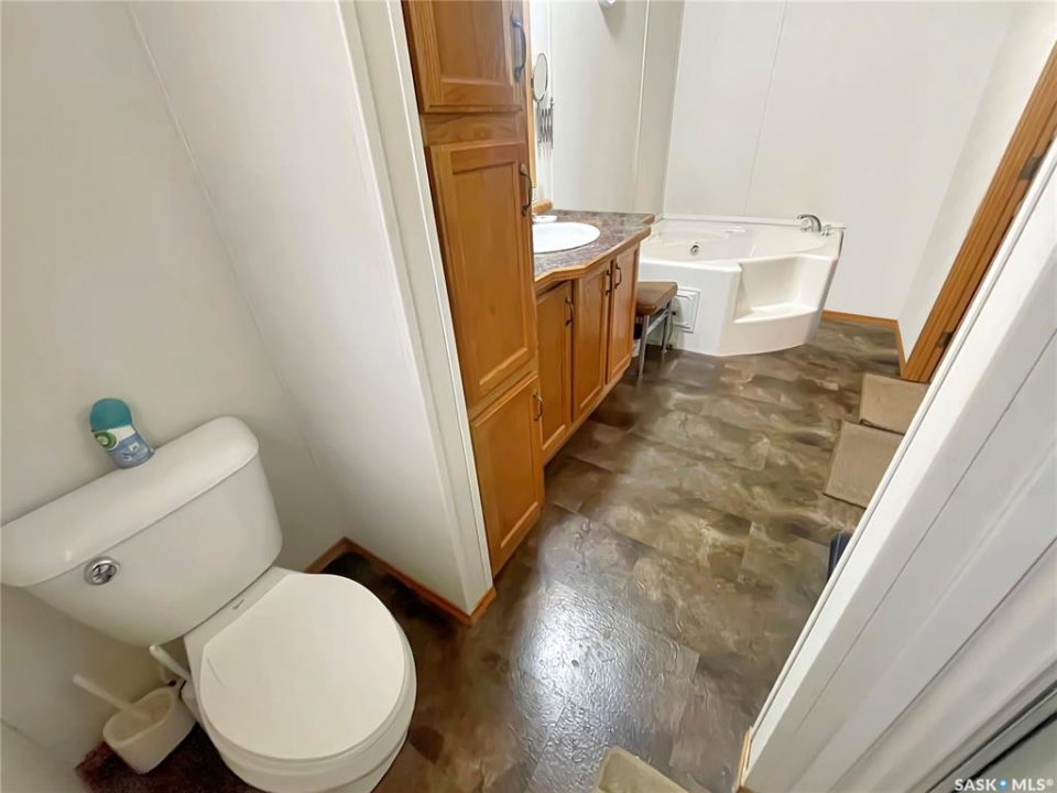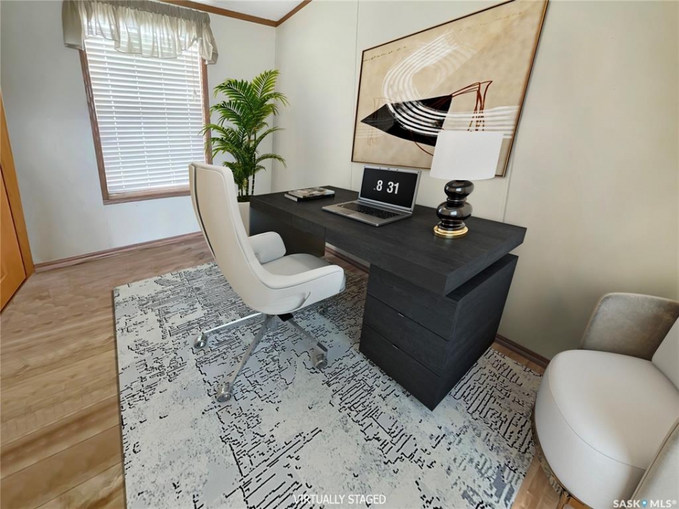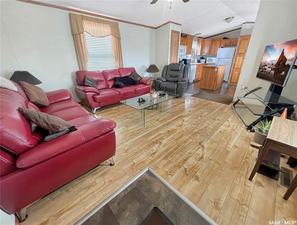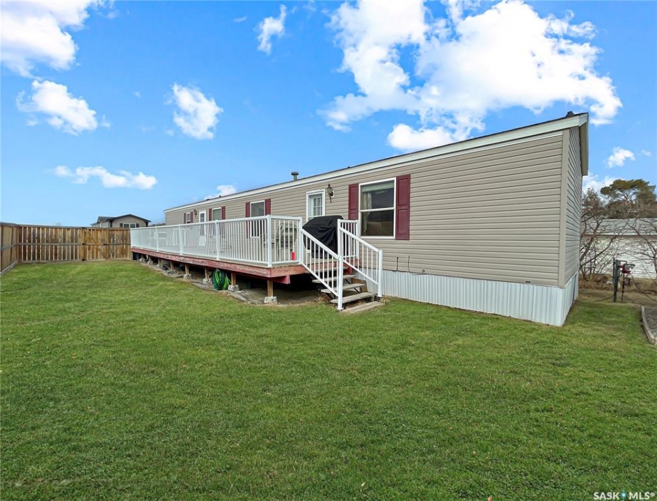 Introducing 128 Prairie Sun Court, a home that offers exceptional value without compromising on updates or quality. Prepare to be impressed by the thoughtful design and modern features of this stunning property. Step inside and be greeted by an open concept floor plan, flooded with natural light from the abundance of windows. The vaulted ceilings create a sense of spaciousness, while the large kitchen is a chef's dream. You'll find plenty of tasteful cabinetry, including a pantry with full outs, double sinks, an island, and a cozy eat-in kitchen space. On one end of the home, you'll discover the oversized master bedroom, complete with a generous 5'2x6'2 walk-in closet. Adjacent to the bedroom is a convenient laundry area and a built-in office space, ensuring functionality and convenience. The master wing is completed by a sizeable ensuite bath, featuring a jacuzzi tub, shower, and ample storage. The other side of the home houses two additional bedrooms and a well-appointed 4-piece guest washroom, providing comfortable living spaces for family and guests. This 1200 square foot home has been tastefully updated with new flooring throughout, adding a touch of modern elegance. The PVC windows not only enhance the aesthetic appeal but also contribute to energy efficiency. Step outside and enjoy the spacious deck, perfect for entertaining or simply relaxing. With no maintenance handrails and a fully fenced yard, you can enjoy outdoor living without the hassle. Additionally, the park fees include water, and the property taxes are incredibly affordable at just $35 per month. Don't miss the opportunity to own a modern home without the modern price. Experience the exceptional value and quality offered at 128 Prairie Sun Court.