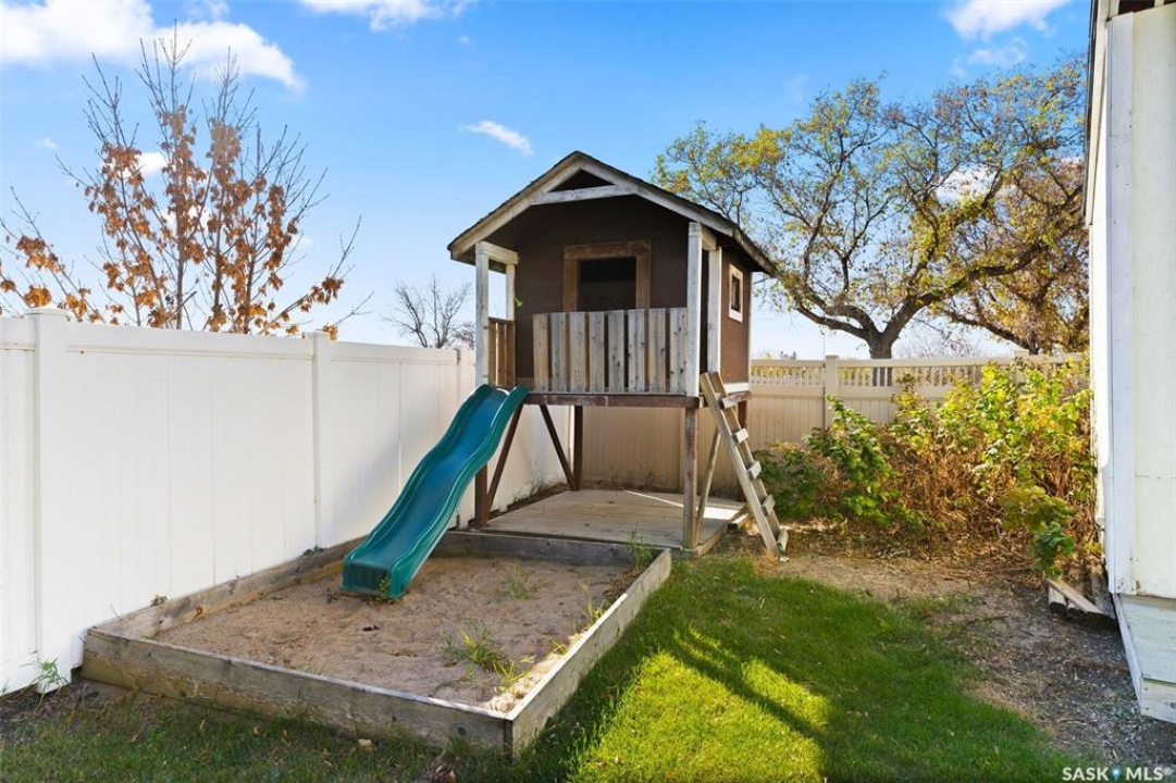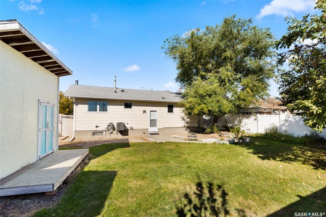 Welcome home to 146 Vernon Crescent, a charming family home tucked away on a quiet, family-friendly crescent in in Regina's desirable Argyle Park neighbourhood. From the moment you arrive, you'll appreciate the peaceful setting, with no back neighbours and a welcoming community vibe. Inside, this home features a fantastic floor plan with three spacious bedrooms on the main floor and a beautifully updated (plus OVERSIZED) 4-piece bathroom. The bright and functional kitchen provides an abundance of cabinets & prep space for family meals, along with lovely views of your backyard! Get ready to be the go-to holiday hosting spot because this dining room is large enough to host memorable holiday gatherings around a full size table with the leaf's in! can Downstairs the fully developed basement offers incredible versatility with a cozy den or home office, 3PCE bathroom, generous storage options, and a large recreation w/vintage wet bar area creates a comfy vibe perfect for a movie lounge, or games space! Step outside and fall in love with the expansive landscaped & fully fenced, ideal for summer barbecues, kids' play, or relaxing evenings under the stars. The yard showcases a massive custom built shed, a lovely play structure, and plenty of room to create your dream outdoor oasis. Located close to Dr. Hanna School and St. Timothy School & the shops on Rochdale Blvd, this property is perfect for families seeking convenience and community. Whether you're a first-time buyer or simply looking for more space to grow, 146 Vernon Crescent offers comfort, functionality, and charm in one inviting package! Don't miss your chance to call this beautiful home yours!