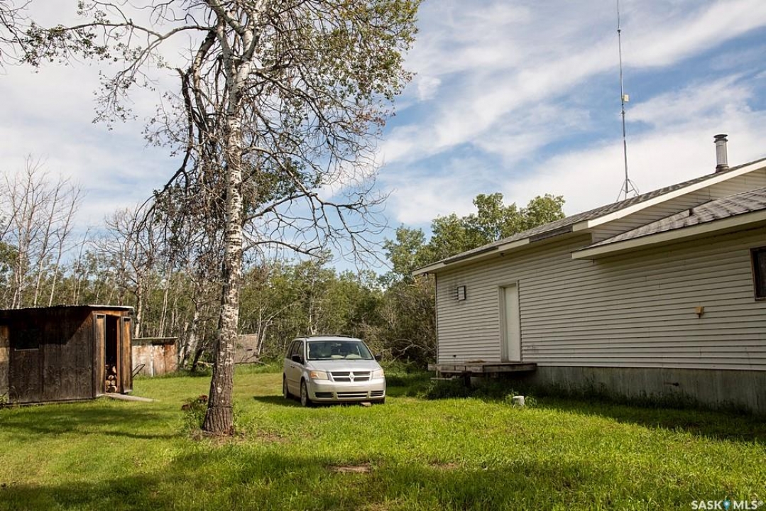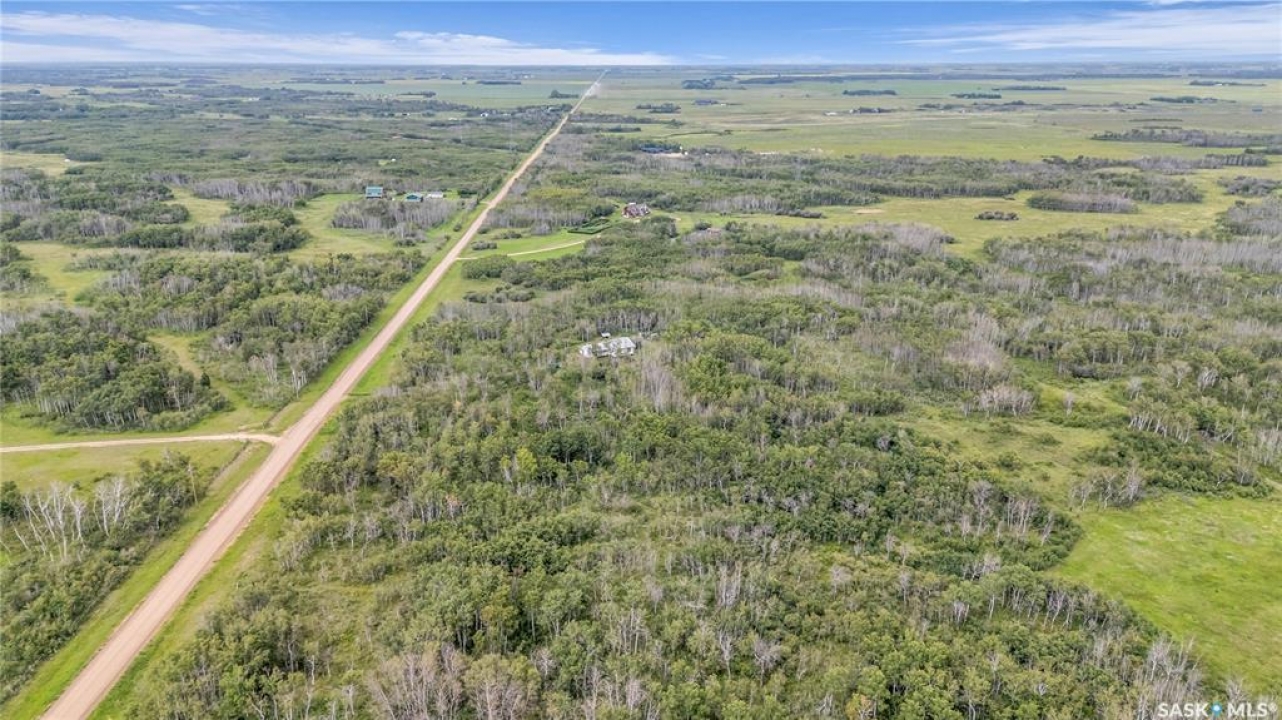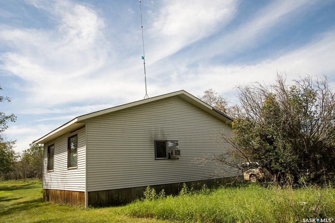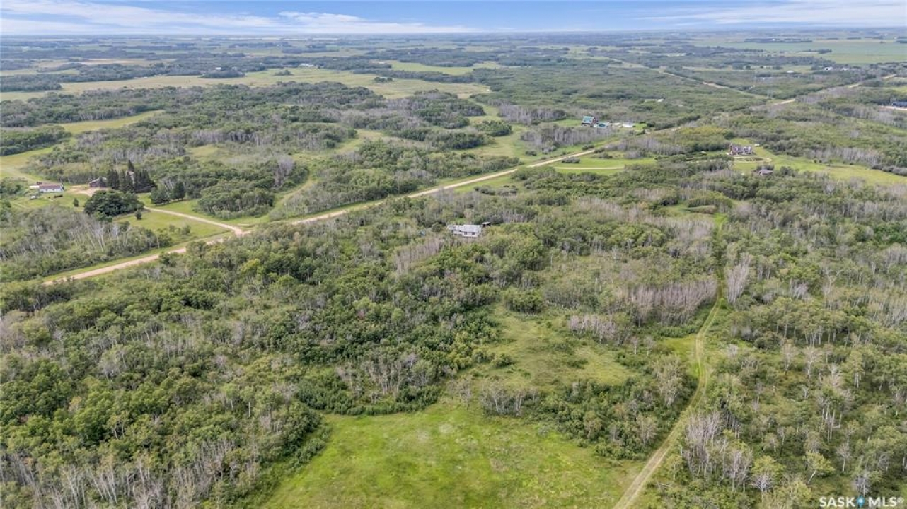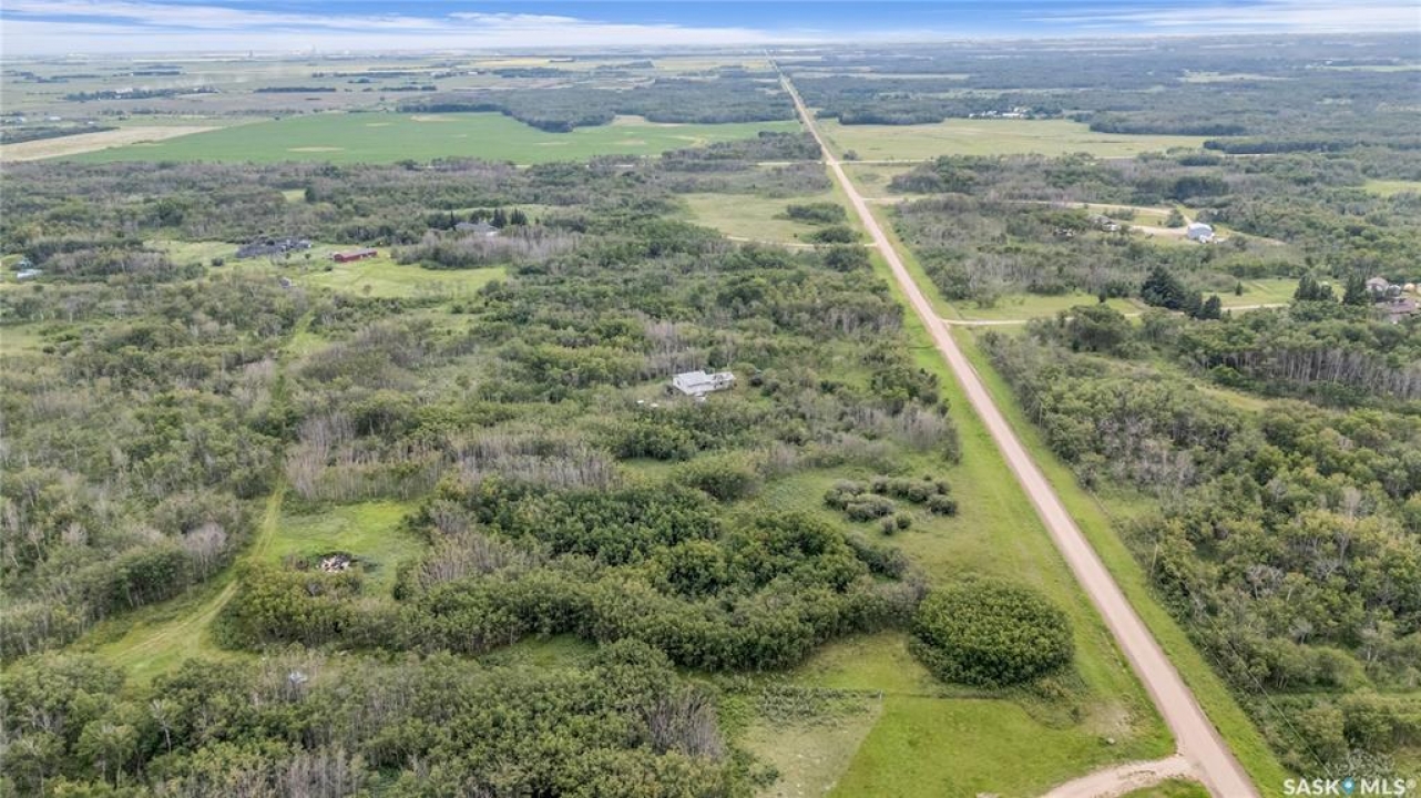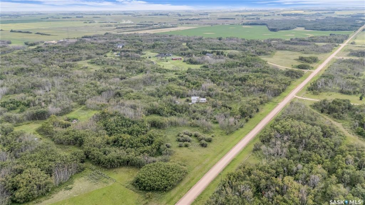 A rare opportunity to own10 acres just 15 minutes from Saskatoon, make this acreage your own personal sanctuary. Heavily covered by poplars, it's not uncommon to see deer, moose, fox, and a vast array of bird species. This 720 square foot bungalow is 1984 built, with an attached heated 26 X 36 shop for wood work, art studio or hobby space. Primary heat is two Osburn wood stoves and electric baseboards, natural gas to the property line & well water source. Features handmade oak & ash cabinets, custom stained glass door, 4 piece bathroom, front & back deck, and more!