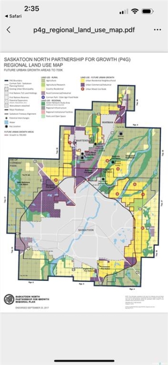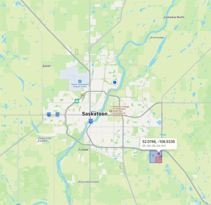 132 acres just 0.8 KM of South Hwy16, 1.6KM south of south Costco, and 2.4KM east of Greenbryre golf course, the great potential new development with service close. A good gravel road on the east of the land. The land has the following features: 1) 2 titles land, one is 77 acres, another parcel is 56 acres. Build your dream house and hold for future development. 2) It is zoning as Agricultural District 2 (DAG2), so many business opportunity can be established. Contact RM Corman Park or listing agent to get the potential business listing sheet. This property could be set up for many different purposes, such as, a single detached dwelling, agricultural operation, agricultural tourism use, bed and breakfast home, and home based business type III, etc. 3) Farm tenant in place to maintain this cultivated land with a yearly return. Currently, the land rented year by year.