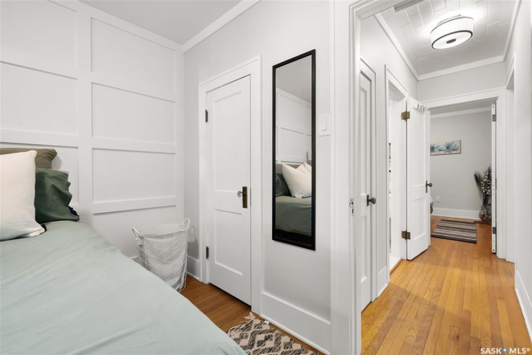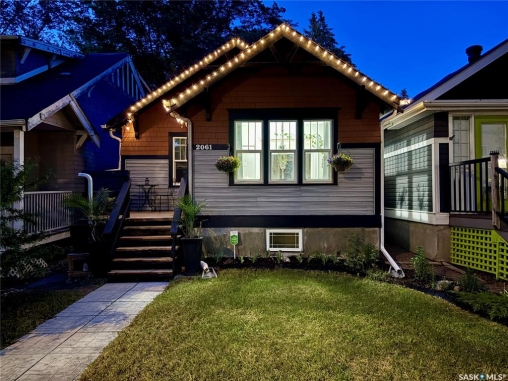 Welcome to 2061 Elphinstone Street—perfectly situated in the heart of Regina's sought-after Cathedral neighborhood. Just steps from 13th Avenue's trendy coffee shops, restaurants, and boutiques, and within walking distance to Mosaic Stadium, Brandt Centre, and Evraz Place, this home offers unbeatable access to local events and amenities. Inside, this inviting bungalow features a bright, sunlit sitting room, spacious living and dining areas, and original hardwood flooring that adds timeless character. Classic details like tall baseboards, crown molding, and plaster accents enhance the cozy atmosphere. The white kitchen offers a full appliance package and a unique foldaway pantry hatch—blending charm with functionality. The main floor includes two generously sized bedrooms and a beautifully updated 4-piece bathroom complete with vinyl plank flooring, a clawfoot tub, and modern vanity. Additional features include central A/C, a security system, and basement laundry. Enjoy the fully fenced and landscaped backyard with garden beds, patio space, single detached garage, and extra parking via the rear alley. Seller states upgrades include a full electrical replacement and new panel (2021), and half the windows replaced in 2023. Live the Cathedral lifestyle—walk to the farmers market, catch a concert, or relax with a book from a local Little Free Library. Don't miss your chance to own this charming home in one of Regina's most vibrant communities. Book your showing today!