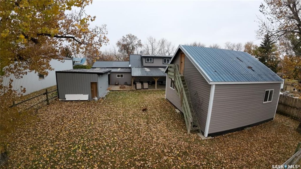 Nestled just 33 kilometers north of Swift Current on the smooth, paved Highway #4, this fully updated Stewart Valley home is a true gem, offering modern comforts and ample space. A gorgeous deck welcomes you, warm and inviting. Inside, a beautiful open-concept kitchen flows into the living room with new white cabinetry, stainless steel appliances, fresh laminate flooring, and neutral tones. A spacious mudroom is perfect for coats and boots, while the formal dining space boasts bright windows and wood accents. The main floor also features a four-piece bathroom and a cozy bedroom. Upstairs, a charming loft doubles as office space, accompanied by two large bedrooms and a three-piece bathroom. The fully finished basement includes a large recreation room, laundry area, ample storage, an additional bedroom, and a convenient two-piece bathroom. Outside, the unique property offers an attached shed, ideal for storage or a pet kennel, and a beautiful patio perfect for barbecuing and entertaining. A 24x24 insulated, heated shop adds incredible value for hobbies or projects. Situated on two expansive, fully fenced lots, this home is steps away from the Co-op, and senior center, providing all the space and tranquility you crave, away from city hustle. Plus, it's just a short drive to Saskatchewan Landing Provincial Park for endless outdoor adventures. Call today for your personal tour!