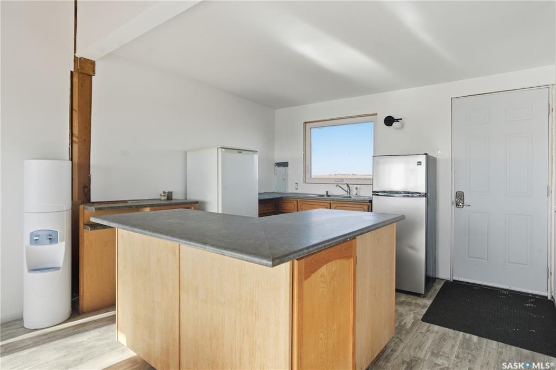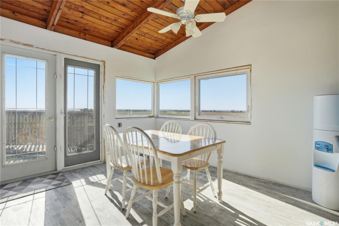 Located just one hour from Regina and a quick 18-minute drive to the town of Strasbourg, this half section (320 acres) of prime farmland sits in the RM of McKillop - just minutes from the stunning shores of Last Mountain Lake. The views here are truly incredible, offering wide-open prairie skies and rolling farmland as far as the eye can see. This property includes two cultivated quarter sections, plus 4 grain bins and a quonset, making it an excellent setup for active farming or investment. Adding to the appeal is an off-grid, 3-season cabin - the perfect hunting or getaway retreat. Set within a one-acre fenced yard, this rustic gem features spacious decks, a wood-burning stove, propane water heater, and solar power system for that self-sufficient lifestyle. Inside, the cabin offers all the comforts of home with a cozy kitchen to prep those hearty farm meals, a bright dining area surrounded by windows that flood the space with natural light, and a welcoming living room where the wood stove creates the perfect atmosphere for cooler evenings. You'll also find a full, updated bathroom, a primary bedroom, and a bonus den or guest room - perfect for friends or family staying the weekend. Whether you're looking to expand your farming operation, invest in quality Saskatchewan land, or enjoy a peaceful rural escape, this property has it all - and the cabin can easily be removed if you'd prefer to make the land completely yours. Experience the freedom of owning prairie farmland near the lake - where productivity meets peace and quiet.