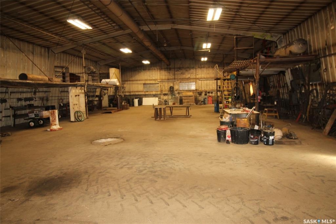 Discover the perfect blend of country living and business potential with this exceptional 9.96-acre property located adjacent to the town of Shaunavon. Designed to accommodate both family life and entrepreneurial ventures, this acreage offers a rare combination of comfort, space, and functionality. The 1916 two-storey character home exudes timeless charm while offering all the modern conveniences. The well-appointed kitchen features abundant cabinetry, a built-in dishwasher, microwave hood fan, and French door refrigerator. Just off the kitchen, a custom oak office with built-in cabinetry and desk provides the ideal space for working from home. The living room is warm and inviting, with a vaulted ceiling and hardwood floors. The main floor also includes two spacious bedrooms, a full 4-piece bathroom, and a dedicated laundry area with storage. Upstairs, the second floor is set up as a self-contained revenue suite, featuring a galley-style kitchen and dining area, a large living room with sweeping views of the town, two bedrooms, a full bath, and a laundry room with additional storage. The lower level of the home is designed for relaxation and entertainment with a massive games room, a den complete with a full wet bar, a 4-piece bath, and extensive workspace and storage areas. For those seeking business-ready facilities, the outbuildings are exceptional. The main shop measures 66' x 100', including an 81' x 48' heated bay with floor drains, welding and workbench areas, and a separate radiator repair room. The shop is fully equipped with hot and cold running water, sewer service, multiple 30- and 50-amp electrical plugs, two bathrooms, and a break room. A mezzanine level provides additional office and parts storage space. The 55' x 31' north addition houses a used-oil burner system that operates the in-floor radiant heat for the buildings. Two additional cold storage buildings offer more versatility.