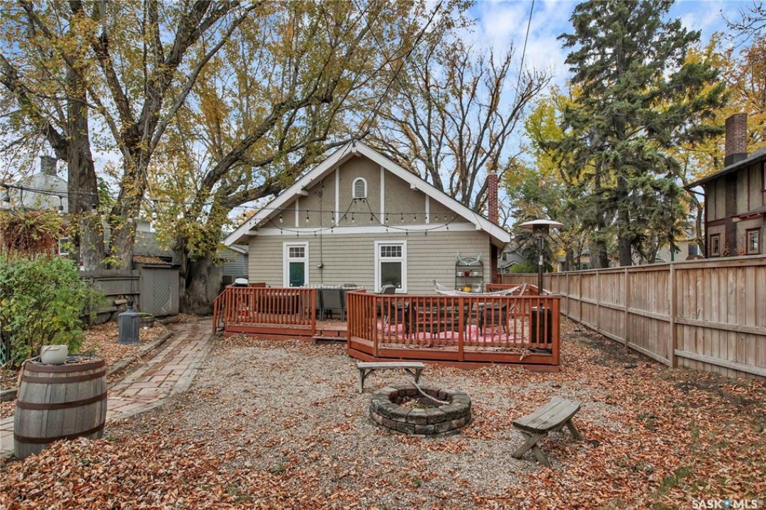 Welcome to 110 29th Street W — a charming character bungalow tucked away in the heart of Caswell Hill. This is one of those homes that immediately feels welcoming, with original hardwood floors, plenty of natural light, and just the right mix of vintage character and modern touches. Caswell Hill is loved for its tree-lined streets and central location — you'll have quick access to downtown, the Sask Polytech campus, and some of Saskatoon's best local shops and restaurants. Inside, you'll find a bright kitchen with stainless steel appliances and a cozy dining space that's perfect for casual dinners. Both bedrooms are a comfortable size, and the basement offers a large living area — ideal for movie nights or a home office — plus tons of extra storage. Outside, the large yard has mature trees, a spacious deck for entertaining, and a great firepit area for relaxing evenings. The 23' x 23' detached double garage with two single doors gives you plenty of room for vehicles and storage, and there's even an extra parking pad out front. If you've been looking for a character home in a great central location, this might be the one.
