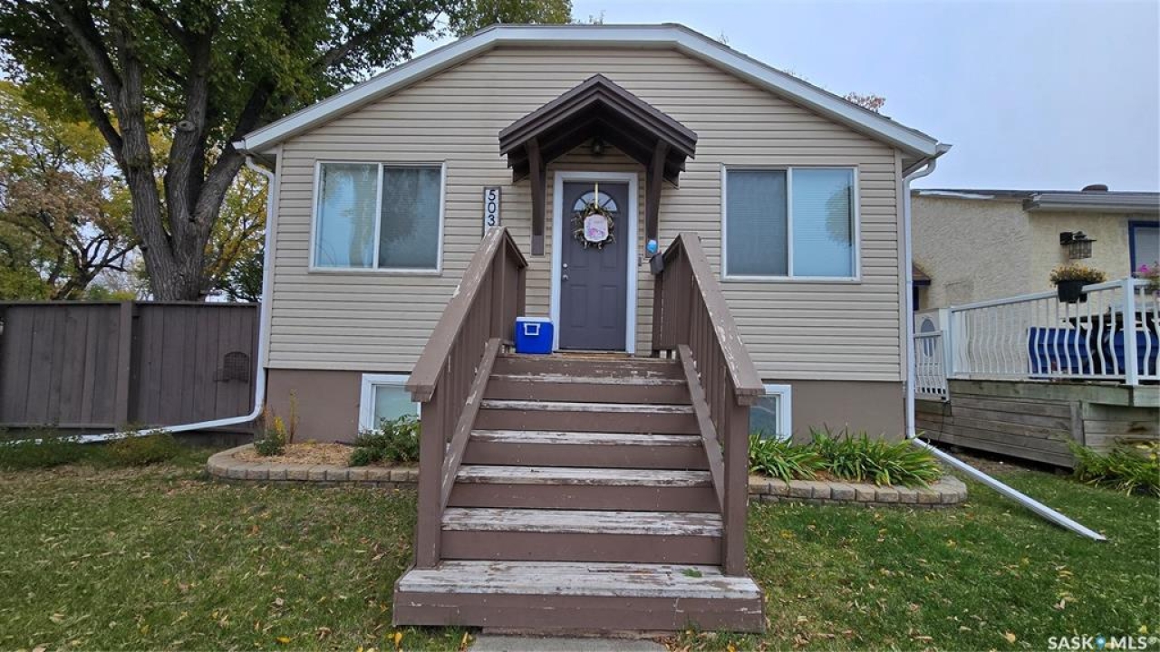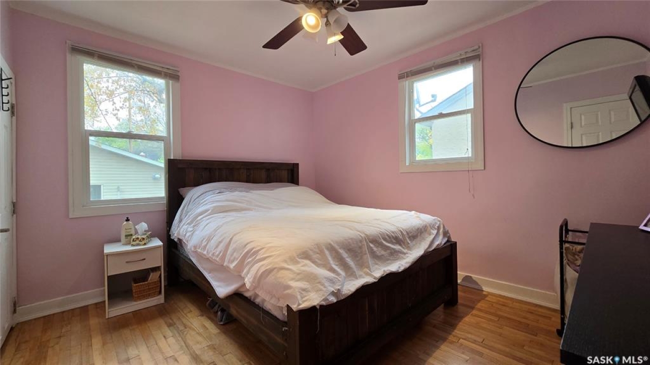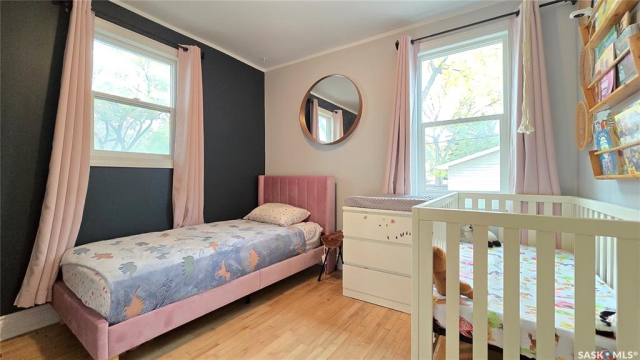 Incredible amount of functionality and value in this solid raised bunglow. This property sits right accross from Luther collegiate, and is just steps away from plenty of parks and amenities. The house sits of a large corner lot, with paved back alley entrance to the 24' x 26' heated and insulated double garage, complete with 220 amp. The backyard is a completely fenced oasis, with RV parking, firepit, deck, large storage shed, mature trees, garden boxes, and rainwater system. The house itself is just under eight hundred square feet of well thought out space. The main floor offers a large and open living room/dining room area and a bright and functional kitchen with West and South facing windows. The two bedrooms on the main floor are good size, and hardwood runs through both of them as well as the living room. Four piece bathroom finishes the main floor. Heading downstairs past, the separate entry is the professionally remodeled basement. Being a raised bungalow, the windows downstairs are large and offer plenty of light, making the space very warm and usable. The basement offers huge family room, another bedroom, and a massive three piece bathroom with tiled walk in shower. Very well put together home offered at at a very fair price. Call listing agent for more info or to book a showing.