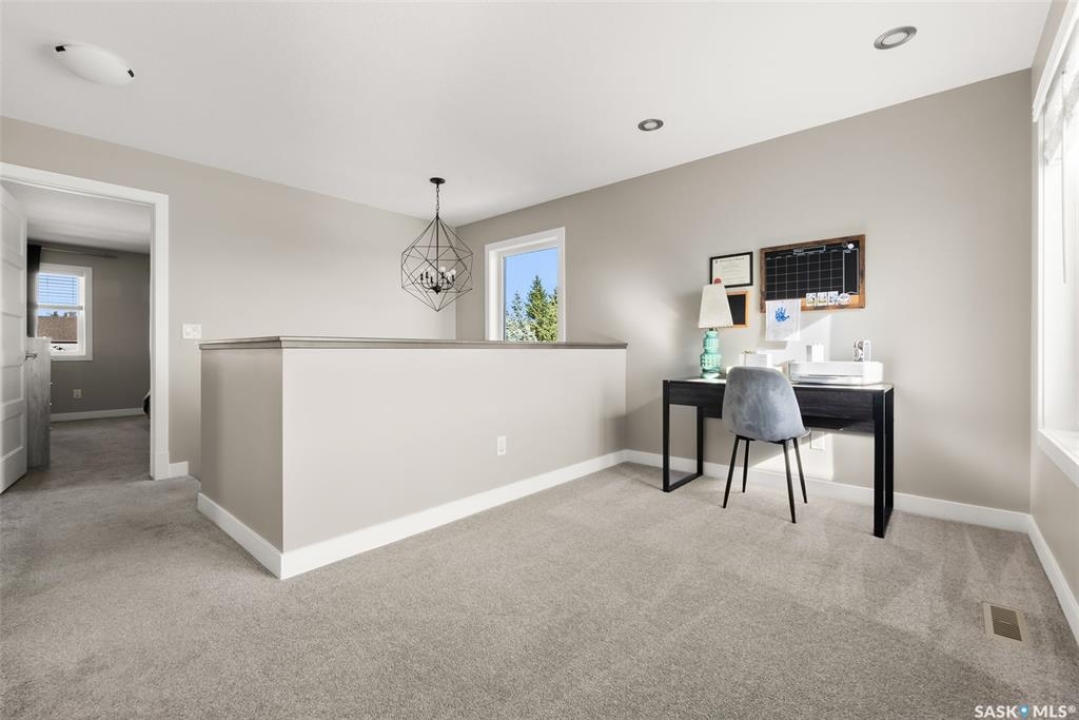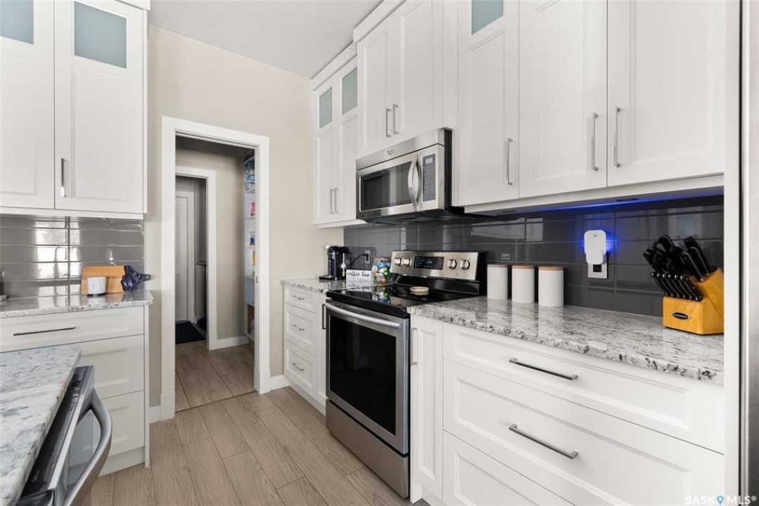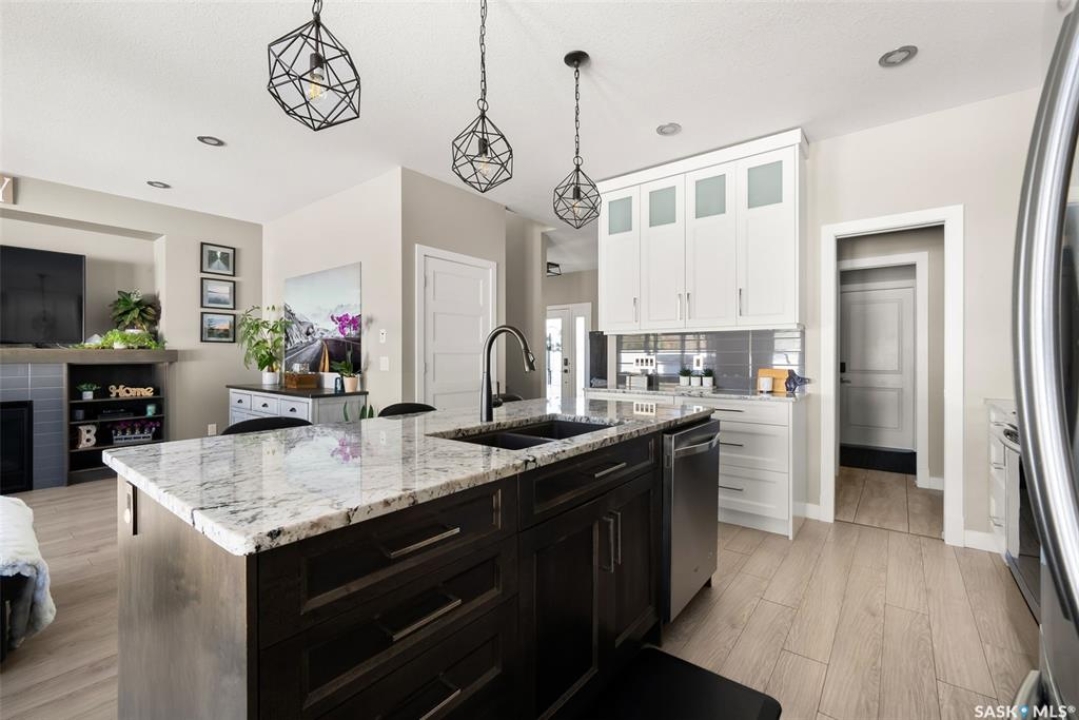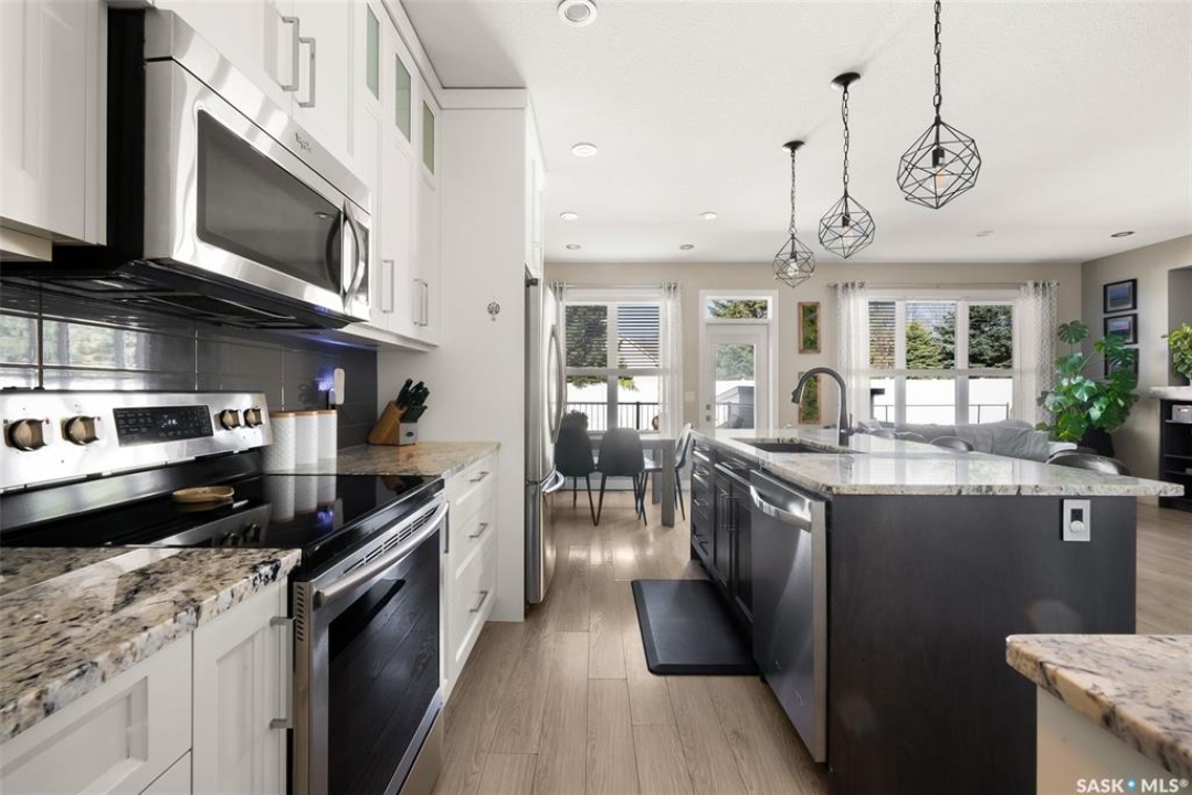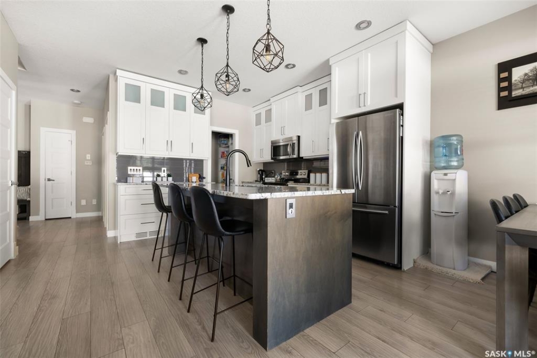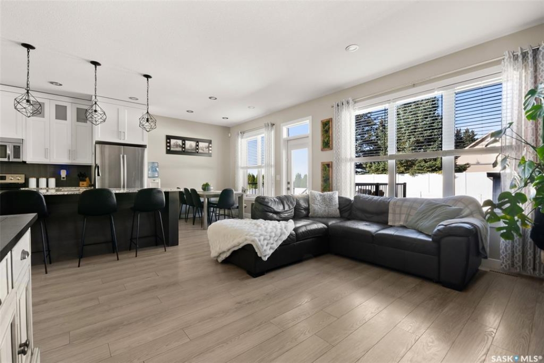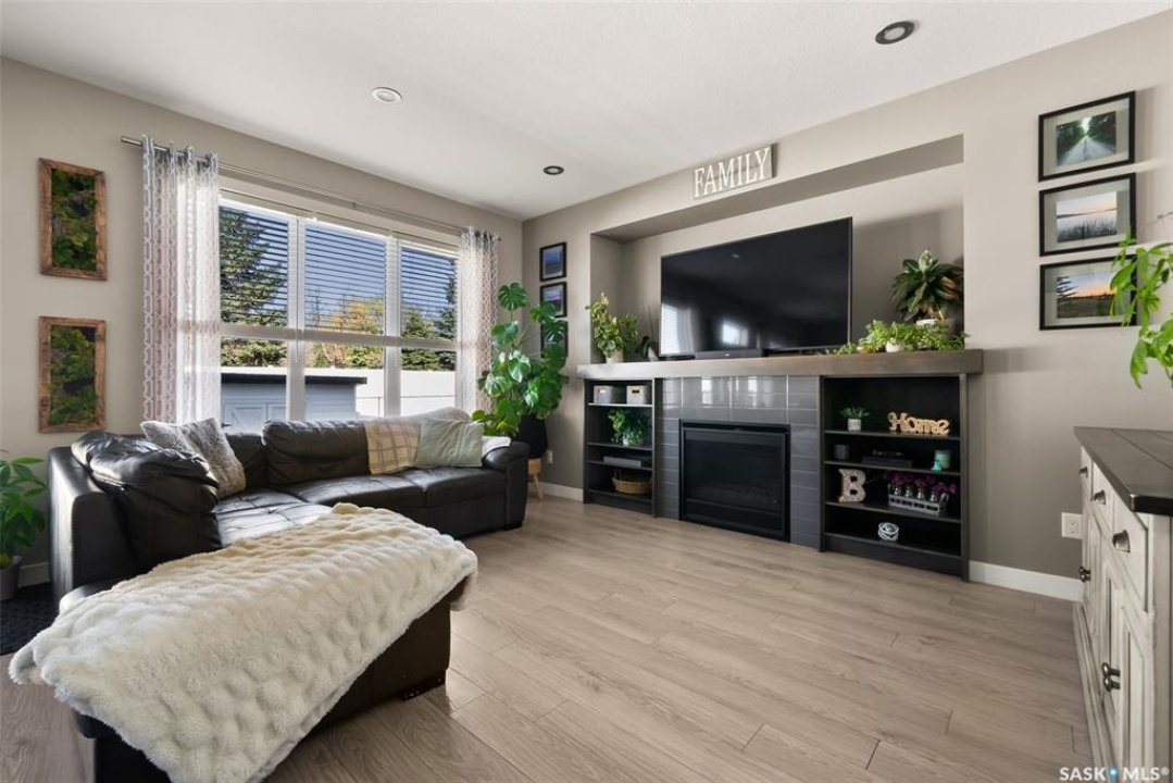 Welcome to 930 Westview Drive — a beautiful two-storey Ripplinger built home with incredible curb appeal and located on a quiet street in the family-friendly community of Balgonie. From the moment you arrive, you'll appreciate the triple attached garage, clean modern exterior and manicured landscaping that make this home stand out. Inside, the open-concept main floor is bright and inviting, featuring a spacious living area with a cozy fireplace, built-in shelving and large windows that fill the home with natural light. The kitchen is a showstopper with white cabinetry extending to the ceiling, a large island with an eat-up bar, stainless appliances, granite counter tops and a walk-through pantry offering everyday convenience and smart storage. Finishing off the main floor is a convenient 2-piece bathroom and laundry located in the mudroom. Upstairs, you'll find three generous bedrooms, including the primary suite with a walk-in closet and a 4-piece ensuite with dual vanities. The upper level also includes a full 4-piece bathroom and a bonus room that's perfect for a home office, playroom or relaxation space. The fully developed basement offers even more space with a large rec room featuring a suspended ceiling and laminate flooring, an additional bedroom, a 4-piece bathroom and a utility room with extra storage. Car enthusiasts and hobbyists alike will love the triple attached garage which is thoughtfully equipped with built-in ceiling storage, a workbench, drain pit, radiant heater and a drive-through door! The large backyard is perfect for families and entertaining, featuring an attached deck, lush green grass, a patio area, storage shed and a designated fire pit space to enjoy with company! You won't want to miss this opportunity.