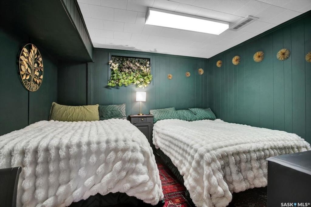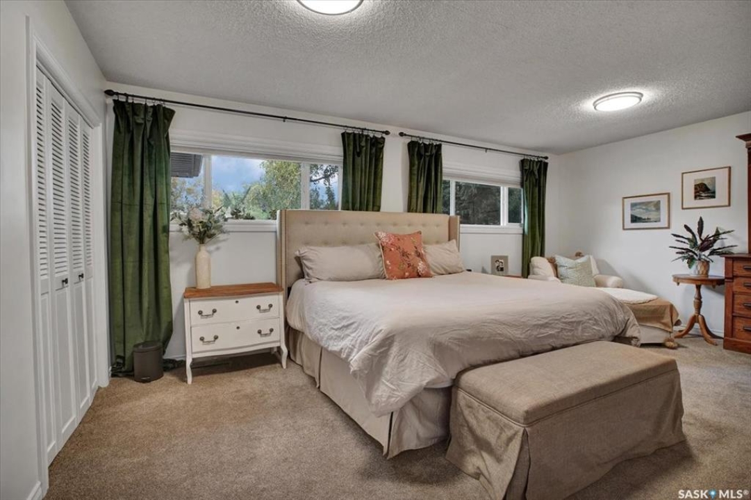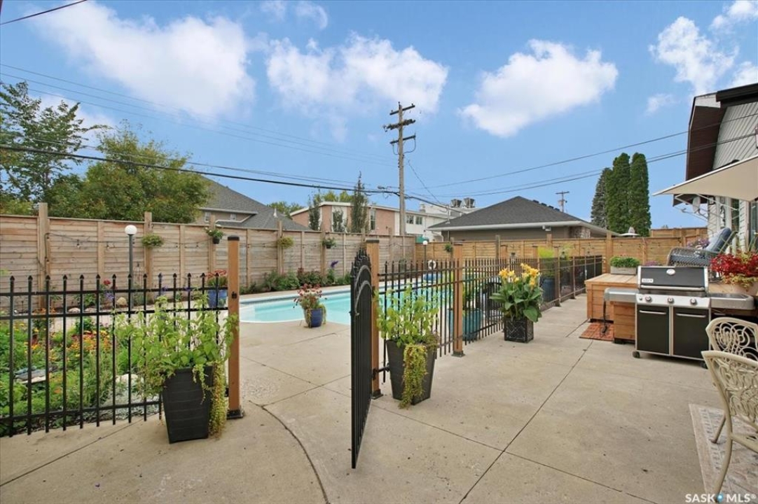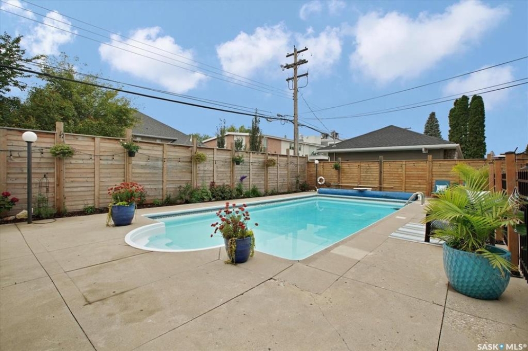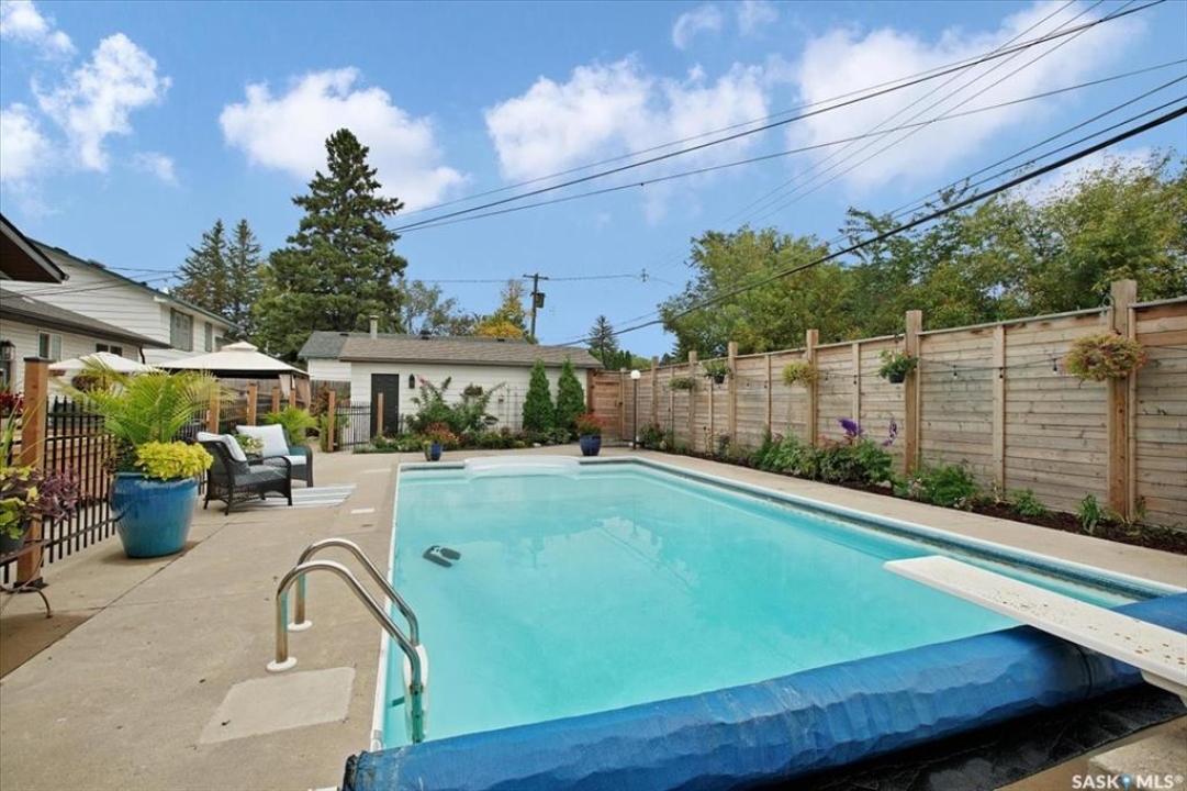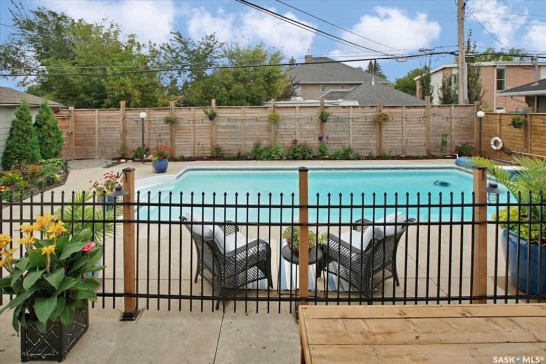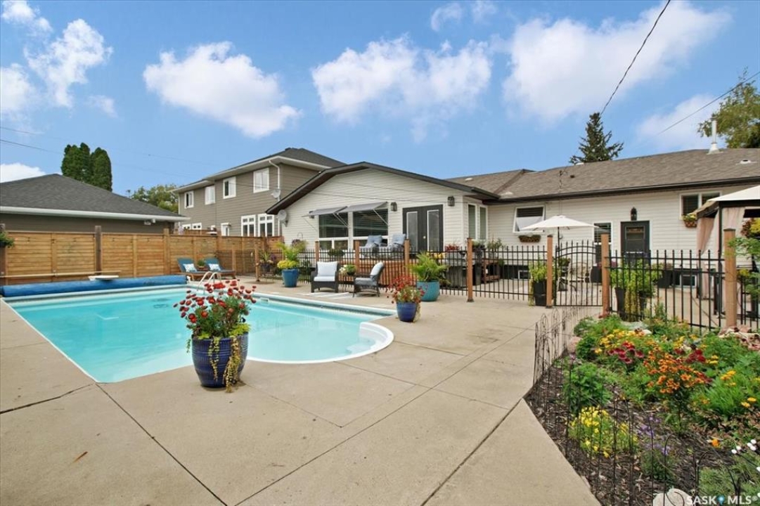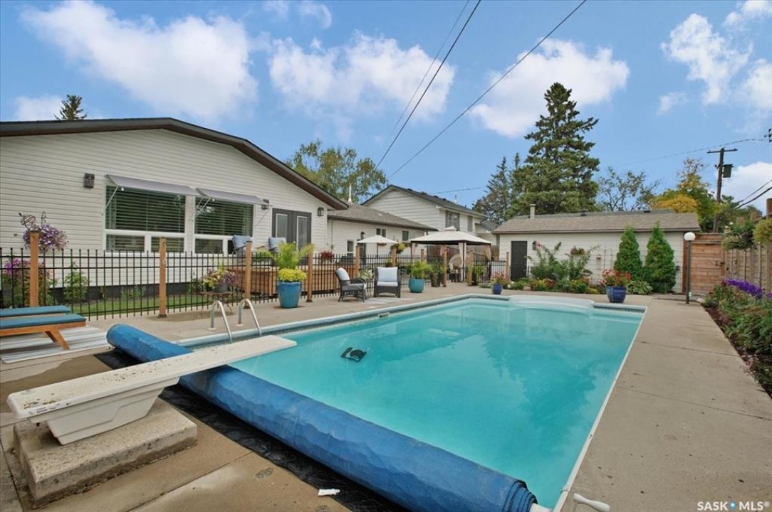 Nestled in the heart of the desirable Queen Elizabeth neighborhood, this charming 1972 square foot bungalow offers the perfect blend of comfort, space, and functionality. Set on an expansive 76' by 109' lot, the home welcomes you with a long, light-filled foyer framed by large windows and elegant transom accents that create a warm, airy entrance. Just a few steps up, you're greeted by a spacious living room anchored by a cozy gas fireplace—ideal for relaxing evenings or entertaining guests. Toward the back of the home, the kitchen flows seamlessly into the dining area, where patio doors lead you out to the deck, perfect for summer dinners or morning coffee. The dining space opens into a massive family room, another inviting area complete with its own gas fireplace, offering plenty of room to gather with loved ones. On the main you will find a spacious primary suite, another bedroom as well as a 5 piece bathroom. Downstairs, the basement adds even more living space with a generous family room and games area—both warmed by a third gas fireplace—as well as 2 bedrooms, a 3-piece bath, ample storage and a kitchenette. The home's flexibility continues with washer and dryer hookups still available in the basement, even though the machines are currently in the second main-floor bedroom. Outdoors, the private backyard is truly a retreat, with a 16' x 32' saltwater swimming pool ready to make the most of warm days. The property also boasts a rare combination of both a double attached heated garage and a single detached heated garage, providing ample room for vehicles, tools, or hobbies. With thoughtful touches throughout and generous indoor and outdoor spaces, this home offers warmth, functionality, and a sense of peaceful privacy in one of the city's most beloved communities. Kitchen and main bath have wood soft close cabinetry. New water heater, fridge, washer & dryer and furnace will be replaced. Laundry can be moved back to the basement before possession.