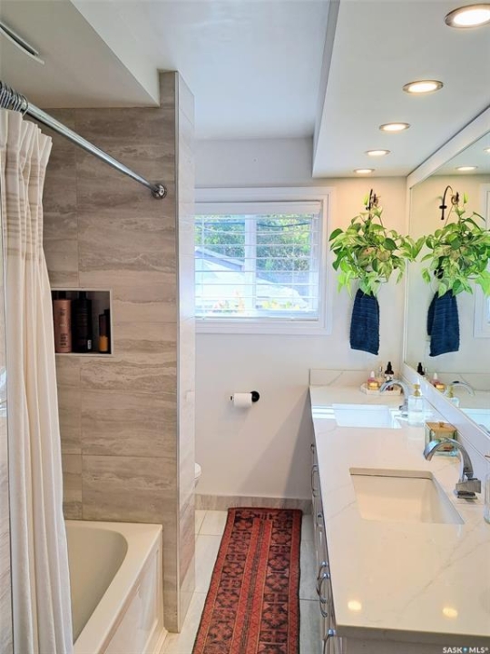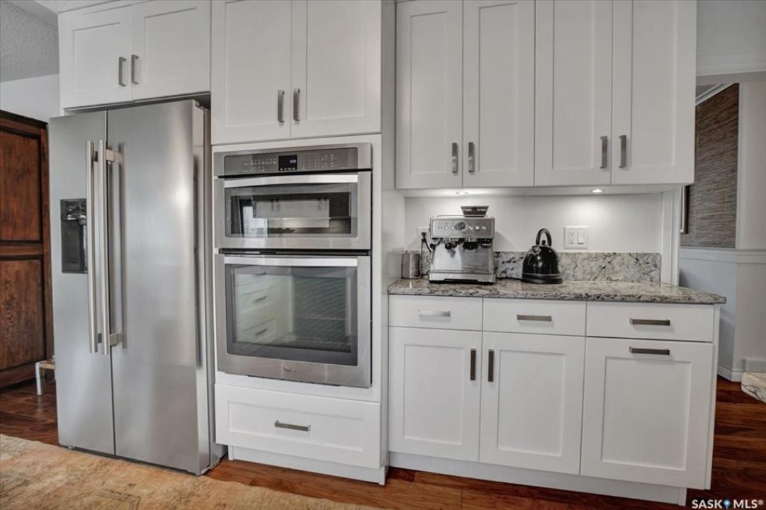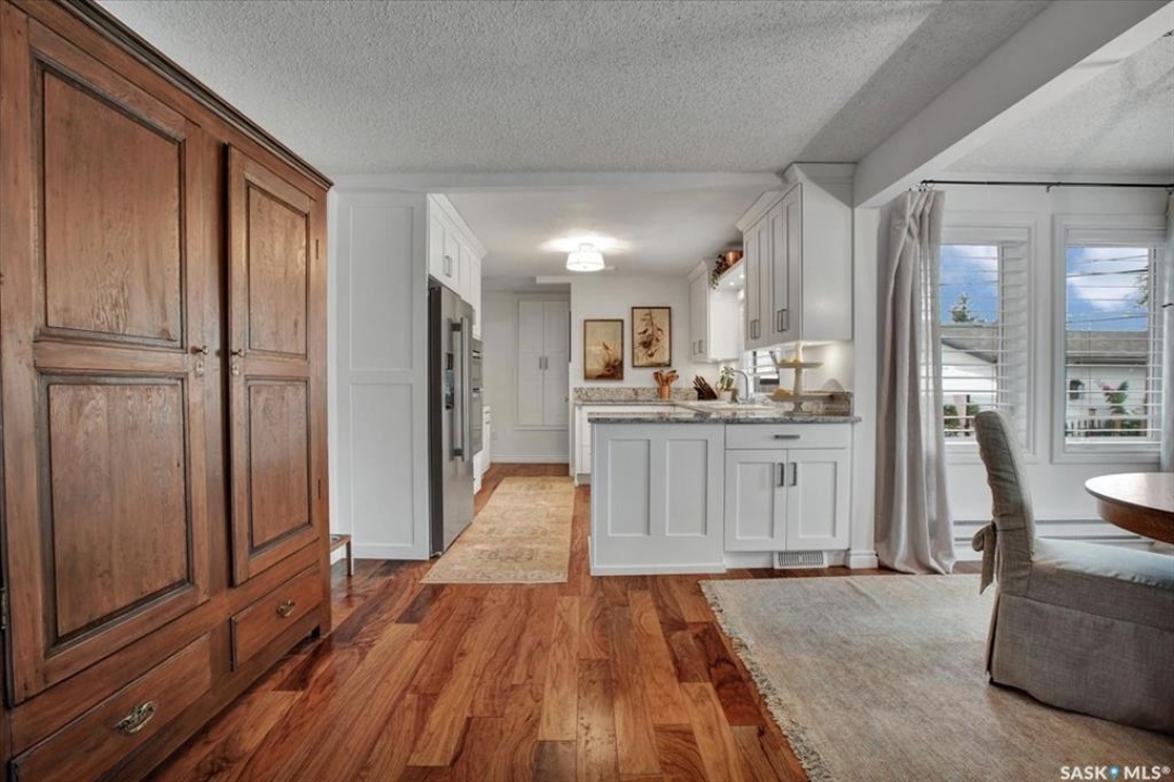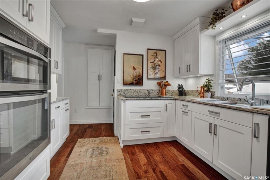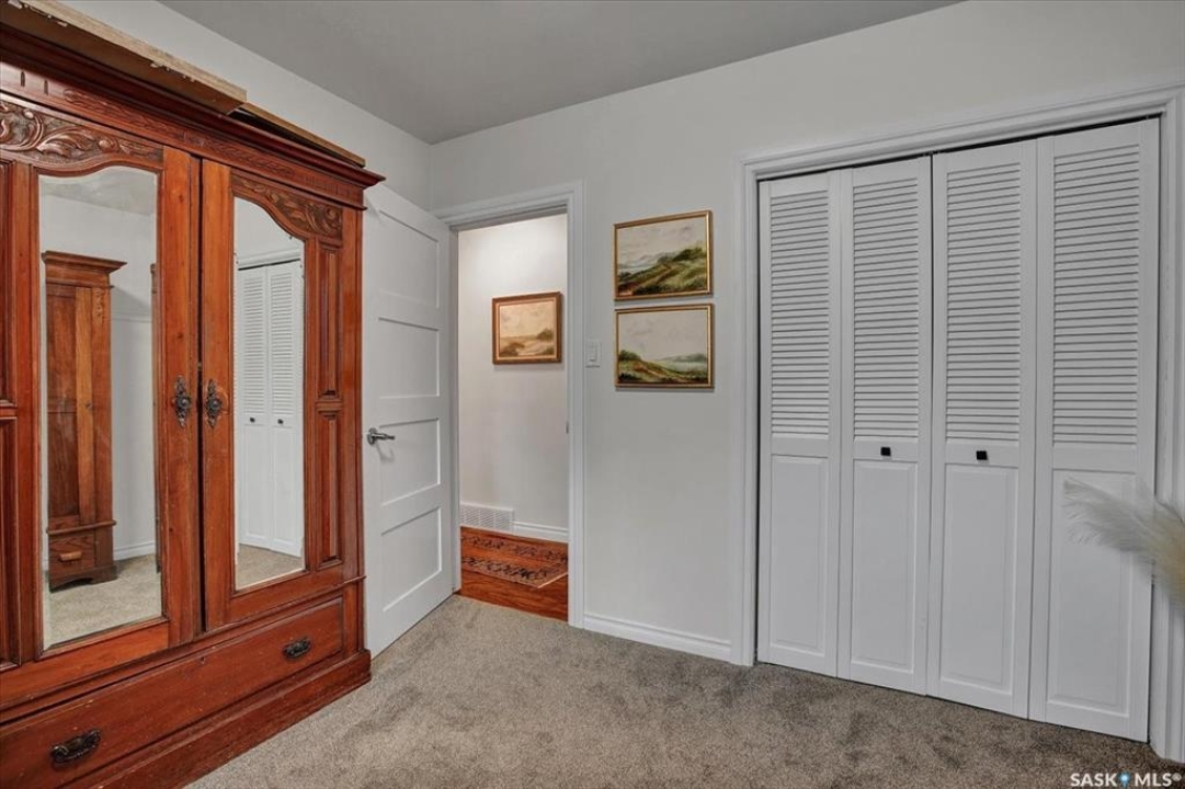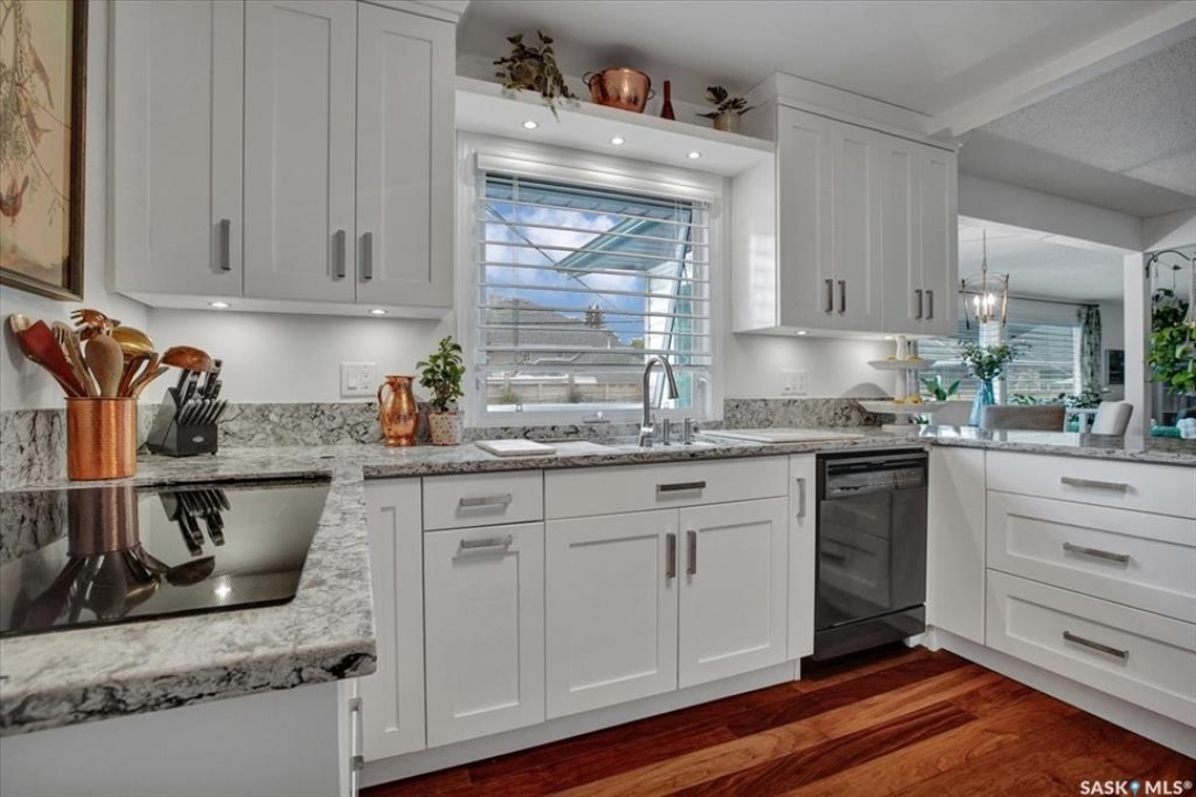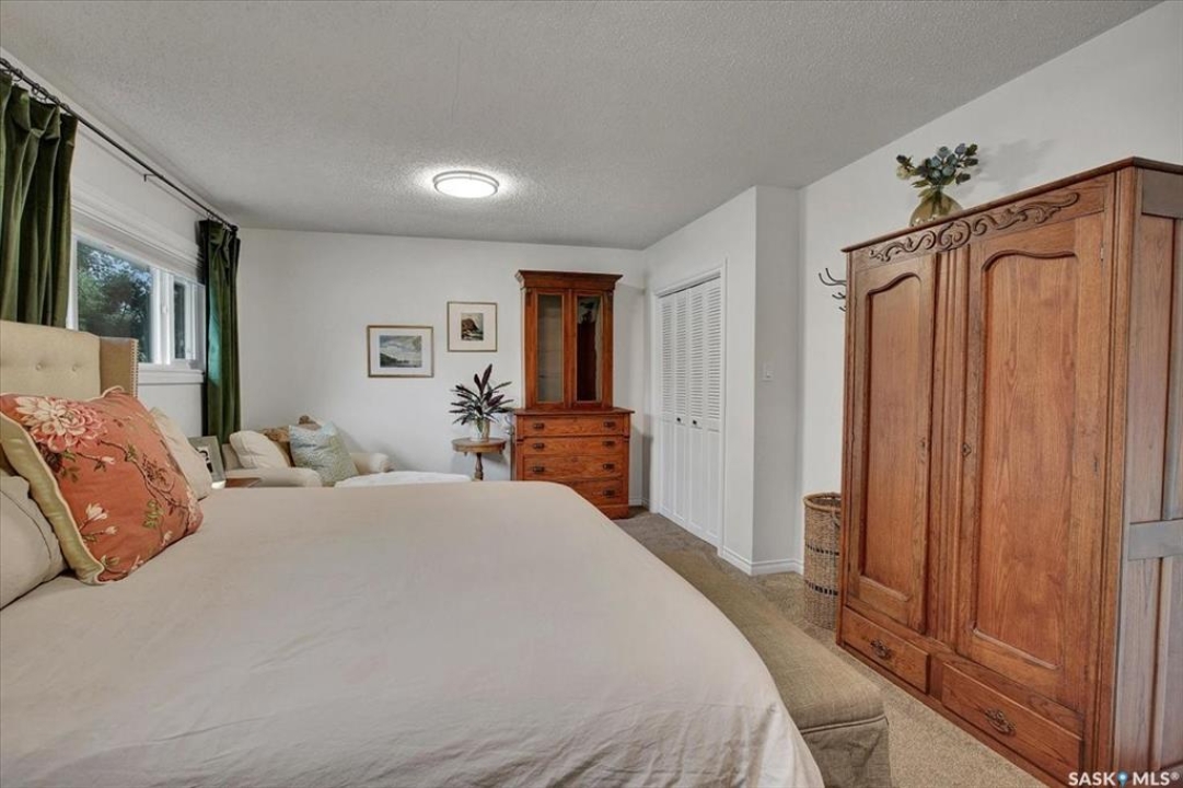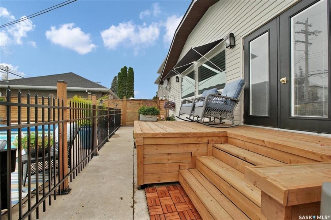 Nestled in the heart of the desirable Queen Elizabeth neighborhood, this charming 1972 square foot bungalow offers the perfect blend of comfort, space, and functionality. Set on an expansive 76' by 109' lot, the home welcomes you with a long, light-filled foyer framed by large windows and elegant transom accents that create a warm, airy entrance. Just a few steps up, you're greeted by a spacious living room anchored by a cozy gas fireplace—ideal for relaxing evenings or entertaining guests. Toward the back of the home, the kitchen flows seamlessly into the dining area, where patio doors lead you out to the deck, perfect for summer dinners or morning coffee. The dining space opens into a massive family room, another inviting area complete with its own gas fireplace, offering plenty of room to gather with loved ones. On the main you will find a spacious primary suite, another bedroom as well as a 5 piece bathroom. Downstairs, the basement adds even more living space with a generous family room and games area—both warmed by a third gas fireplace—as well as 2 bedrooms, a 3-piece bath, ample storage and a kitchenette. The home's flexibility continues with washer and dryer hookups still available in the basement, even though the machines are currently in the second main-floor bedroom. Outdoors, the private backyard is truly a retreat, with a 16' x 32' saltwater swimming pool ready to make the most of warm days. The property also boasts a rare combination of both a double attached heated garage and a single detached heated garage, providing ample room for vehicles, tools, or hobbies. With thoughtful touches throughout and generous indoor and outdoor spaces, this home offers warmth, functionality, and a sense of peaceful privacy in one of the city's most beloved communities. Kitchen and main bath have wood soft close cabinetry. New water heater, fridge, washer & dryer and furnace will be replaced. Laundry can be moved back to the basement before possession.