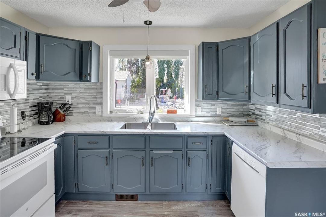 Nestled in the charming Town of Assiniboia, this delightful three-bedroom bungalow boasts an enviable location—just moments from schools, parks, and recreation. Designed with ease and elegance in mind, this home features a spacious, open-concept layout that flows seamlessly—entirely free of stairs for maximum accessibility and comfort. From the moment you step inside, you'll be welcomed by thoughtful upgrades and tasteful finishes throughout. Gleaming new flooring stretches across the home, harmonizing beautifully with updated countertops, stylish new bathroom fixtures, and the luxurious convenience of a walk-in bathtub. A brand-new furnace, complete with central air conditioning and a new water heater, ensures year-round comfort. Enjoy the added luxury of main floor laundry, a feature that blends practicality with day-to-day ease. The attached single garage offers direct entry to the home and provides extra room for storage. Outside, the property is a gardener's dream, with elegant xeriscaping adorned with vibrant flowers and charming features that invite you to linger outdoors.