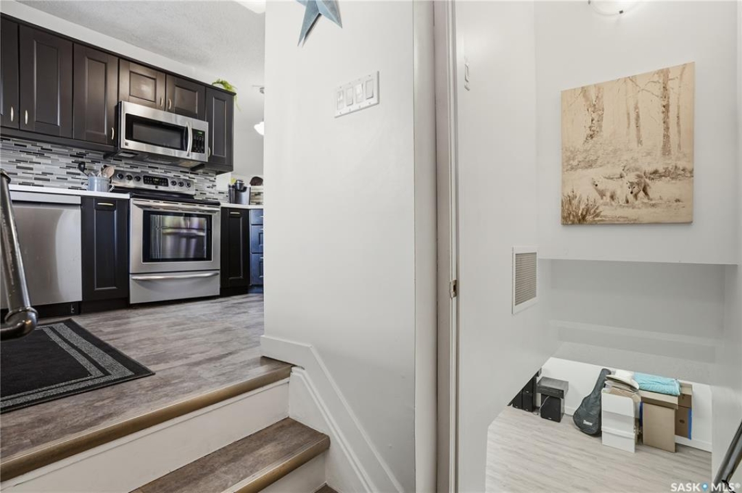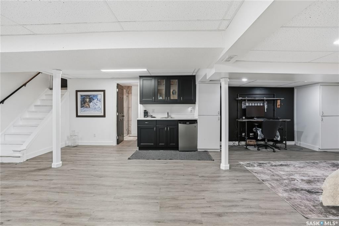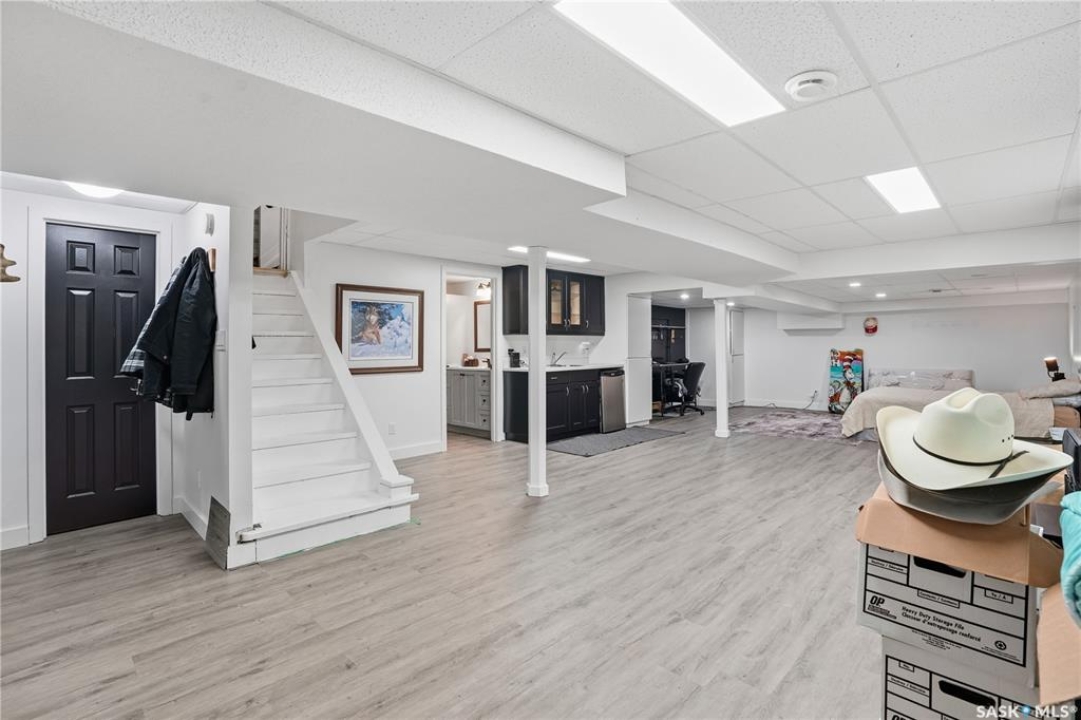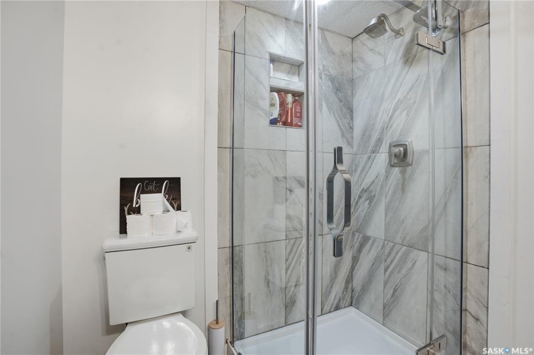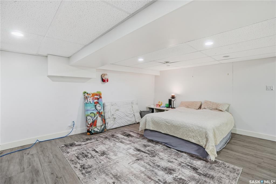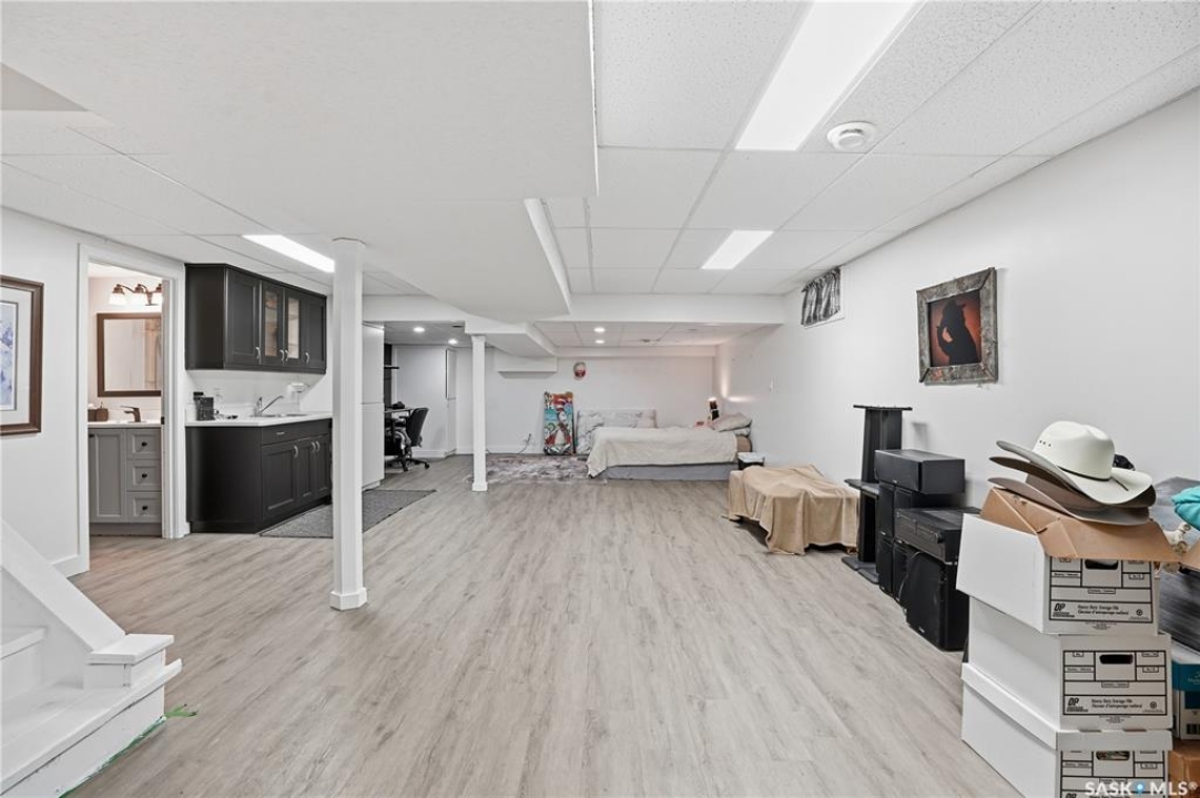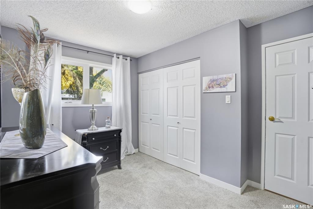 Welcome to this beautifully updated home tucked away on a quiet bay in one of the city's most loved neighbourhoods! The large, private yard is perfect for entertaining, complete with a tandem door off the garage that opens right into your backyard oasis - a patio covered by a pergola with all the furniture included + 3 sheds for storage and a large grassy area perfect for kids and pets. The finished garage provides additional storage + a place for comfortable off-street parking. Inside, you'll find an inviting open-concept layout with a cool, modern-luxurious vibe. A beautifully updated kitchen features glass tile back splash, stainless steel appliances + a complimentary dedicated dining area. The cozy, sunken living room is accented by a tiled fireplace alongside large windows providing natural light. The rest of the main floor offers a primary room with a 2pc ensuite, plus two good-sized bedrooms, ample storage throughout, and an updated 4pc bathroom. Some recent updates include carpet in the bedrooms, fresh paint, updated baseboards, and modern lighting. The fully developed basement is ideal for older kids or guests, featuring a spacious rec room with a wet bar, an additional bedroom, and a stylish 3-piece bath with tiled shower. Major updates to this home include shingles (2019) central A/C, washer & dryer, and an exterior refresh with new paint (all 2025). Located close to great schools, parks, and north-end amenities, this home perfectly blends comfort, function, and location.