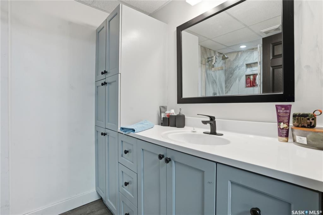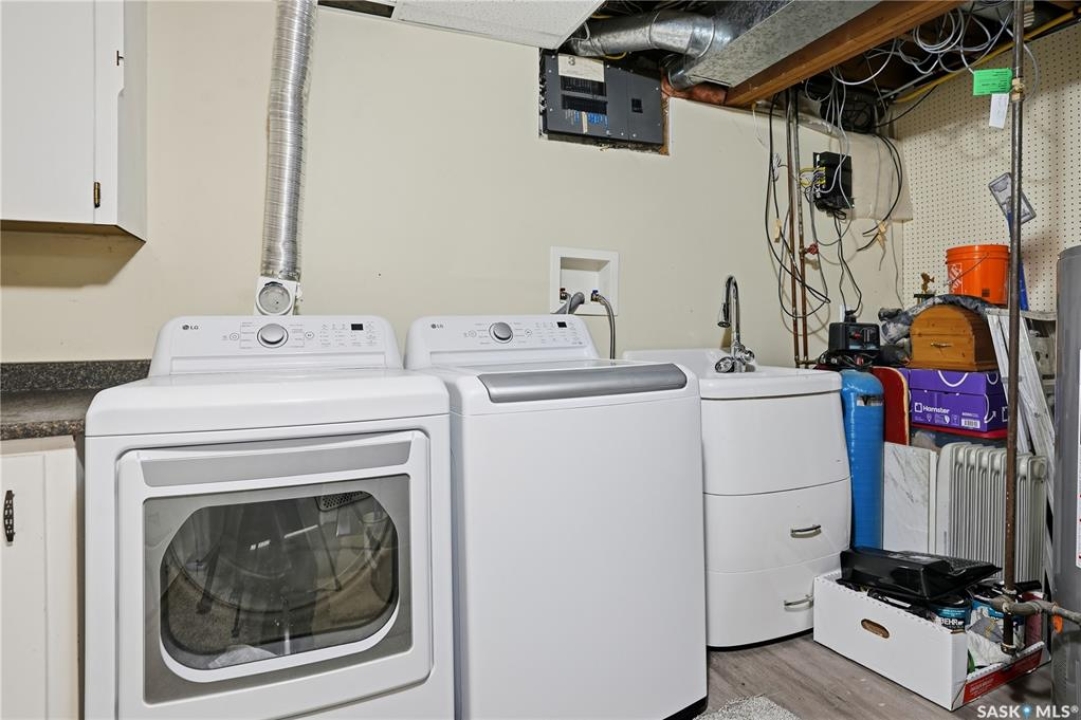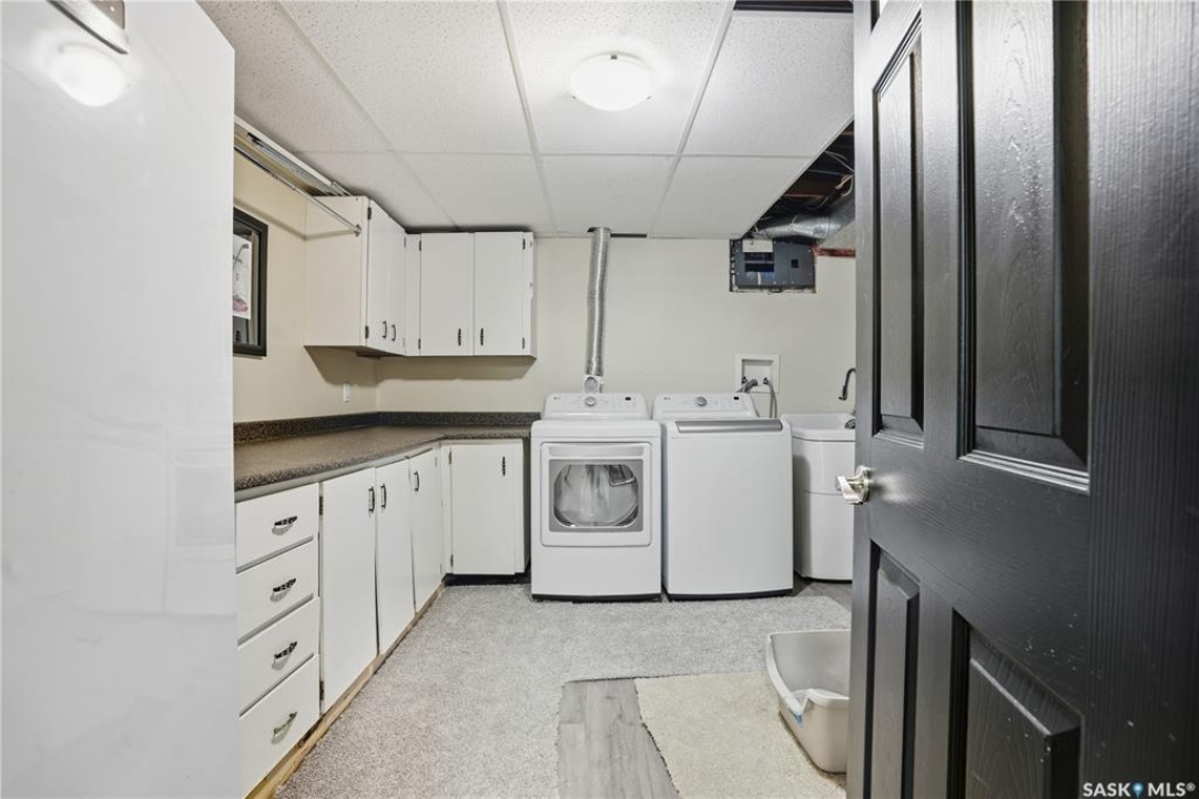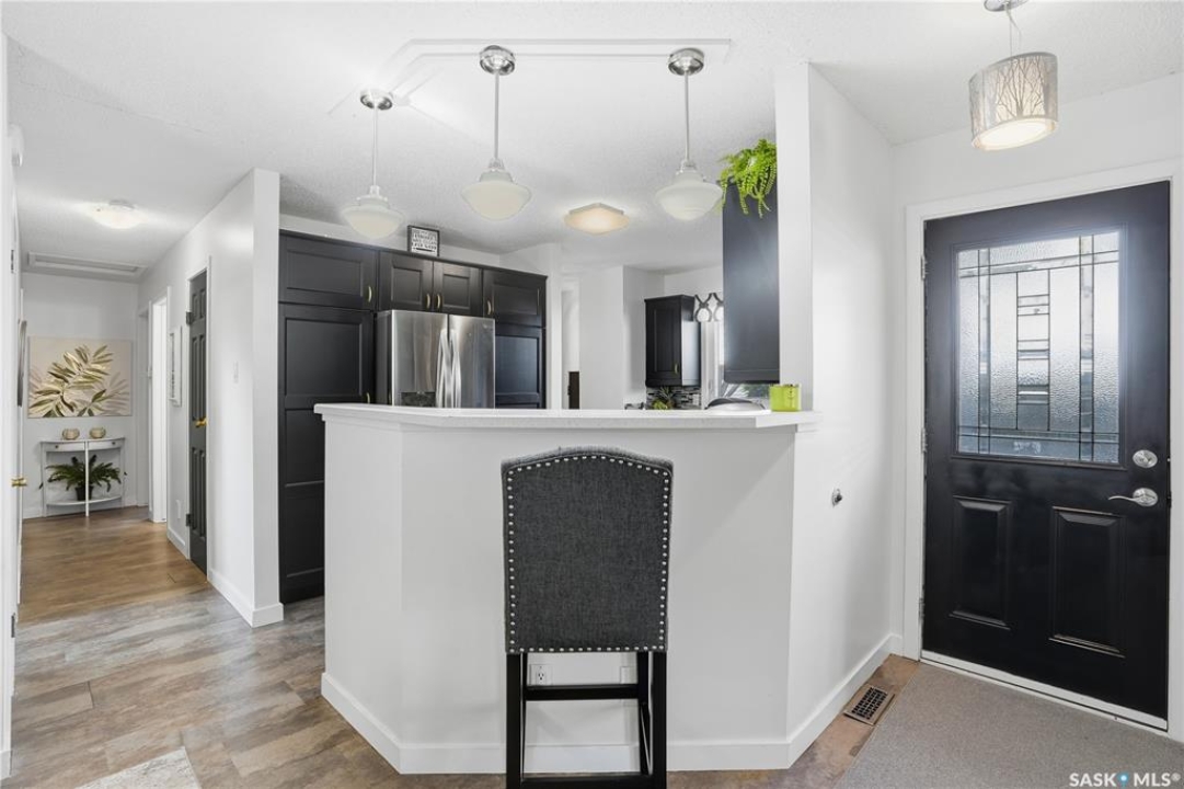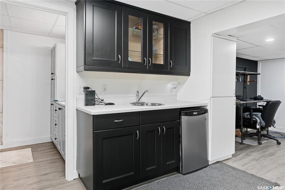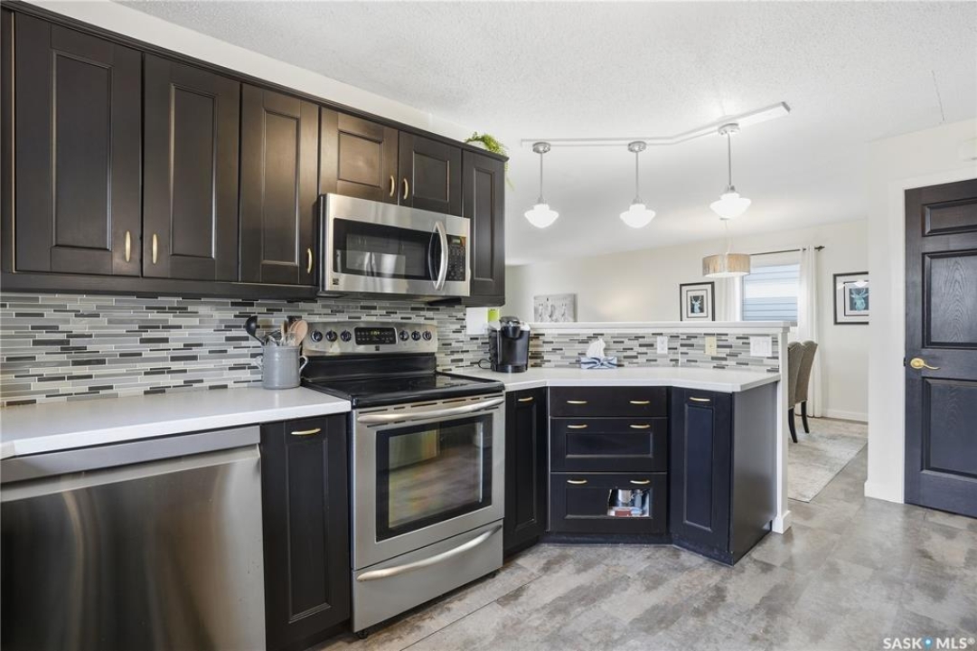 Welcome to this beautifully updated home tucked away on a quiet bay in one of the city's most loved neighbourhoods! The large, private yard is perfect for entertaining, complete with a tandem door off the garage that opens right into your backyard oasis - a patio covered by a pergola with all the furniture included + 3 sheds for storage and a large grassy area perfect for kids and pets. The finished garage provides additional storage + a place for comfortable off-street parking. Inside, you'll find an inviting open-concept layout with a cool, modern-luxurious vibe. A beautifully updated kitchen features glass tile back splash, stainless steel appliances + a complimentary dedicated dining area. The cozy, sunken living room is accented by a tiled fireplace alongside large windows providing natural light. The rest of the main floor offers a primary room with a 2pc ensuite, plus two good-sized bedrooms, ample storage throughout, and an updated 4pc bathroom. Some recent updates include carpet in the bedrooms, fresh paint, updated baseboards, and modern lighting. The fully developed basement is ideal for older kids or guests, featuring a spacious rec room with a wet bar, an additional bedroom, and a stylish 3-piece bath with tiled shower. Major updates to this home include shingles (2019) central A/C, washer & dryer, and an exterior refresh with new paint (all 2025). Located close to great schools, parks, and north-end amenities, this home perfectly blends comfort, function, and location.