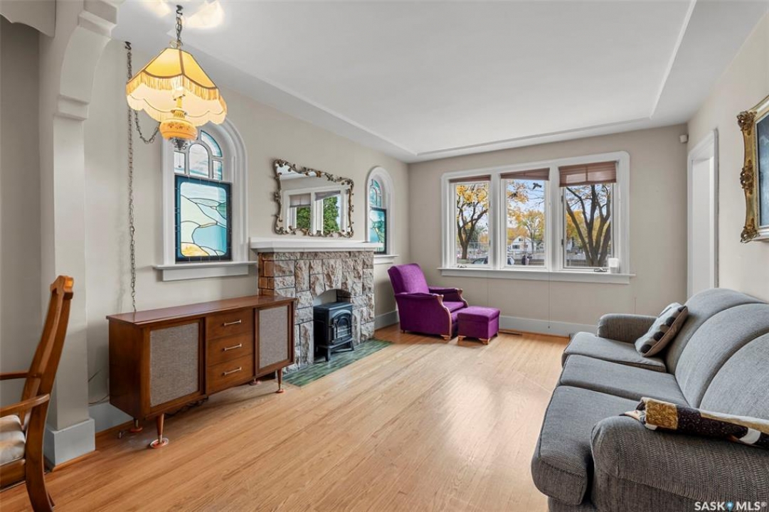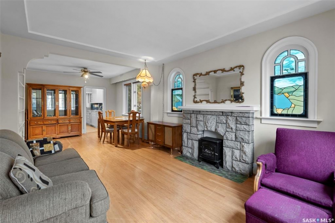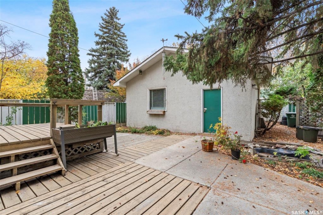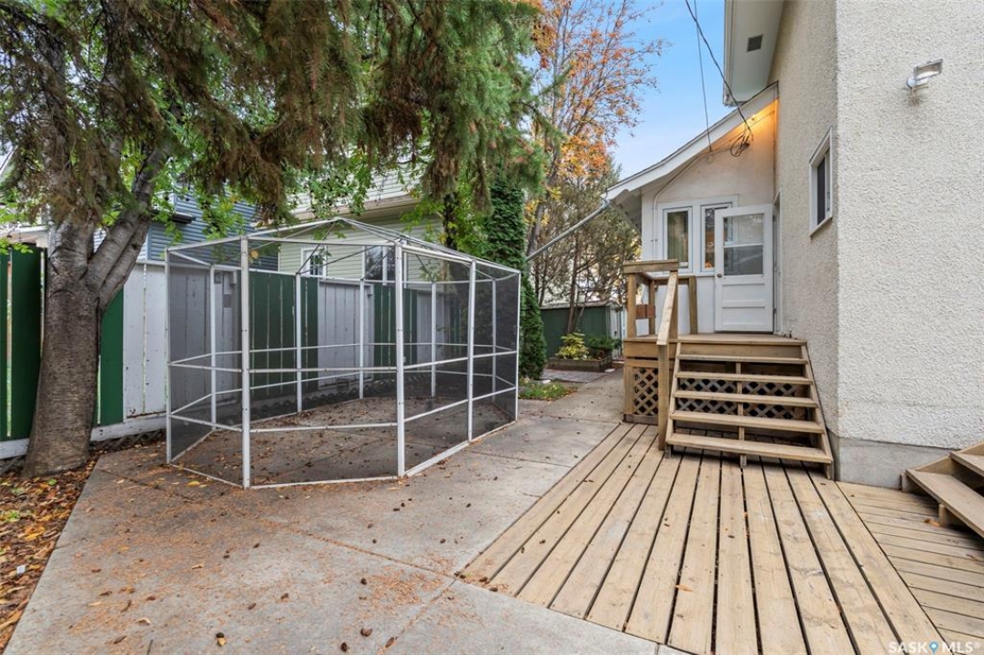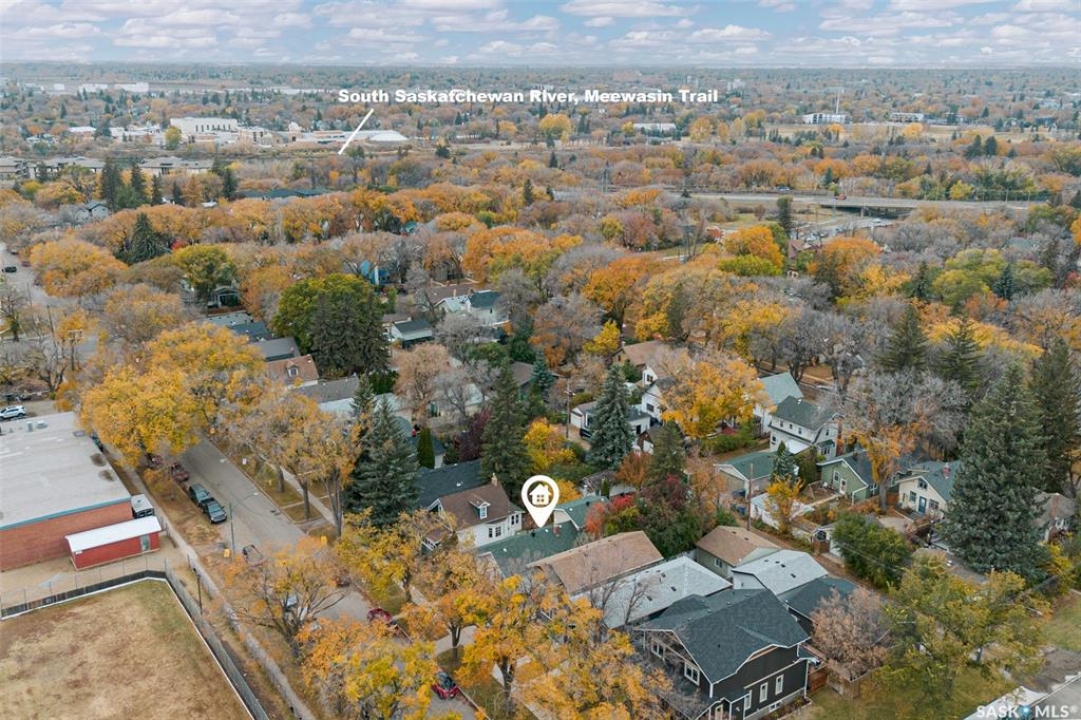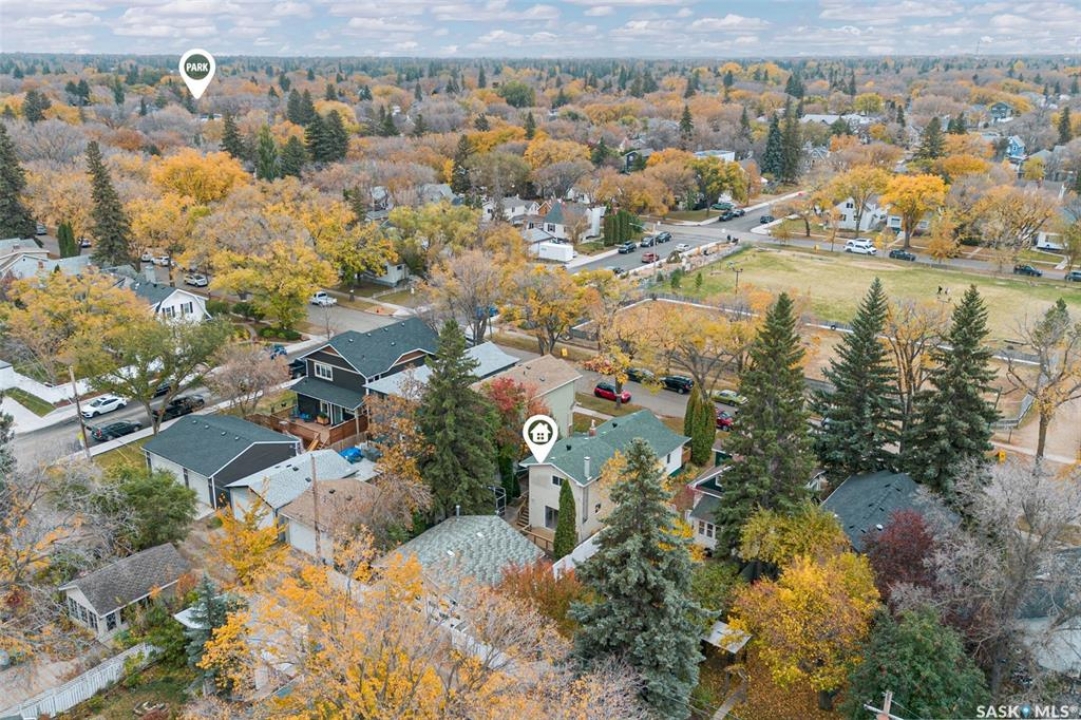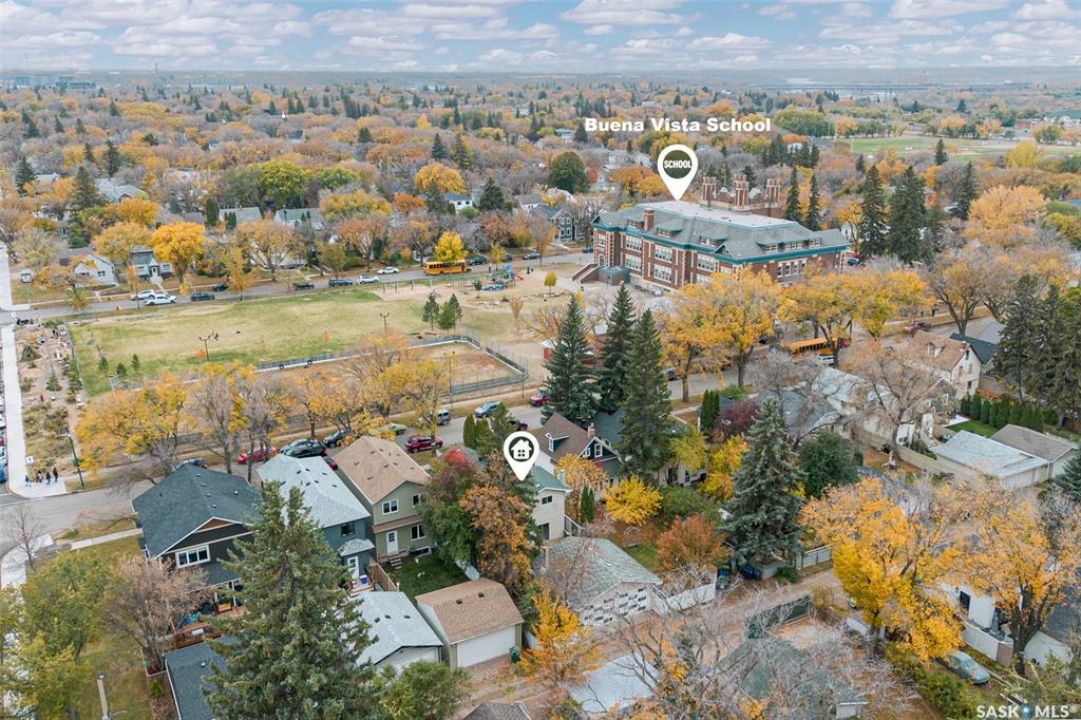 This charming custom 1 ½ storey home in Buena Vista offers character, comfort and an unbeatable location directly across from Buena Vista School. With 1,383 sq ft, this well-cared-for property features 3 bedrooms, 1 bathroom, a bonus room with a cozy wood-burning fireplace, hardwood floors in the living room, dining room and main floor bedrooms, and an unfinished basement with an additional shower. The kitchen appliances are included, making it move-in ready. The property showcases a beautifully treed, park-like yard with a low-maintenance zero-scaped backyard, patio, deck and includes a screened gazebo sitting room for outdoor enjoyment. The double detached garage is insulated and heated. Located in a quiet, friendly neighborhood, this home is just steps from a recently upgraded park and a short walk to Broadway Avenue, downtown and the Meewasin Valley walking trails. Buena Vista School offers a community garden in summer and a skating rink in winter—perfect for families. Built in 1946 with an addition in 1976, this unique home is full of charm and endless potential in one of Saskatoon's most desirable neighborhoods.