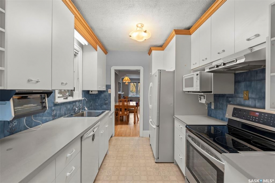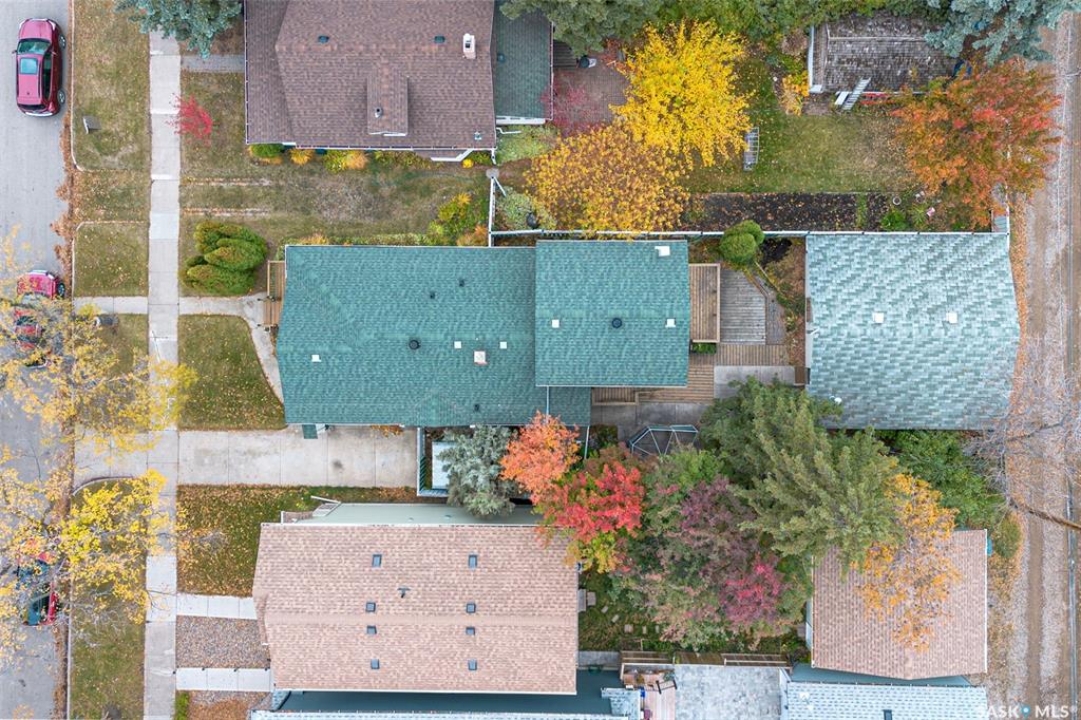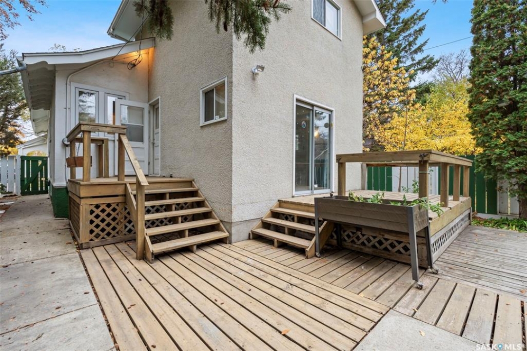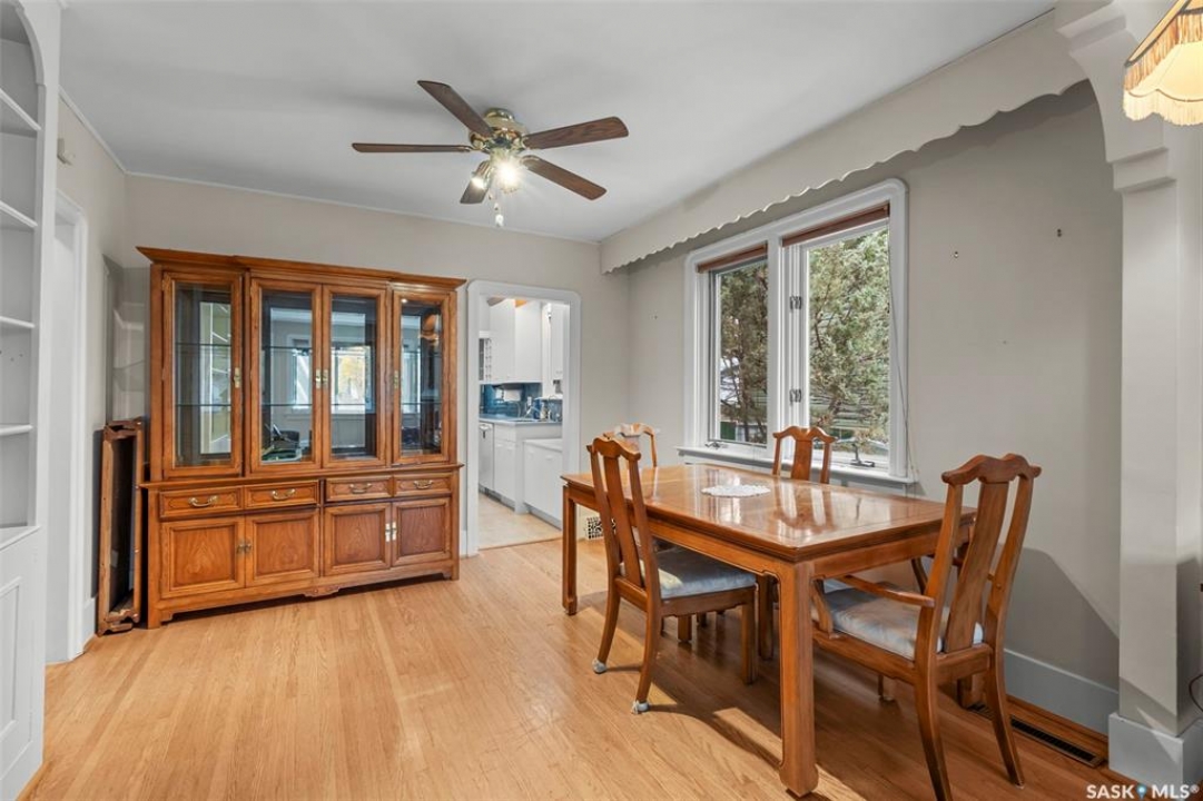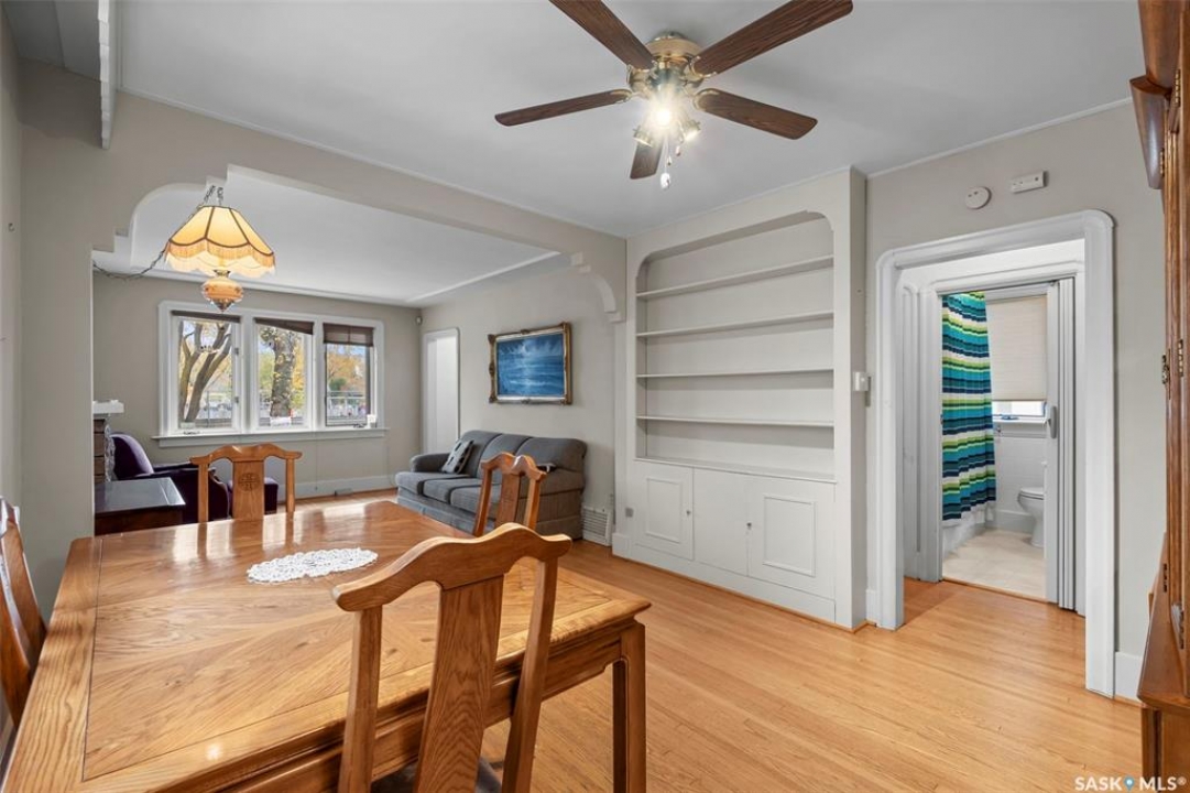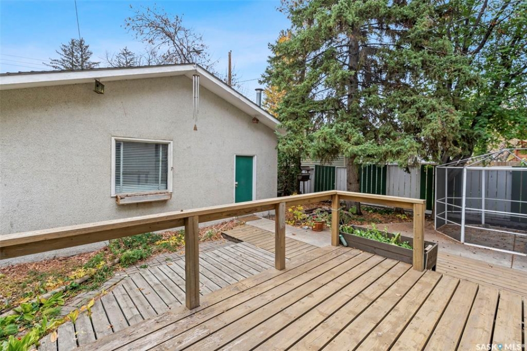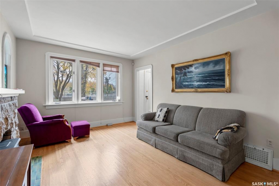 This charming custom 1 ½ storey home in Buena Vista offers character, comfort and an unbeatable location directly across from Buena Vista School. With 1,383 sq ft, this well-cared-for property features 3 bedrooms, 1 bathroom, a bonus room with a cozy wood-burning fireplace, hardwood floors in the living room, dining room and main floor bedrooms, and an unfinished basement with an additional shower. The kitchen appliances are included, making it move-in ready. The property showcases a beautifully treed, park-like yard with a low-maintenance zero-scaped backyard, patio, deck and includes a screened gazebo sitting room for outdoor enjoyment. The double detached garage is insulated and heated. Located in a quiet, friendly neighborhood, this home is just steps from a recently upgraded park and a short walk to Broadway Avenue, downtown and the Meewasin Valley walking trails. Buena Vista School offers a community garden in summer and a skating rink in winter—perfect for families. Built in 1946 with an addition in 1976, this unique home is full of charm and endless potential in one of Saskatoon's most desirable neighborhoods.