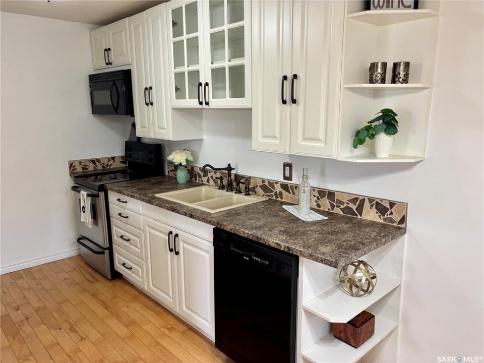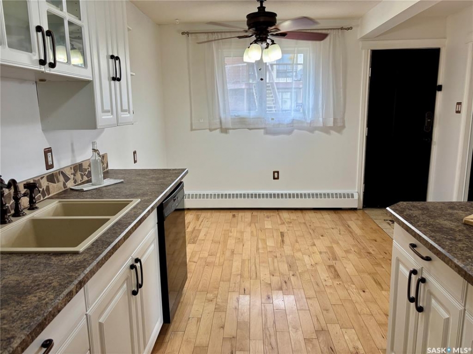 Super cute one bed, one bath main level condo (no stairs to climb) located in the lovely residential area of Gardiner Heights. Wonderful opportunity to own you own very affordable property and stop paying rent. Located close to all east end amenities such as grocery stores, restaurants, pharmacies, coffee shops, parks, and schools, and a quick drive to the U of R and Sask Polytech. This cozy unit offers hardwood flooring throughout the living room, kitchen and dining area. Lovely kitchen features bright cupboards, and the added bonus of a built in dishwasher. Living room offers large windows allowing lots of natural light into the space. Good size bedroom, 4 piece bath and a laundry/storage room with lots of cabinets complete the unit. One dedicated parking stall is included. You can also enjoy the outdoor swimming pool in the summer months. Quick possession is available.