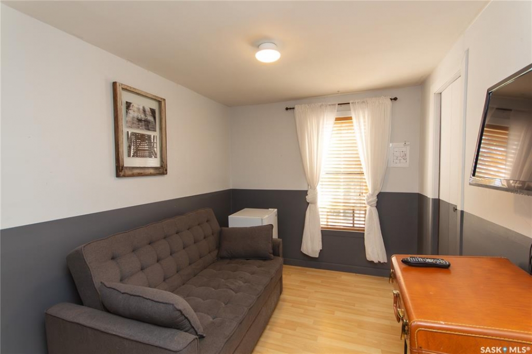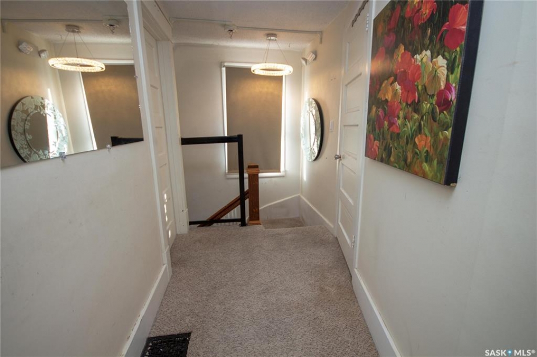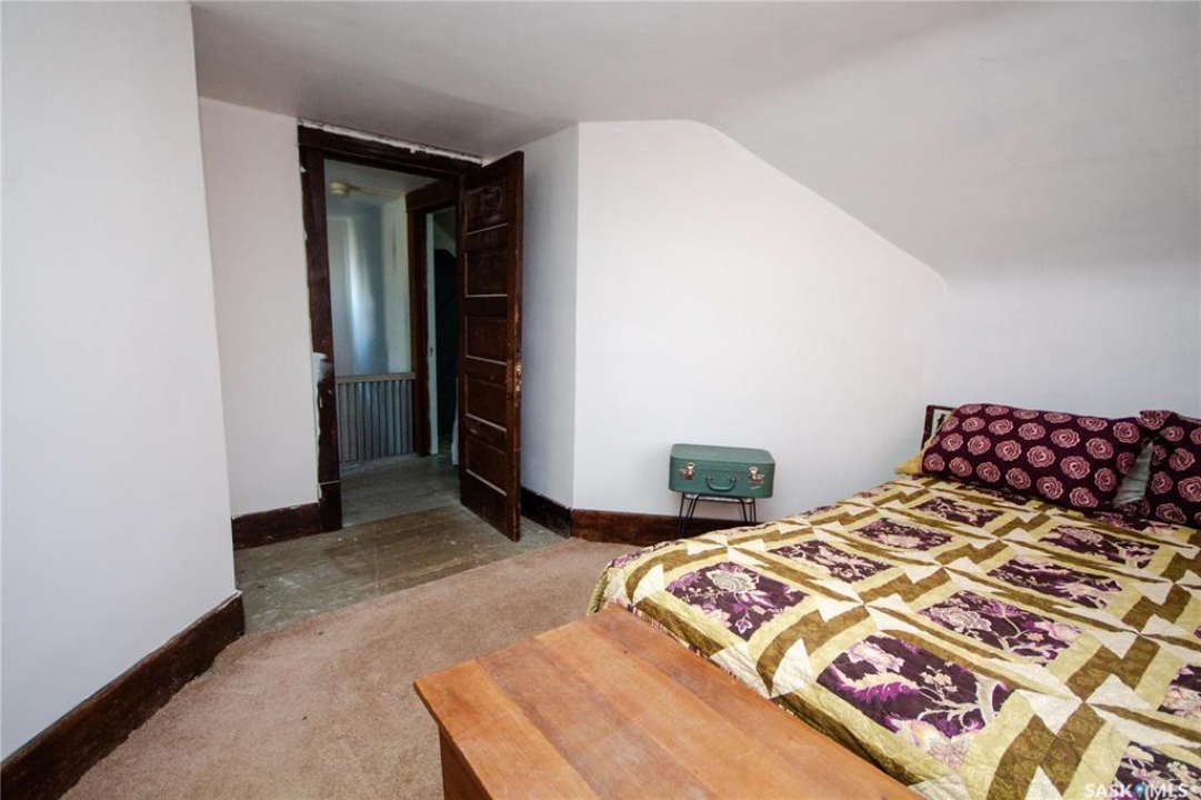 Motivated Seller!! Located in a desirable neighbourhood in the Town of Battleford this 2 ½ storey home boasts 1296 sqft on the first 2 levels with an additional 300sqft on the 3rd floor. With a total of 6 bedrooms and 2 baths there is plenty of room for everyone in the family! Walk up to the covered veranda and you are welcomed by an antique door which leads to an entrance way that showcases the lovely banister leading to the 2nd floor. The living room with an updated window & flooring is currently being used as an office space with 2 sinks but can easily converted back to its previous use. The kitchen leads to a separate dining room with unique storage options and an arch way that has been closed off from the living room that can easily be removed. Main floor laundry and a 2pc bathroom that lead to an attached garage all add modern conveniences to this character home. Up the original staircase to the 2nd level you'll find 3 spacious bedrooms and a 4pc bathroom complete with an air jet tub! The 3rd level has so much potential with 3 additional bedrooms; the north and south bedrooms have window updates. The attic has had some additional insulation added as well. The attached garage is partially insulated and has space for additional storage or a work bench area. The backyard has nice landscaping with a programmable UGSS for the grassy area and a firepit area to enjoy summer evenings. No expense was spared when the over head power was moved underground and the panel box was upgrades to 200 amps. It's a gem! Book your showing today!