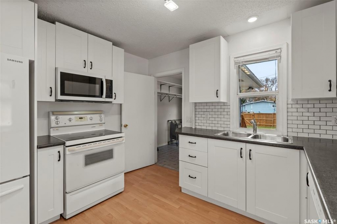 Welcome to 1508 Avenue H North. This raised bungalow is fully developed and sits on a huge lot (approximately 50' x 124', zoned R2). The main floor features a large side mudroom, an open concept kitchen and living room, 2 bedrooms, and the 4 piece bathroom. On the way to the lower level is the shared laundry. The basement (with separate entrance) is bright (huge windows) and spacious, featuring new laminate flooring in 2025, the open concept kitchen & living room, a large bedroom, and the 3 piece bathroom. The huge back yard is fully fenced, includes the deck, and the single detached garage. Tons of parking space in the oversized driveway. High efficient furnace and power vented water heater. All appliances included (new dishwasher in 2025, new fridge in 2024).
