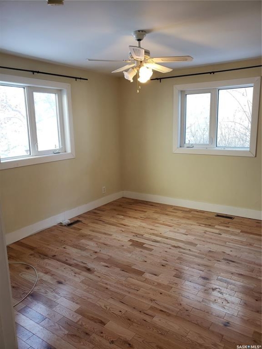 Nice Riversdale location, close to services, downtown and river. This well maintained 1350 sq. ft home has had a lot of improvements over the years. Walk up to a newer deck, large porch entrance, into the open living dining area complete with all new oak hardwood flooring. Large Primary Bedroom addition with large 4 piece bath. Large Kitchen/Dining includes all appliances. Upstairs to 2 smaller bedrooms and 3 piece bath. Downstairs to a warm high basement has been re dug, enlarged with a new steel beam and concrete, electrical as well. Includes a family room, extra bedroom and utility room as well as cold storage. Large cared for fenced yard has a lot of mature landscaping with a variety of shrubs and fruit trees and a paving stone patio. Single car garage with alley access, concrete floor and rear driveway, remote door and insulated. Note: Photos show the home vacant and occupied. Neighbouring homes are friendly, mostly owner occupied. Call for private viewing.