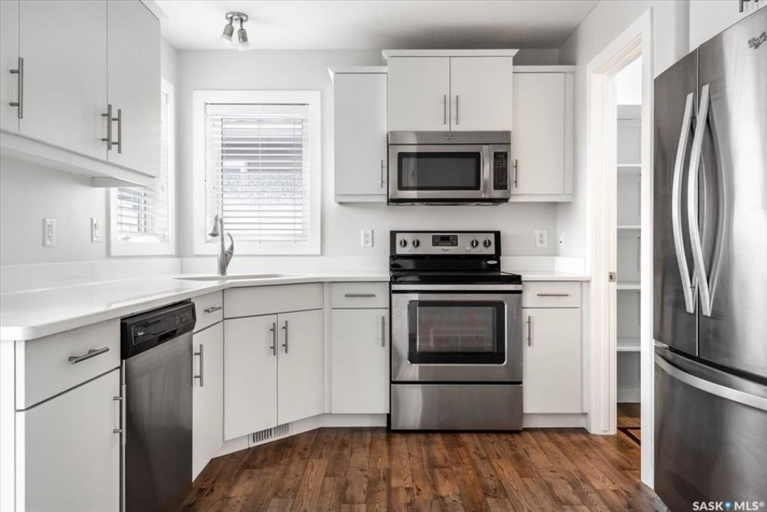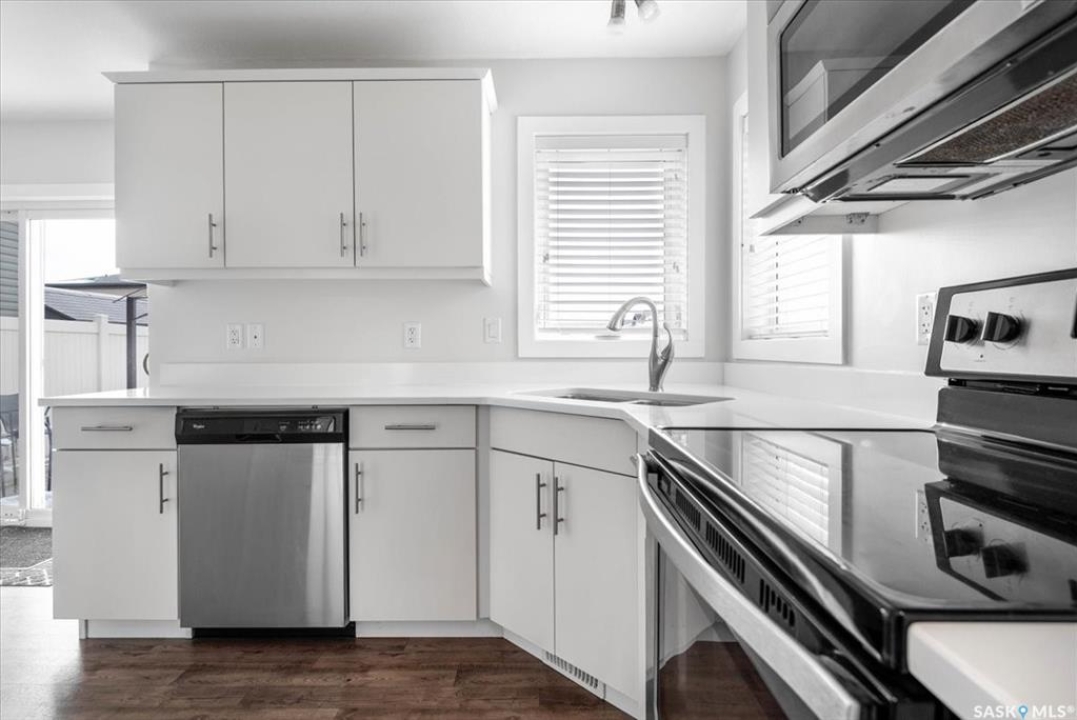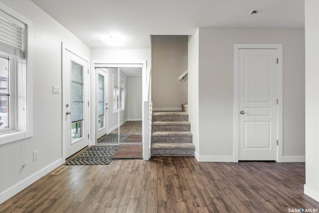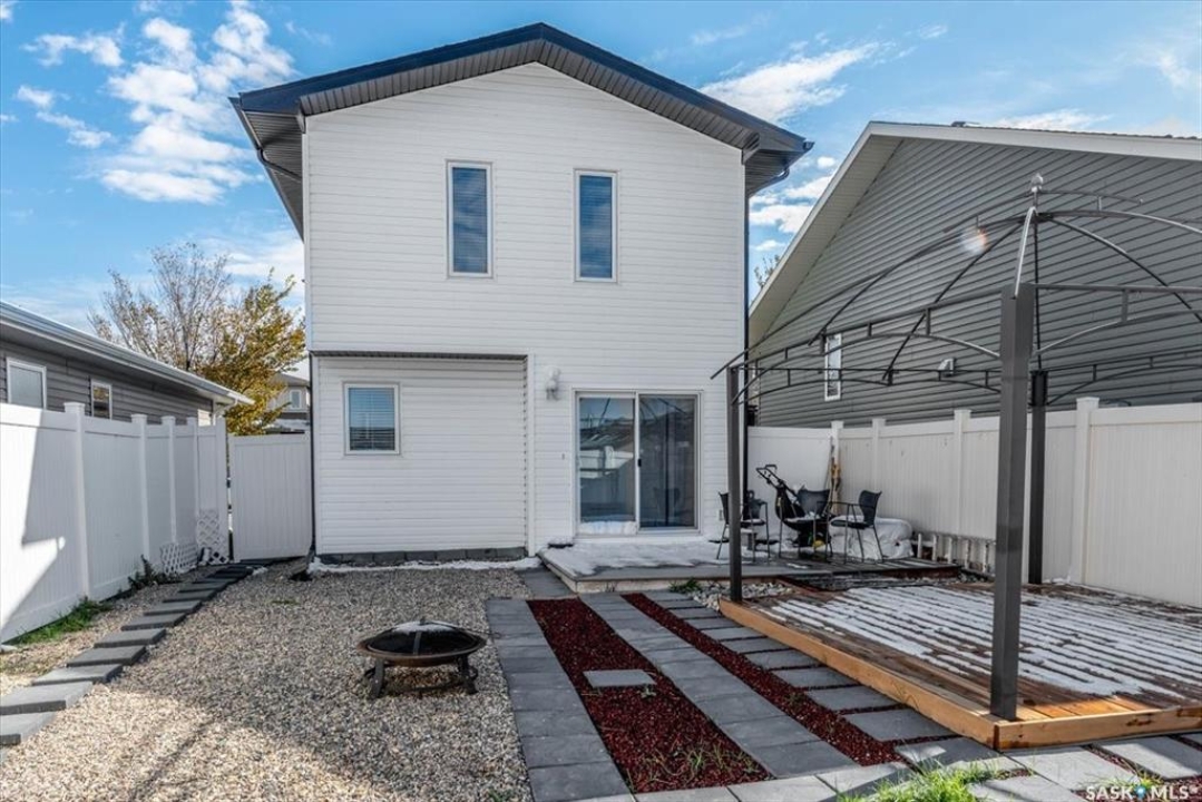 Welcome to this stylish and efficient 2-storey home in the heart of Harbour Landing. Built by Trademark Homes as part of their Freedom Series, this home offers 1,007 sq ft of thoughtfully designed living space on an engineered crawl space, eliminating basement concerns while offering an additional storage option. Inside, the layout is bright and welcoming, with large windows and a functional flow. The kitchen features white quartz countertops, modern cabinetry, walk-in pantry and stainless steel appliances. A cozy dining nook overlooks the backyard, the main floor also includes a 2-piece powder room and utility closet. Upstairs, you'll find three bedrooms, including a spacious primary with walk-in closet and oversized front-facing window. The second level also includes a full bath, laundry, and pull-down attic access with ladder — perfect for extra storage. Step outside to a fully fenced, zero-scaped backyard with a patio, deck and garden area, ideal for relaxing or entertaining. A rear parking pad provides off-street parking, and a base for a future garage. Located near walking paths, parks, and elementary school. this home offers comfort, quality, and convenience in one beautiful little package.