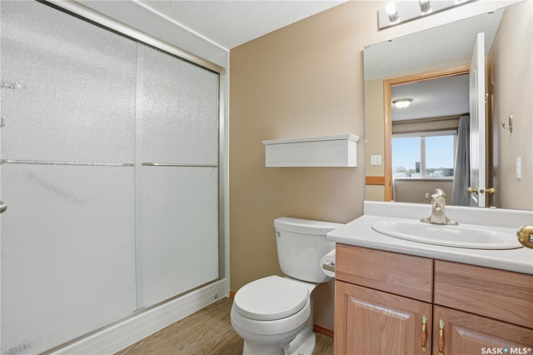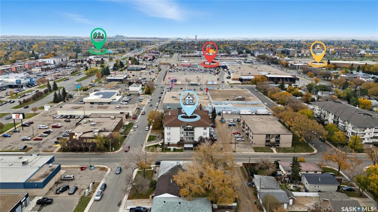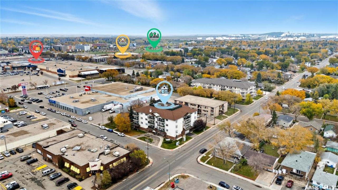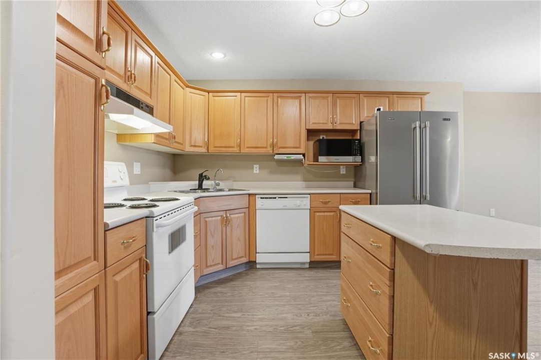 Welcome to this spacious and beautifully maintained 2-bedroom, 2-bathroom condo, ideally situated just steps from amenities and public transit. Step inside to a bright, open-concept living, dining, and kitchen area that's perfect for both relaxing and entertaining. The functional kitchen offers plenty of counter and cabinet space, making meal prep a breeze. Enjoy the comfort of upgraded vinyl plank flooring that flows throughout the main living areas, adding a modern and stylish touch. The primary bedroom features plenty of closet space and an ensuite complete with a sleek new walk-in shower. A second bedroom and full bathroom provide excellent space for guests or a home office. Additional highlights include in-suite laundry, central air conditioning, and a large private balcony—perfect for morning coffee or evening sunsets. You'll also appreciate the convenience of heated underground parking, especially during Saskatchewan winters. Condo fees include heat and water, offering excellent value and peace of mind. Located within a block of shopping, restaurants, and a bus stop, this home combines comfort, convenience, and low-maintenance living.