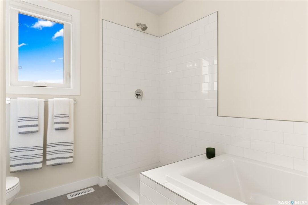 Welcome to the Havenberg – LEGAL 2-Bedroom Suite Option! This spacious Ehrenburg-built home offers 5 bedrooms plus a bonus room, including a main floor bedroom and full 4-piece bath — perfect for guests or multi-generational living. The open-concept main floor features Vinyl Plank water-resistant flooring, a cozy living room fireplace, and a chef-inspired kitchen with quartz countertops, tile backsplash, eat-up island, walk-through pantry, and ample cabinetry. Upstairs, enjoy 4 large bedrooms and a bonus room. The primary suite includes a walk-in closet and a luxurious ensuite with double sinks, soaker tub, and separate shower. The basement is open for development, with a side entry for a future legal suite. Additional features include: • Triple pane windows • High-efficiency furnace • HRV system • Central vac rough-in • Framed and polyed basement perimeter walls Outside, you'll find a double attached garage, concrete driveway, front landscaping, and underground sprinklers. Extra Bonus Rear Deck Included. PST & GST included (rebate to builder). Covered by Saskatchewan New Home Warranty. ?? Photos are from a previous build of the same model. Finishing colors may vary. Main Floor Bedroom + Full Bath 4 Bedrooms + Bonus Room Upstairs LEGAL 2-Bedroom Suite Option Available Contact us today for more details or to schedule a viewing!