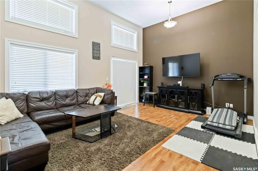 Welcome home to this beautiful, well-kept townhouse in the desirable neighborhood, Stonebridge! This beautiful property offers the best of both worlds, with comfort, space and functionality for you and your family. The main floor features a spacious family room with 12' ceilings, large windows that offer plenty of natural light leading to the balcony. The second level offers an open concept kitchen, with ample storage, and a bathroom with the washer and dryer. Upstairs offers a master bedroom with 2 walk-in closets and an ensuite bathroom. The other 2 generous bedrooms offer lots of space and share a 4 piece bathroom. And the basement offers an additional potential bedroom or living room with a 4th bathroom! With a double attached garage, central air and close proximity to schools, parks, shopping and leisure, this one is a must see! Contact your local Saskatoon REALTOR ® today to schedule your private showing!
