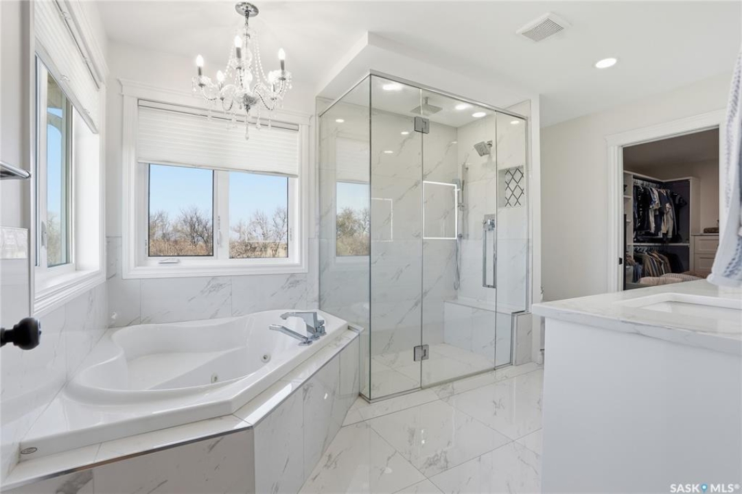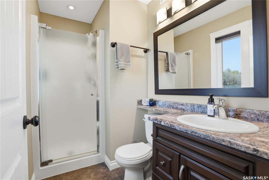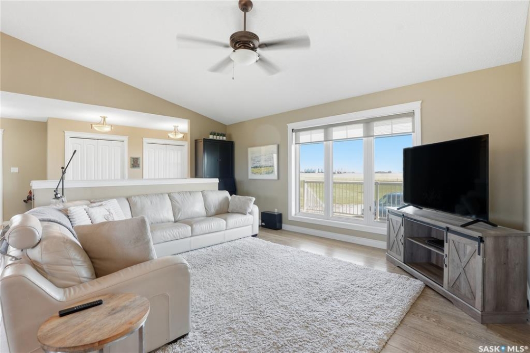 Located southeast of Saskatoon in the RM of Blucher, off Highway 16, along McConnel Road. This stunning 10-acre property offers the perfect blend of luxury and country living. Nestled among scenic farmland, the impressive 4,170 sq ft family home boasts 5 spacious bedrooms and a thoughtfully designed layout ideal for multi-generational living. Step into the grand front foyer, where sleek black tile flooring extends into the main floor laundry and bath. The open-concept main floor is bright and welcoming, featuring a chef-inspired kitchen with wooden cabinetry, tile backsplash, stainless steel appliances, a corner pantry, and a large island perfect for entertaining. Two main-floor bedrooms include one with a private ensuite, while a custom mudroom off the triple heated garage(31'x36') adds practical elegance with built-in shelving and bench storage. Upstairs, the loft showcases a striking glass railing, exposed beams, a cozy stone gas fireplace, and a wet bar complete with tile backsplash, Miele fridge, and dishwasher. The luxurious primary suite is a true retreat with vaulted ceilings, white paneling, a beautiful chandelier, and a spa-like ensuite, featuring white marble tile, quartz counters, double sinks, a glass-enclosed rain shower, heated floors and a corner Jacuzzi tub. The custom walk-in closet offers abundant built-in storage. The fully developed basement includes a large family room, a 4-piece bath with heated floors, two additional bedrooms, and a mechanical room with drip system, a/c, HRV. The 36' x 31' triple heated garage (12' ceilings) is complemented with a bonus space—a home gym or studio—with floor-to-ceiling windows and 12' ceilings. Perfect for fitness or yoga classes. Start the day with morning coffee on the east-facing deck off the kitchen and enjoy serene prairie sunsets from the west-facing back deck or on the stamped concrete patio roasting hotdogs and marshmallows. Call Today. Must be viewed to be truly appreciated.