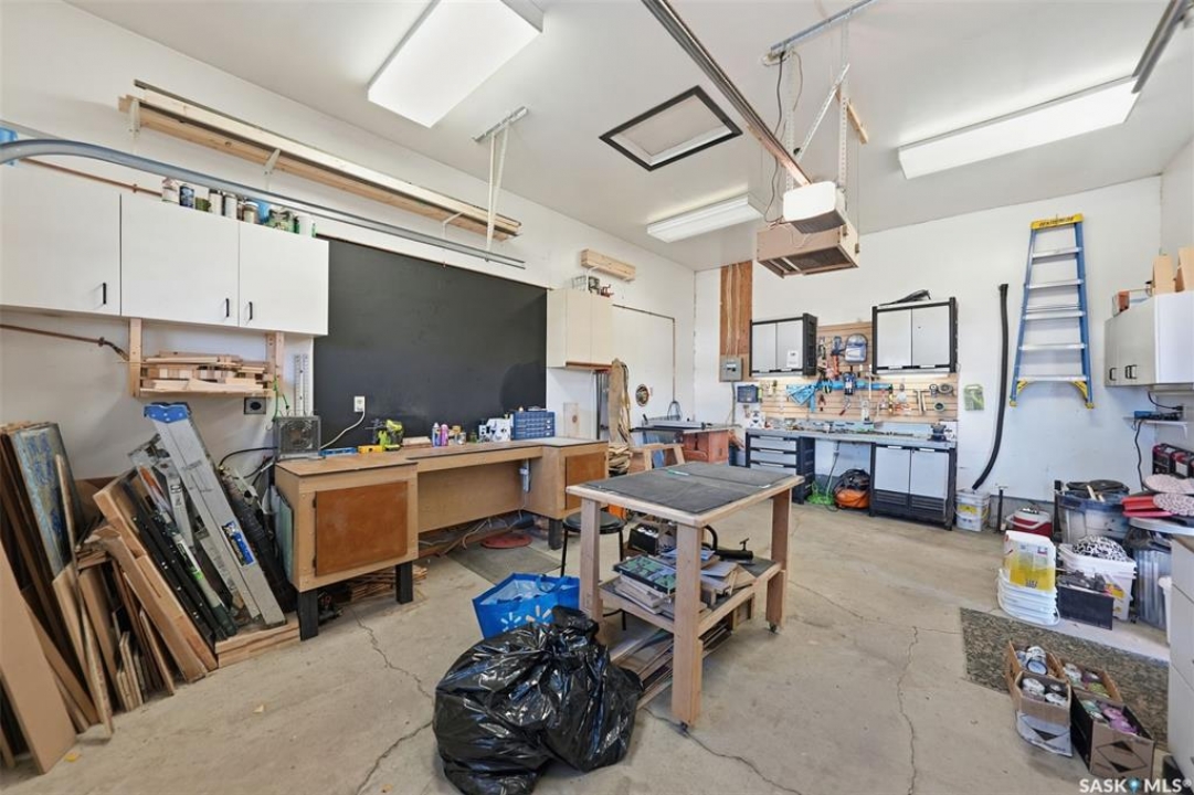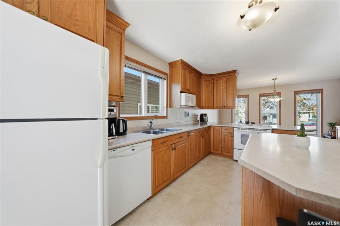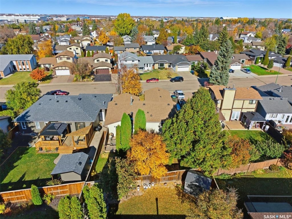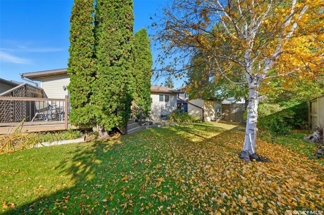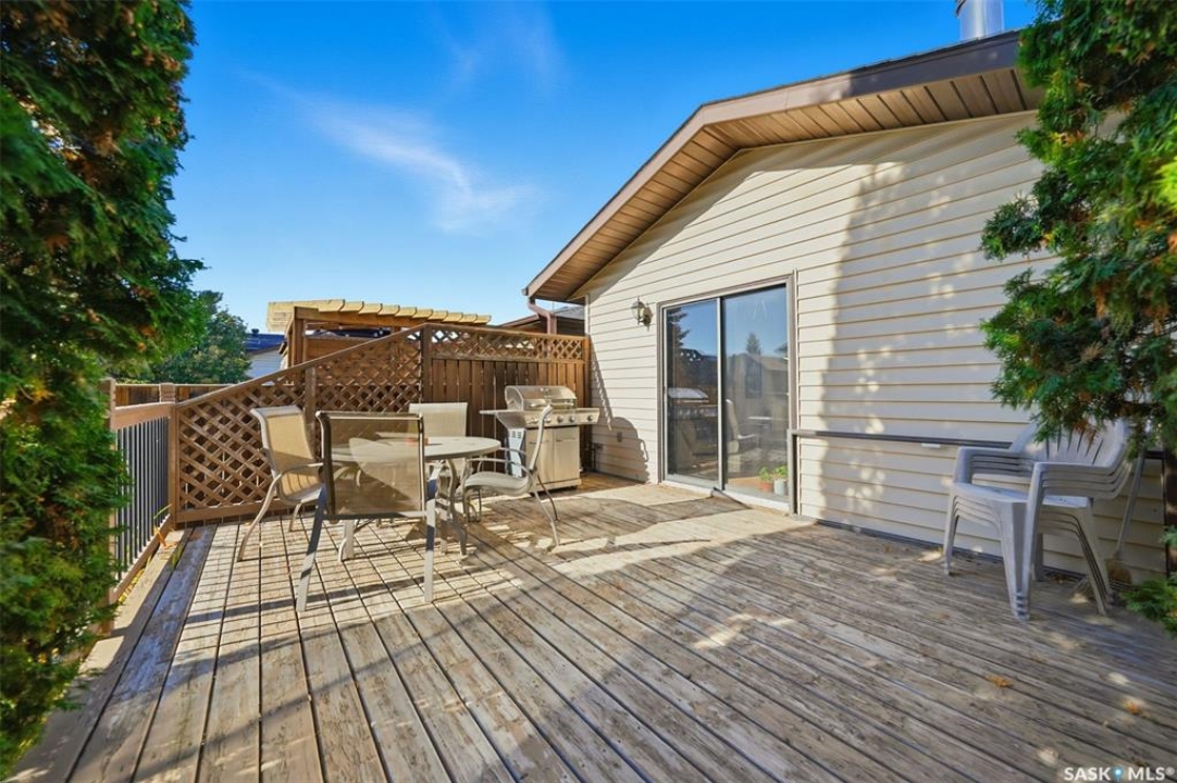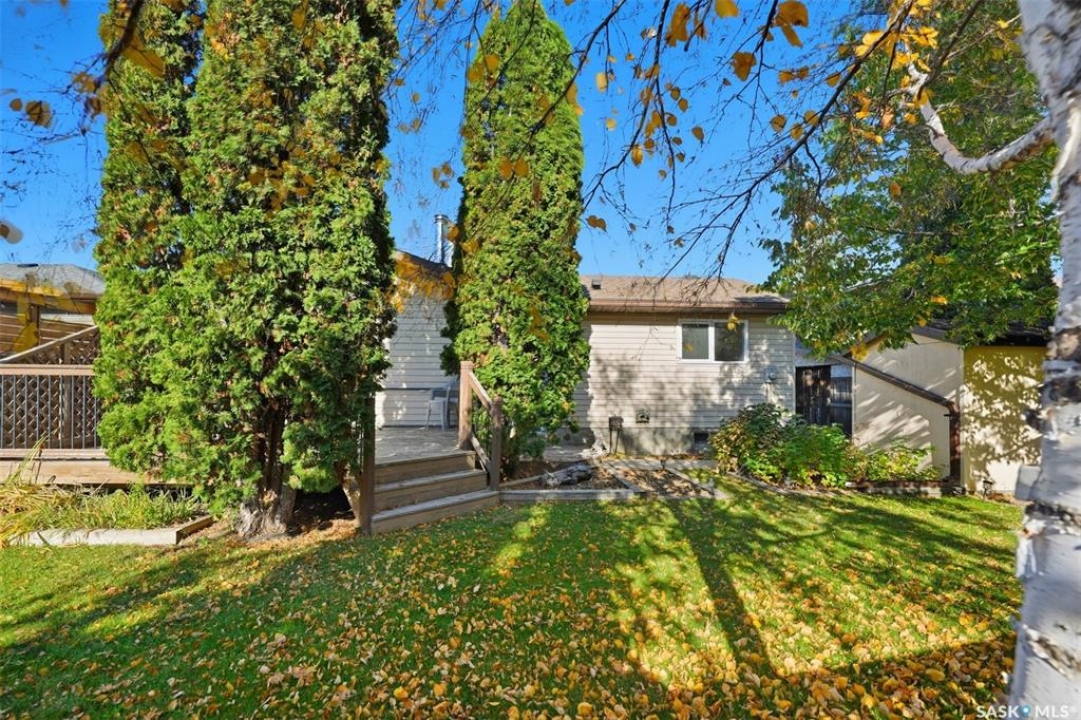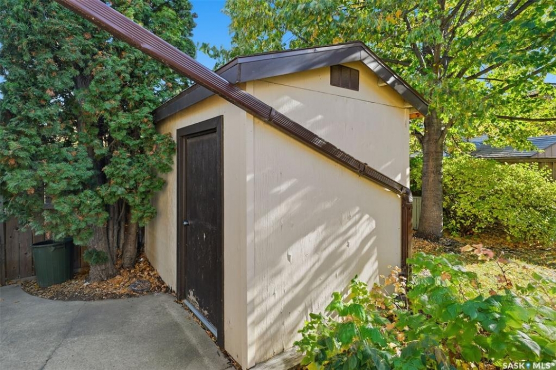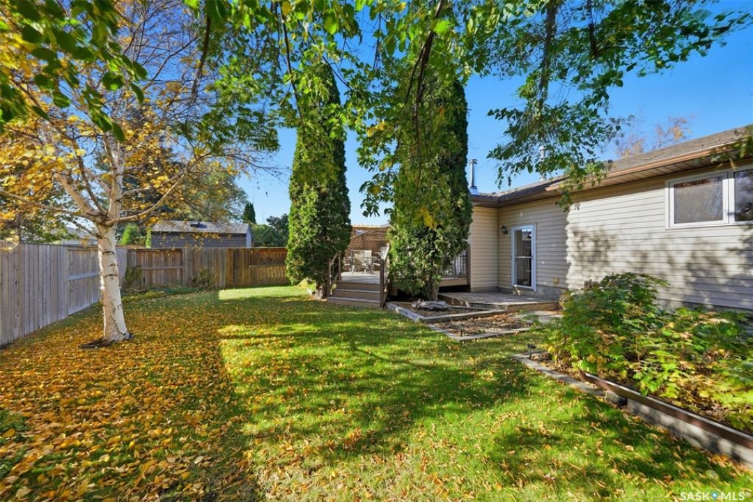 Charming Bungalow in the Heart of Silverwood Heights! Welcome to 1304 sq. ft. of well-maintained living space on a quiet crescent in one of Saskatoon's most desirable north-end neighborhoods. This 4-bedroom, 2 full-bath family bungalow offers an ideal blend of comfort, function, and location. Step inside to a bright, open-concept layout perfect for entertaining, featuring a cozy wood-burning fireplace, upgraded mechanical systems, and abundant storage throughout. The spacious basement is wide open—ideal for a pool table, media room, or custom family hangout. Enjoy cooking and dining with friends in the open kitchen/living space, then step out to a large deck in your mature, fully fenced yard—complete with shed, natural gas BBQ hookup, and plenty of room for the kids or pets to play. Additional highlights include: Newer shingles, windows, doors, and overhead garage door Finished single attached garage Triple driveway plus concrete side yard—perfect for boat or trailer parking Newer fence and tasteful upgrades throughout Shows 10/10! Close to top-rated schools, parks, and all north-end amenities, this home offers unbeatable value in a family-friendly location.Don't miss your chance to own a move-in-ready gem in Silverwood Heights!