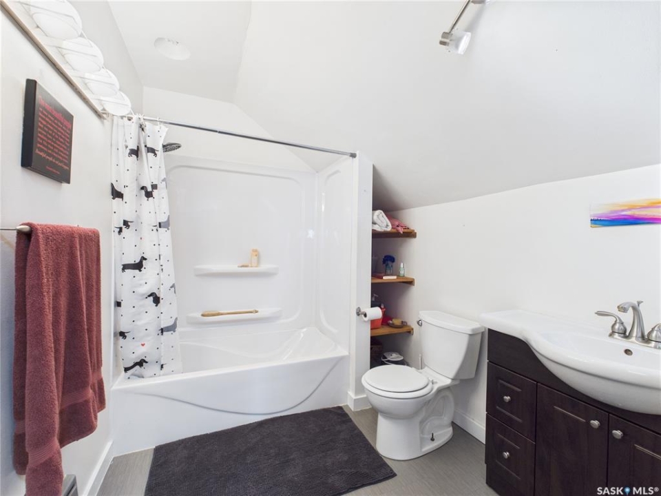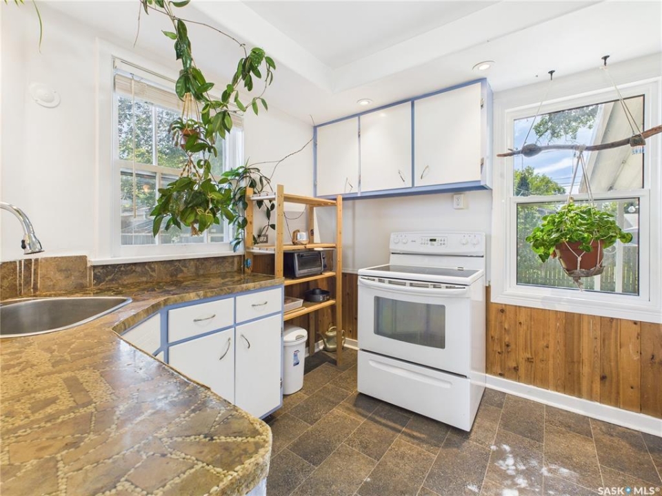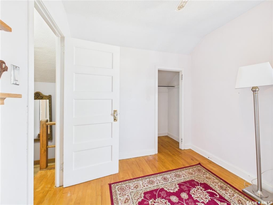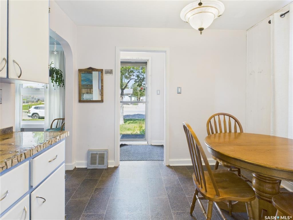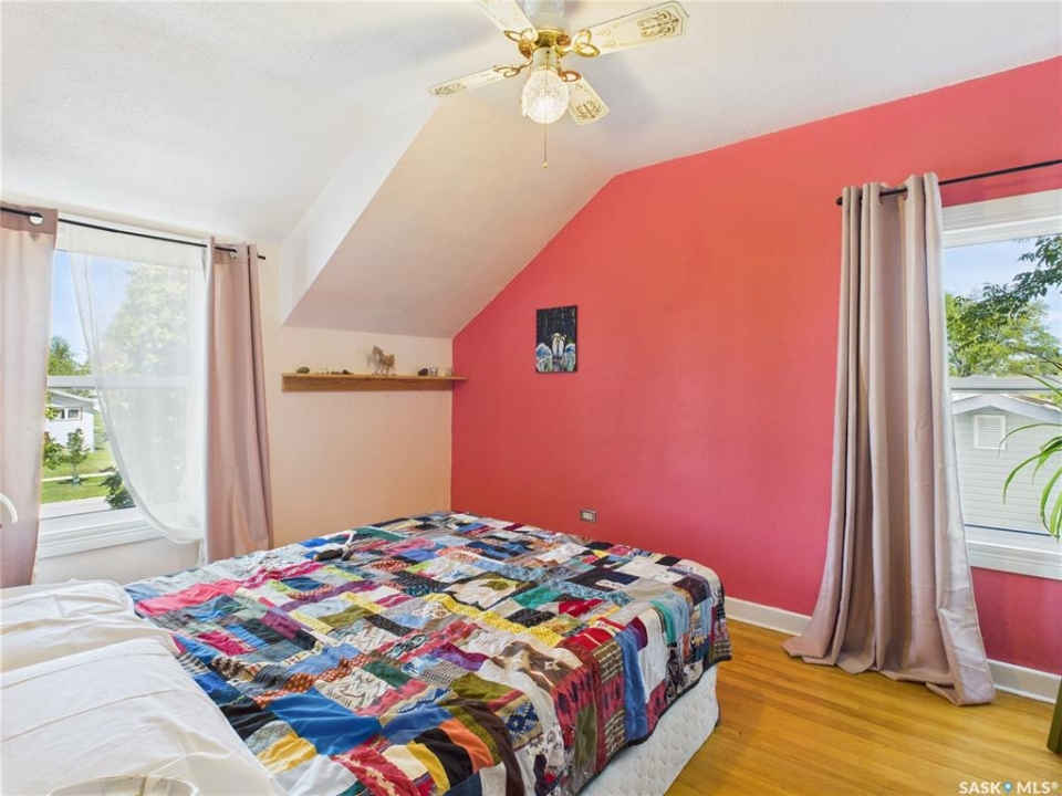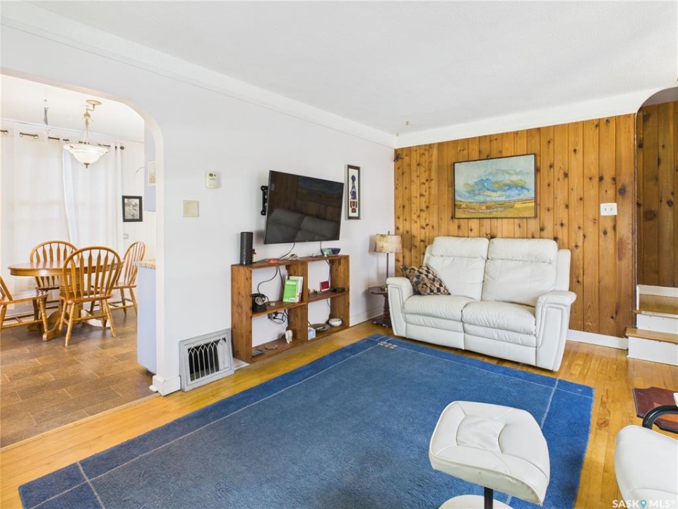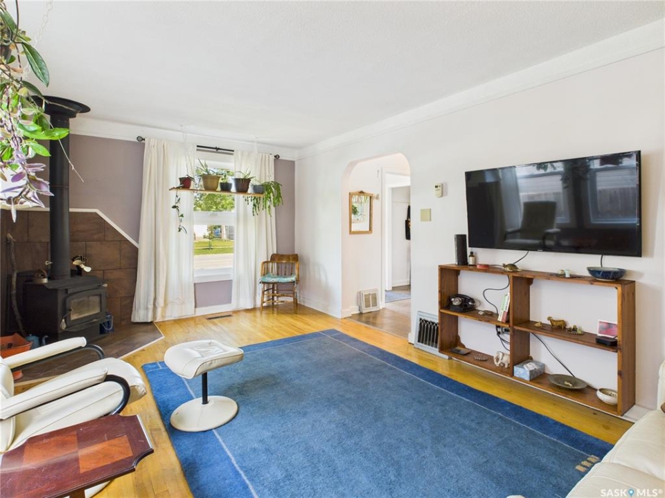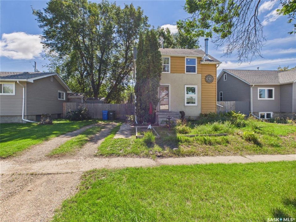 This charming 1 ¾ storey home in Westview is full of character, charm and warmth. With three bedrooms upstairs and 885 square feet of smartly designed living space, it's the perfect fit for anyone wanting both charm and practicality. The main floor features arched doorways, hardwood floors in the living room, and a peek-through from the kitchen to the dining room that makes entertaining feel easy and connected - not to mention the wood stove for snuggling up on cold winter nights! Many of the windows have been upgraded in recent years, with the most recent being the living room window installed this spring. The large bathroom has all newer features, plus plenty of space to get ready each morning. Outside, the fully fenced yard is surrounded by mature trees and colourful wildflowers in the front garden, along with garden beds ready for herbs, vegetables, or more flowers. The location is ideal for those who love the outdoors, with the Rotary Trail just steps away for morning walks or evening bike rides. It also offers a quick and convenient commute to the Saskatchewan Penitentiary, making it an excellent option for those relocating to work there. With its character details and smart layout, this move-in ready (and oh-so-sweet!) home is ready to welcome its next owner.
