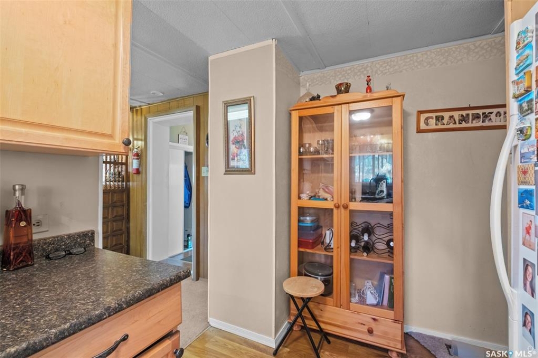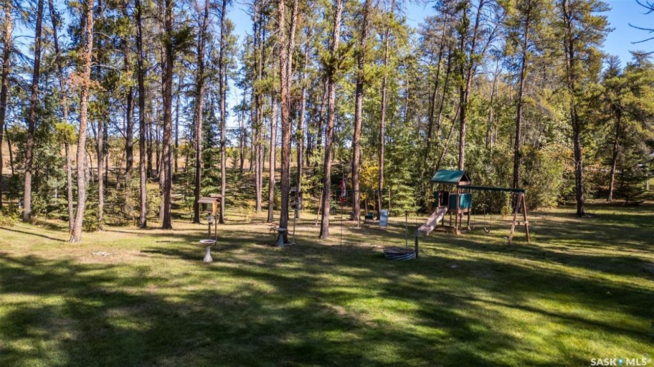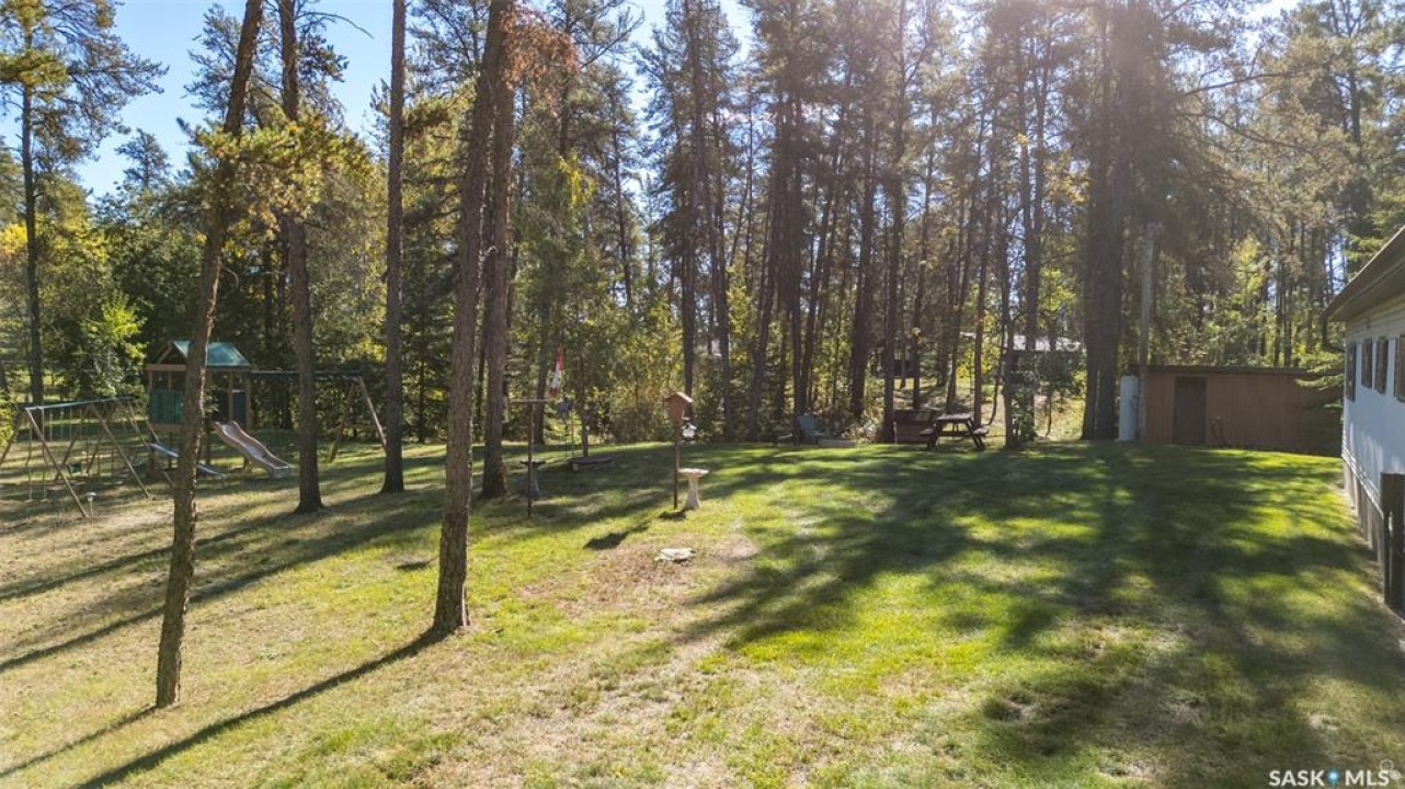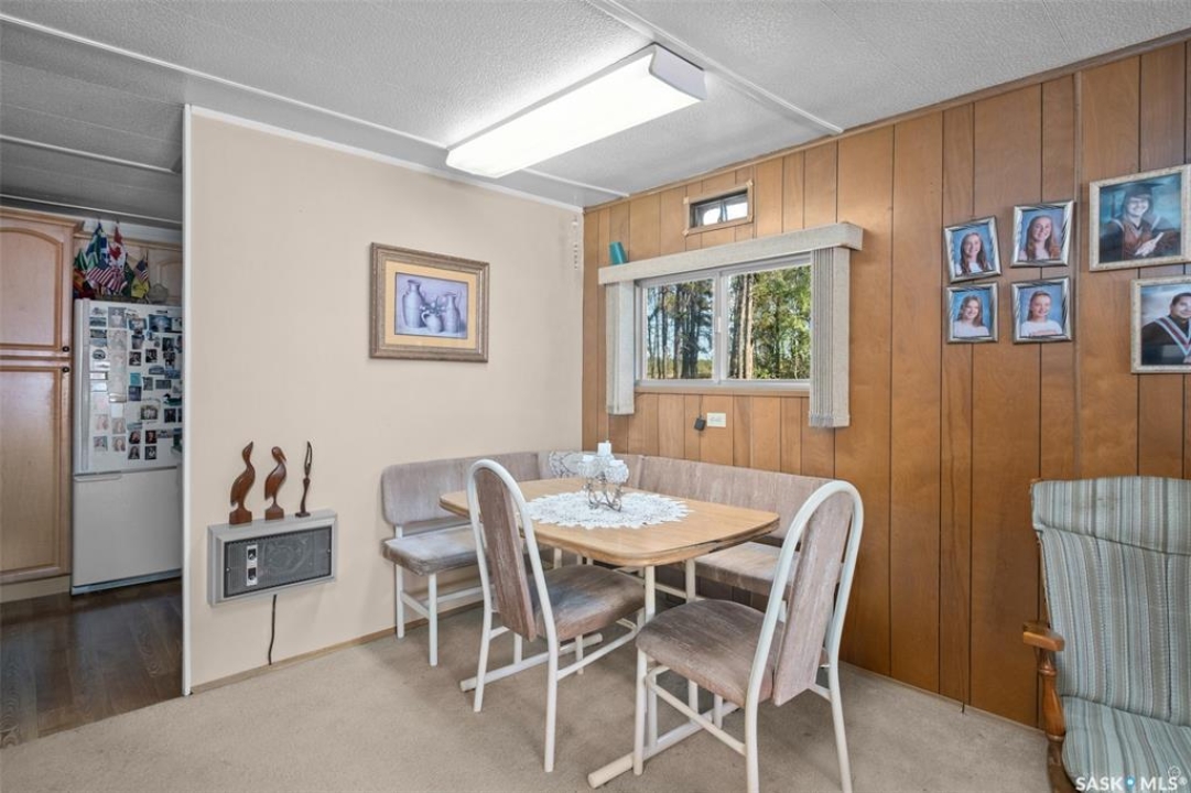 Just 10 minutes from Prince Albert, this well maintained 4 bedroom and 1 bathroom mobile home offers country living with convenience. The expansive living and dining area is filled with natural light from large windows and seamlessly flows into the spacious kitchen that has plenty of storage space. There are 4 comfortable bedrooms and a bright white 4 piece bathroom. Nestled on 1.5 acres, this fully fenced property is surrounded by 200–300 mature trees, precisely planted throughout the landscape to provide both privacy and natural beauty. A sprawling deck and firepit area create ideal spaces for outdoor gatherings, while the added bonus of a heated 7 ft x 18 ft shed adds valuable storage or workspace options. Water is supplied through a shared well located on the adjacent lot and the sewer system is a septic field to a septic tank. Situated near the North Saskatchewan River and the Nisbet Provincial Forest, this home offers a peaceful retreat close to nature. The adjacent lot is also available for purchase (MLS # SK021153), providing an exciting opportunity to expand your space. Act now, make this your next move!