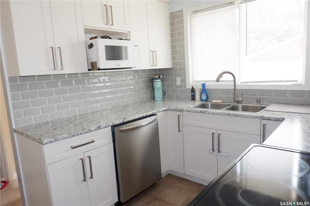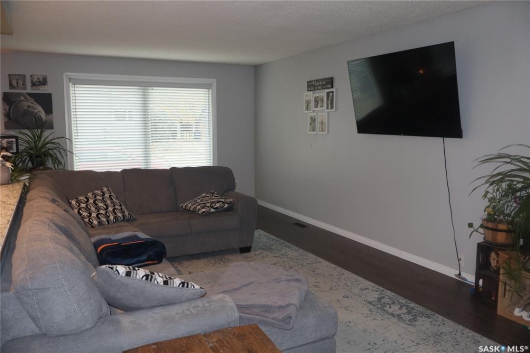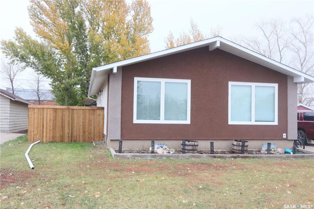 Located in Assiniboia's family-friendly Crescent, this upgraded home features an open-concept kitchen with built-in dishwasher, updated flooring, and fresh paint. The main floor offers three bedrooms including a master with 2-piece ensuite, plus PVC windows and vinyl siding. The finished basement includes a large rec room, extra bedroom, laundry, bath, and storage. An energy-efficient furnace, central air, attached garage, huge backyard patio, and ample green space complete the package. Walking distance to schools and the park/skating rink.