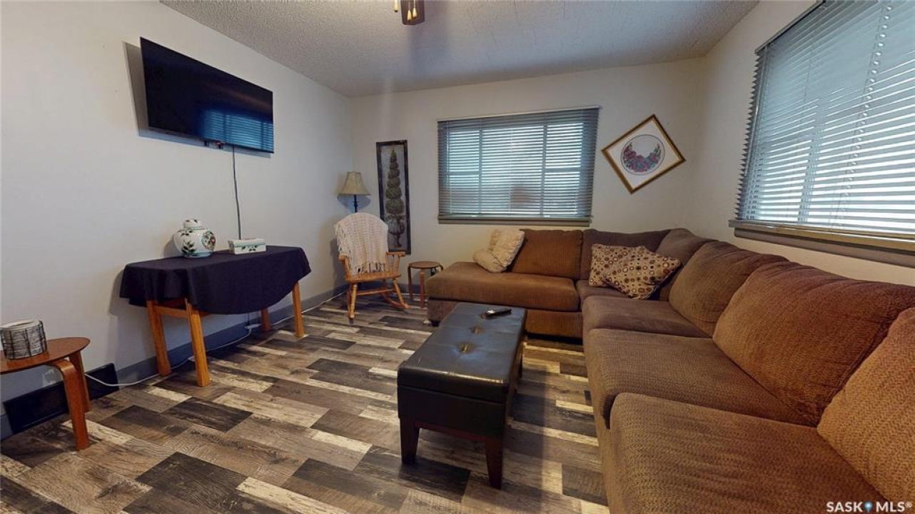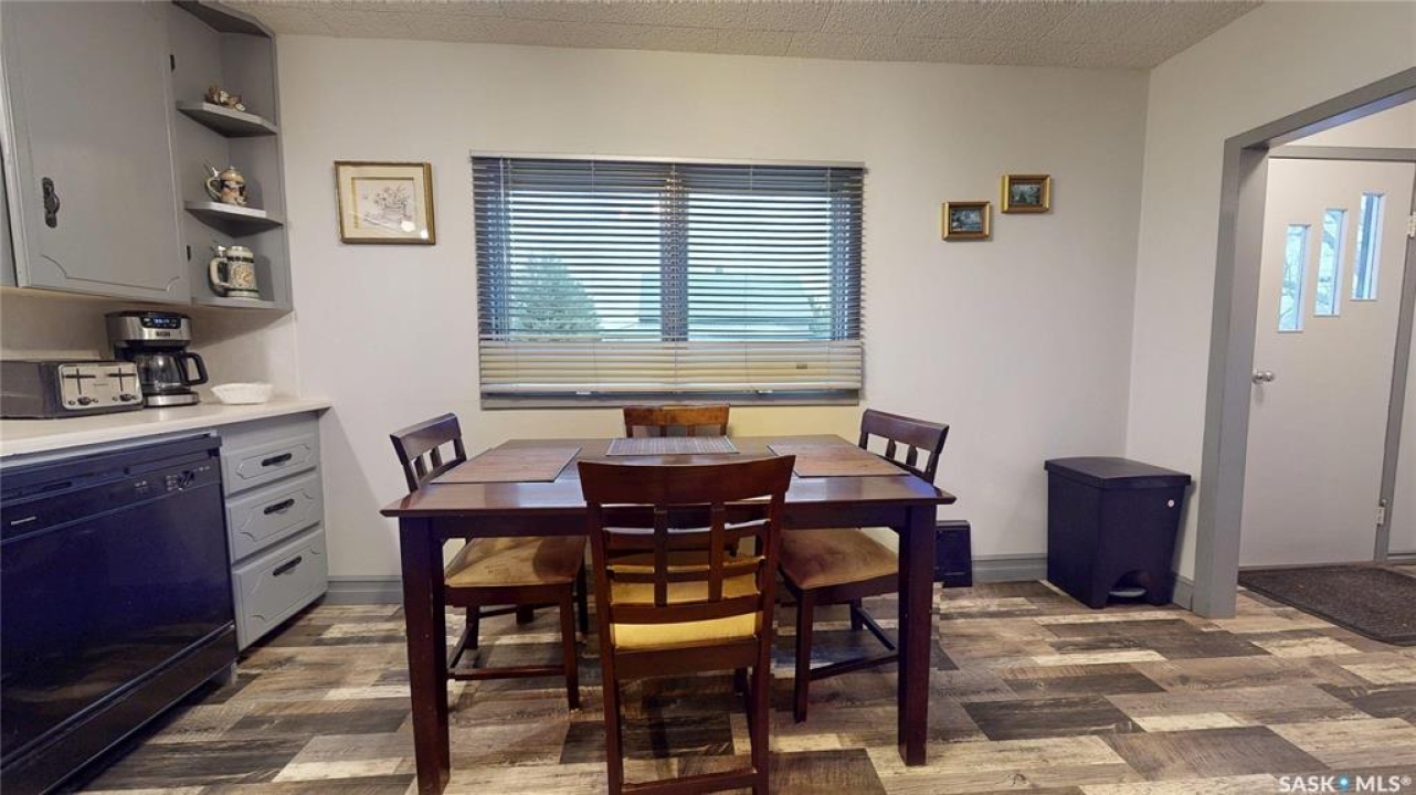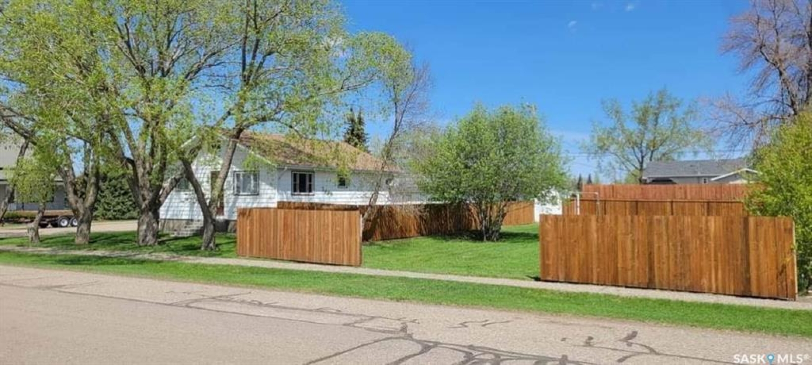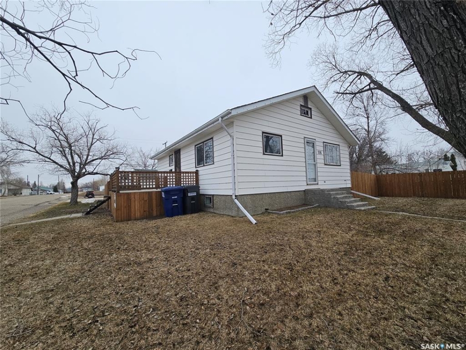 Take a look at this large corner lot located at 116 Jubilee St in Burstall, Sk. This home offers a eat in kitchen with plenty of storage and cabinetry, good sized living room with 2 bedrooms and main floor laundry. The 4-piece bathroom has been cleverly renovated to accommodate maximum functionality. There is attic space for extra storage. The full basement has the potential to become even more finished living space with a large open area, bedroom and storage. The deck has direct access off the kitchen, ideal for BBQing and entertaining. The adjoining lot is included and has the potential to be a gardener's dream. The detached garage has a separate space for workshop/ or a green thumbs dream garden shed. Embrace the potential of small-town living in this charming property that's ready to become your personal sanctuary or investment property.