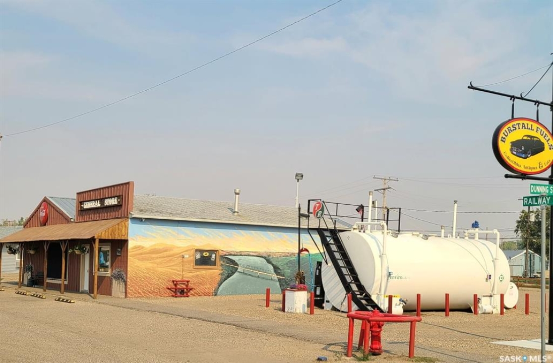 Are you looking for a unique investment opportunity? Look no further! This charming gas station offers not only the essential services you need but also a host of attractive features that make it a standout property. Burstall is a beautiful small town located near Hwy 321 & AB hwy 41 & SK-AB border in SW SK.10 min. from 4 gas plants. Burstall Fuels is the only Gas Station within an hour off of Highway 41. The Business is a busy, relatively self sustainable 24/7 pay at the pump fuel service that is well advertised on main access hwy's & stays busy with locals & travelers and contractors working in the area. Corner lot is ideal for easy access & offers regular, diesel as well as a premium fuel. The attached convenience store has & old west "general store" facade that extends inside where they offer the essentials snack & beverages plus a unique selection of collectibles, antiques, giftware, souvenirs some supplied by local venders. Just a quick stop or stay & relax, stretch out & enjoy homemade heat & eat meals, baking, snacks & treats. One of the standout features of this property is its fantastic outdoor entertaining area. Perfect for hosting community events, car shows, or simply providing a relaxing spot for customers to unwind. This space is beautifully designed with picnic tables, fire pit area as well as a cook house ideal for local gatherings and special promotions, this area can be a hub for community engagement. This property also includes a separate rental suite, offering the perfect opportunity for additional income or on-site accommodation with its own entrance, ensuring privacy for tenants or owners. Stop while exploring The Great Sand Hills or while travelling SW SK. Don't miss out on this unique opportunity to own a versatile property that offers not only a thriving business but also the potential for community engagement and additional rental income. Call today to schedule a viewing and explore all that this exceptional gas station has to offer!