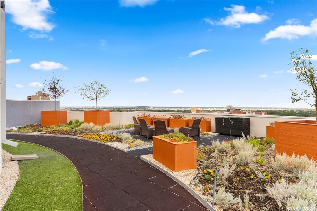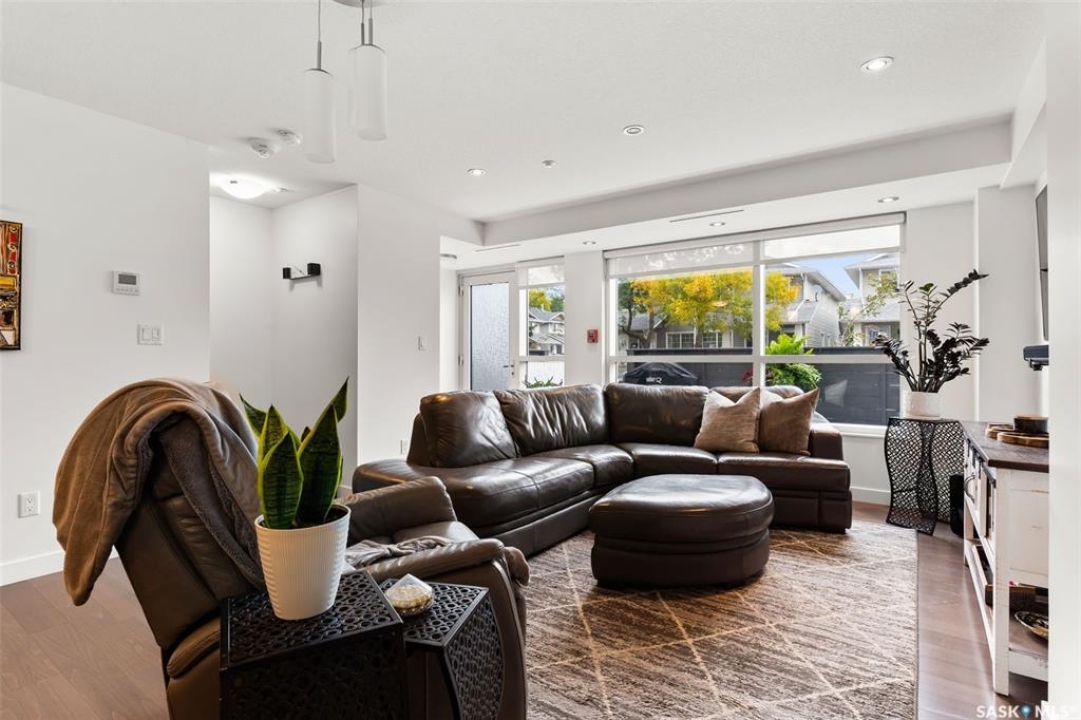 Welcome to this unique and stylish condo ideally located in Regina's Transition area. Bright and open the main floor offers expansive windows, a street-level entrance and private outdoor patio area. Step inside and you will be welcomed to a modern kitchen with plenty of prep space, matching appliances and living and dining areas ideal for entertaining. A thoughtful pantry, designated mudroom and direct access to the underground parking complete this floor. Upstairs, enjoy a spacious primary suite with walk-in closet and luxurious 4-piece ensuite. Here you will also find a versatile den, 2nd full bathroom and laundry/storage room. Additional perks include generous underground parking with storage unit, access to the roof top patio, walking track and fitness centre and condo fees that include heat and water utilities. With its unbeatable location, smart layout and elevated finish this condo is the perfect blend of comfort, style and convenience.
