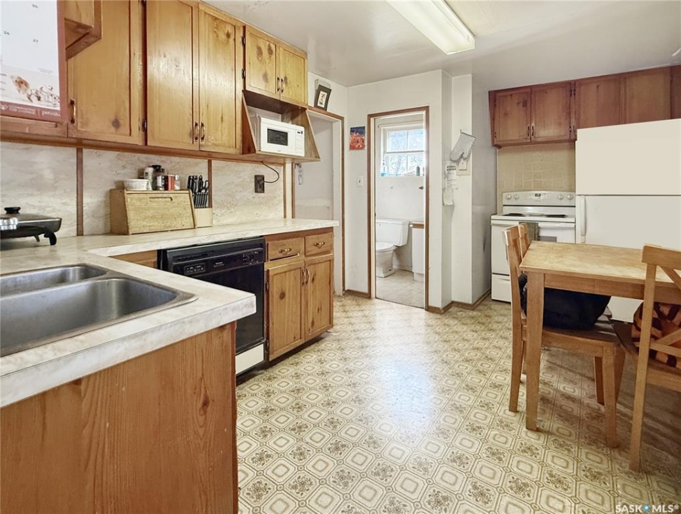 Are you considering expanding your real estate portfolio or seeking an affordable living option ideal for first-time homebuyers or down-sizers alike? This property offers 756 square feet of main floor living space, featuring a bright and inviting front living room. The home includes two generously sized bedrooms, a four-piece bathroom, and a well-appointed kitchen located at the rear. The kitchen is equipped with essential appliances, including a refrigerator, stove, dishwasher, and features an eat-in dining area that overlooks the yard, in addition to an independent dining space adjacent to the living room. The basement provides potential for additional living space, currently utilized for storage, and houses the washer and dryer. Notable updates include a water heater installed in 2022 and a new roof added in 2019. The expansive backyard offers extra parking options and is situated on a corner lot, providing a central location with convenient access to downtown and the highway. This property presents a wonderful opportunity for those seeking a blend of comfort and accessibility. For further details or to schedule a personal viewing, please inquire for more information.