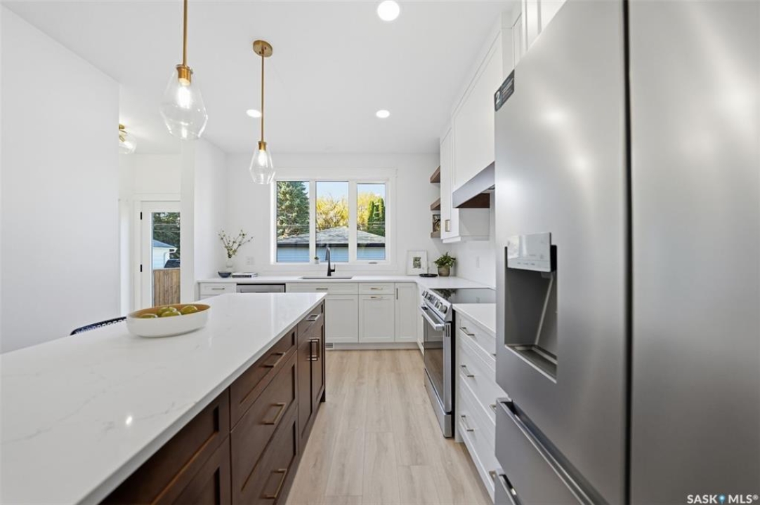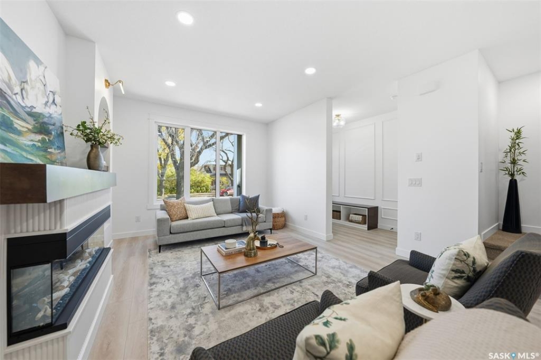 Here is your dream property just mere steps from the river and connected to Saskatchewan Crescent. The easy access to downtown and close to all amenities makes this location very desirable. Situated at 1914 Herman Ave is this new custom 1672sqft two storey outfitted with high end finishings and many features throughout, including a double detached garage and even basement suite ready! The curb appeal welcomes you with Hardie Board siding on the front of the home accented with a front covered landing. Inside the main floor you are greeted with 9' ceilings with huge windows at both ends of the home allowing for an abundance of natural light. The floorplan is an open concept layout with an upgraded designer kitchen, white cabinets accented with a maple stained island topped with quartz counters. There is a full kitchen appliance package included. There is a full size walkin pantry to host all your supplies for cooking and entertaining to help keep you fully organized. Extra features such as a built in coffee/drink bar with an under counter refrigerator helps make this home feel luxurious. The living room boasts custom wall features & a 3 sided fireplace. Upstairs hosts your 3 bedrooms & 2 more bathrooms & laundry off the bedrooms. Also featured upstairs is another living space with the bonus room - with a feature wall to tie it all together. The primary bedroom has a walkin closet & a 3pc ensuite bathroom with a tiled walkin shower. Downstairs you have the added feature of hosting a potential basement suite with separate entrance, boasting 9' ceiling, secondary panel, and roughed in plumbing - this is a very easy location/community to be able to rent out your basement suite for that extra mortgage helper! This home also features a 20x22 garage in the rear of the lot. This home has so many custom features throughout keeping the flow consistent and impressive. Possession is ready to go! Contact our Team today for more info on this home.