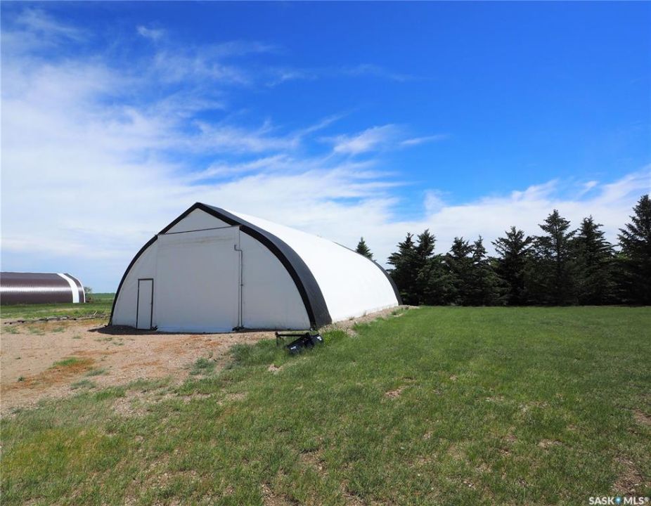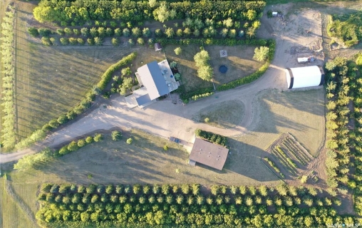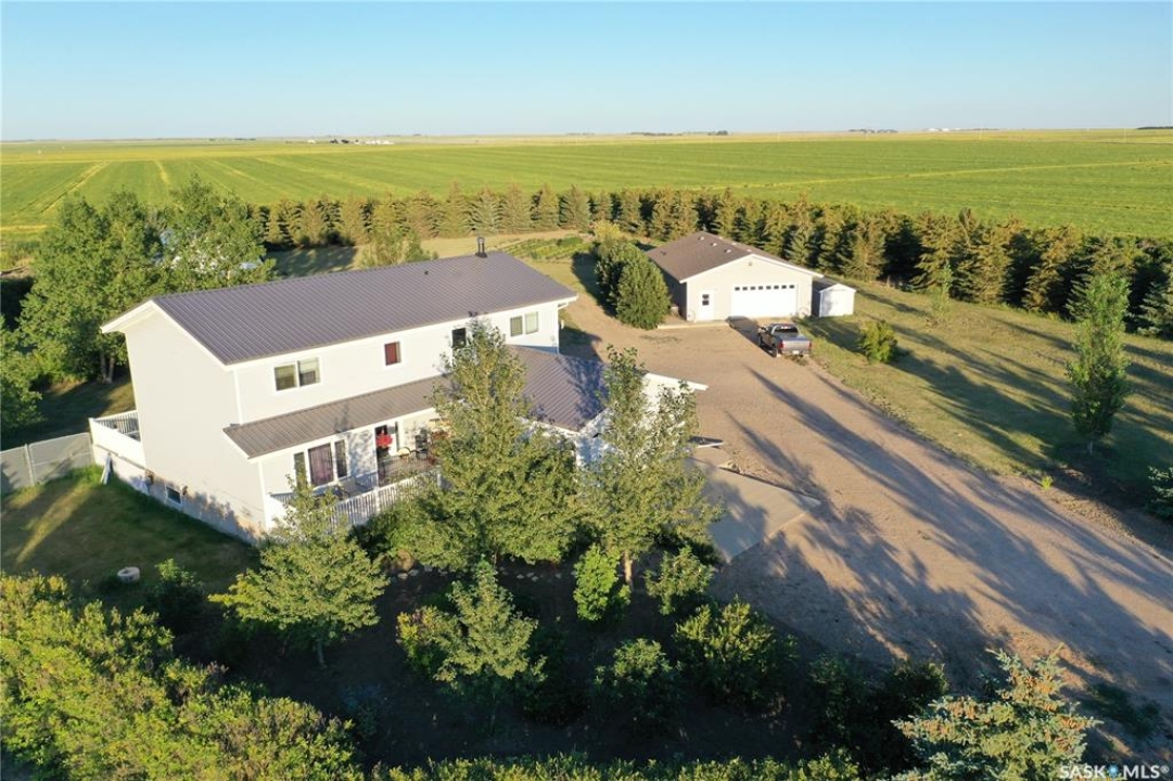 Discover this beautifully developed acreage just a few minutes south of Kindersley! This two-storey home, built in 1981, is situated on a nicely matured yard covering 5.5 acres. Upon entering, you'll find a spacious entryway with ample closet space. The cozy living room features a wood fireplace and patio doors that lead out to the back deck, perfect for outdoor gatherings. The open dining and kitchen area boasts large windows that offer a fantastic view of the backyard. Additionally, there is a second dining area off the kitchen, ideal for large family gatherings, along with another living area for relaxation. Completing the main floor are a three-piece bathroom and a laundry room with a sink. On the second level, there are five bedrooms, including the large master bedroom, which offers a three-piece en-suite and a walk-in closet. A four-piece bathroom finishes off this level. The basement includes a family room, a four-piece bathroom, a sixth bedroom, and plenty of storage space, as well as a utility room housing the boiler, BoilerMate, and water softener. Additional features of this property include being on the town water line, an attached one-car garage, a 1500 sq. ft. shop with in-floor heating and a bathroom, an additional tarp shop, and a large fenced-in backyard. The house also has a new metal roof, installed in 2019. This property is a must-see! Call today to book your personal tour!