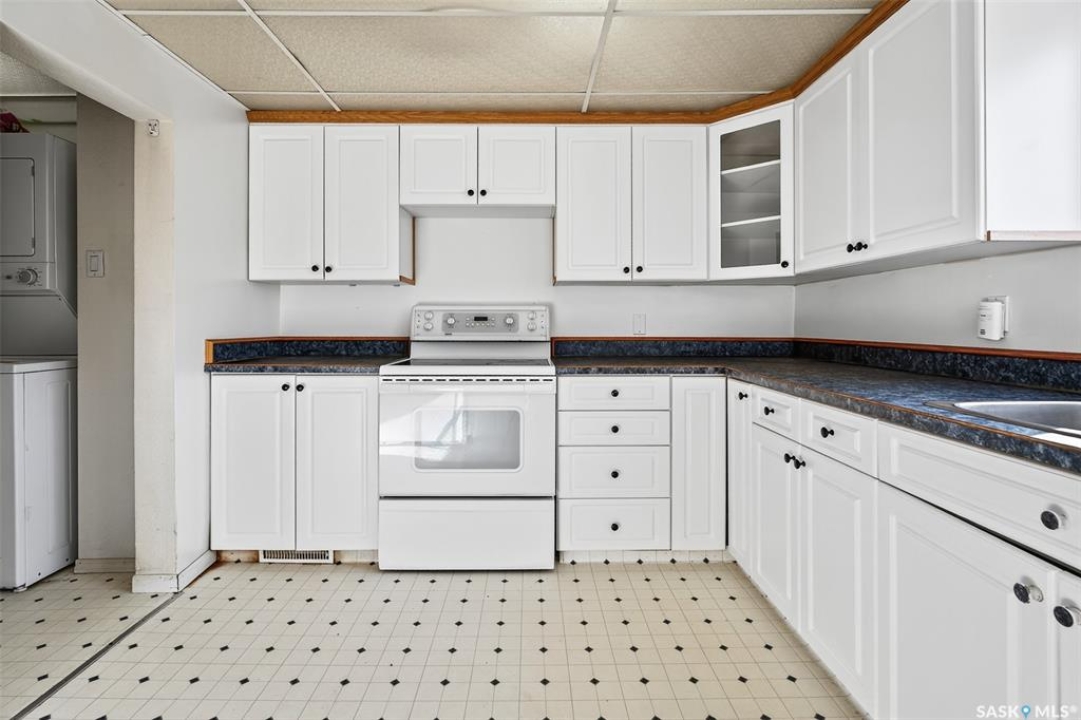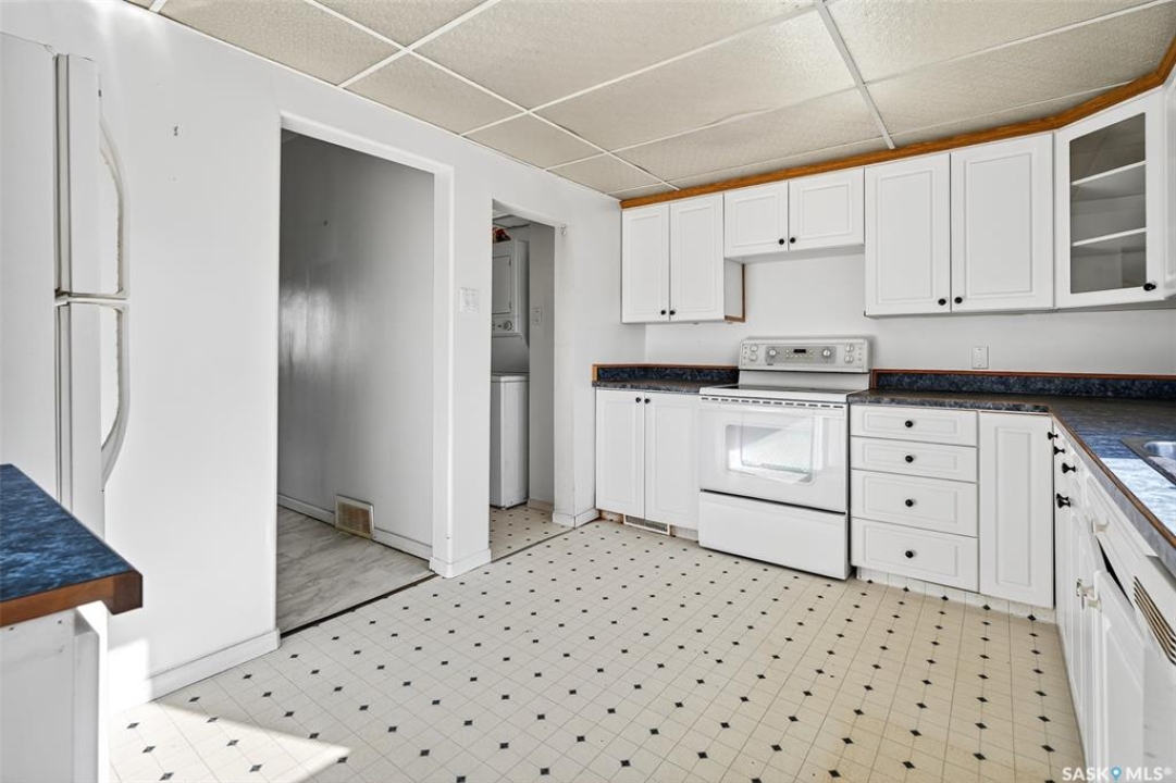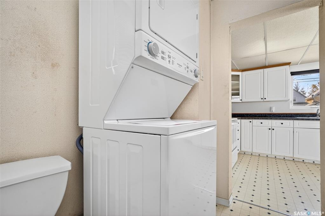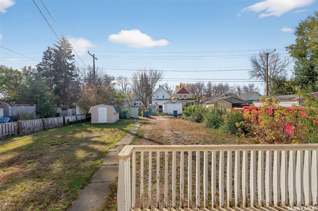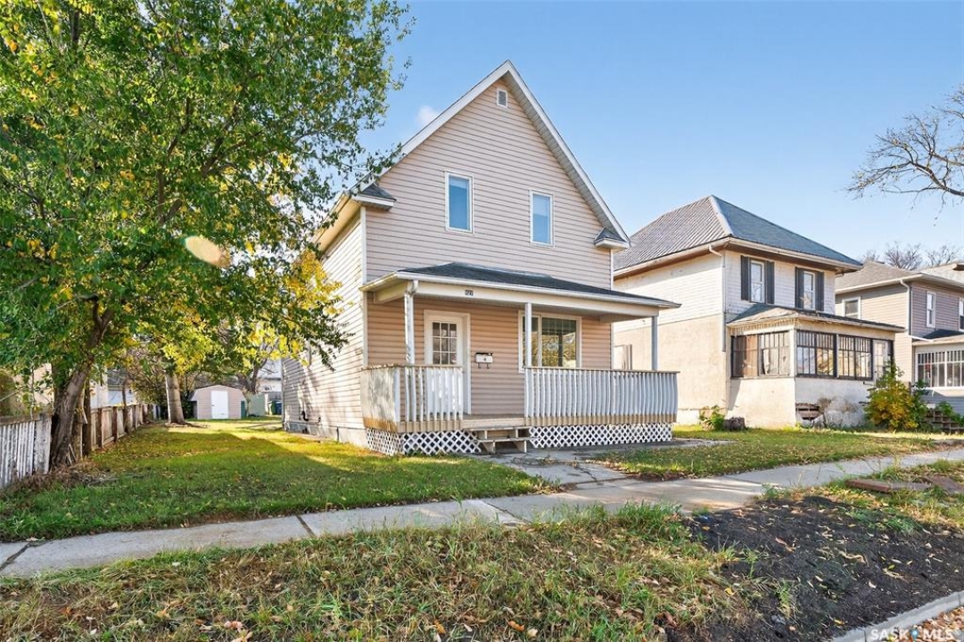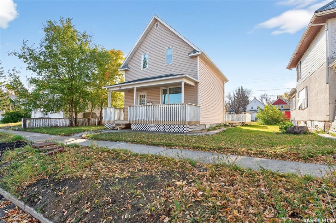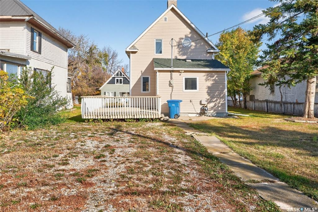 CHARMING 1 3/4 Storey Home on 50x125 ft lot.... Main floor features large living room/dining room, bright kitchen with ample white cabinets, a 1/2 bath and main floor laundry complete with newer stackable washer and dryer. Upstairs we find 2 bedrooms and a 3pce bathroom featuring a unique corner clover-leaf design tub. Open veranda on the front to sit out on and also features a good size back deck. Large back yard with room to build a garage. Updates include water heater, most windows, some flooring and a new furnace (2025). Call A REALTOR Today To View!!!