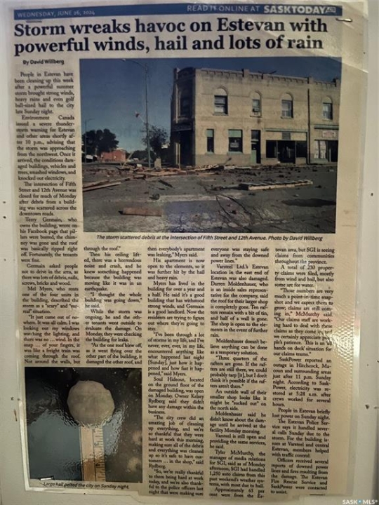 ATTENTION INVESTORS & CONTRACTORS! Exceptional opportunity in the heart of Downtown Estevan! This 12,000 sq. ft. (100' x 120') commercial lot is ideally located just one block from the city's four major banks and a variety of retail stores — a prime location for your next investment or redevelopment project. The existing building sustained significant damage in the June 2024 hailstorm and requires extensive renovations. Price reflects lot value. An insurance claim is currently in progress, and a Phase 1 Environmental Report is included. With its excellent downtown exposure and flexible layout, the property offers great revenue potential, featuring multiple options for main floor retail space and upper-level living quarters. Realtor Owned Property.