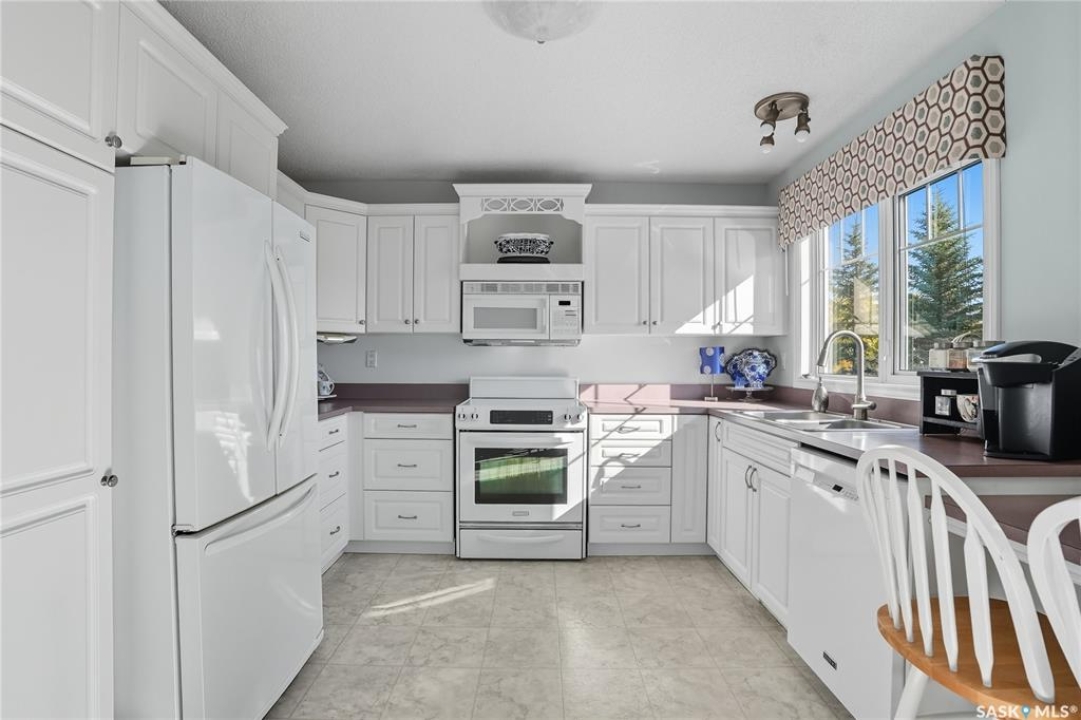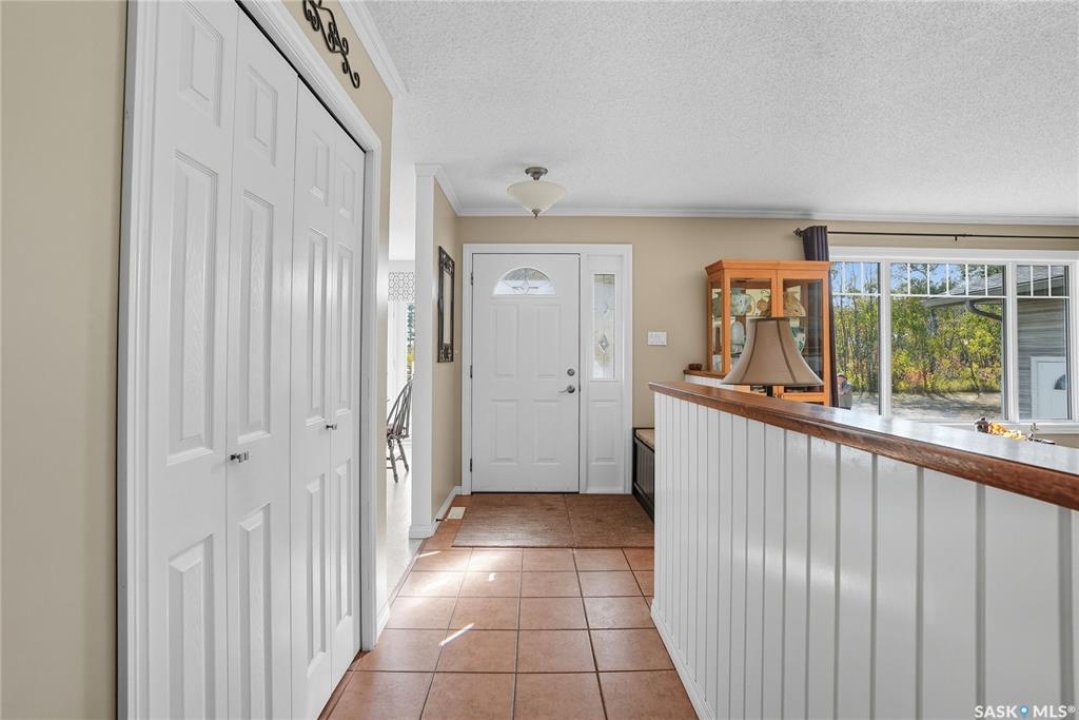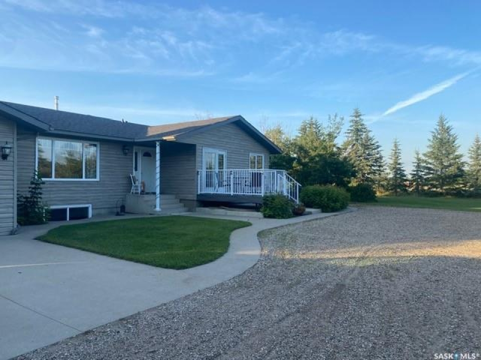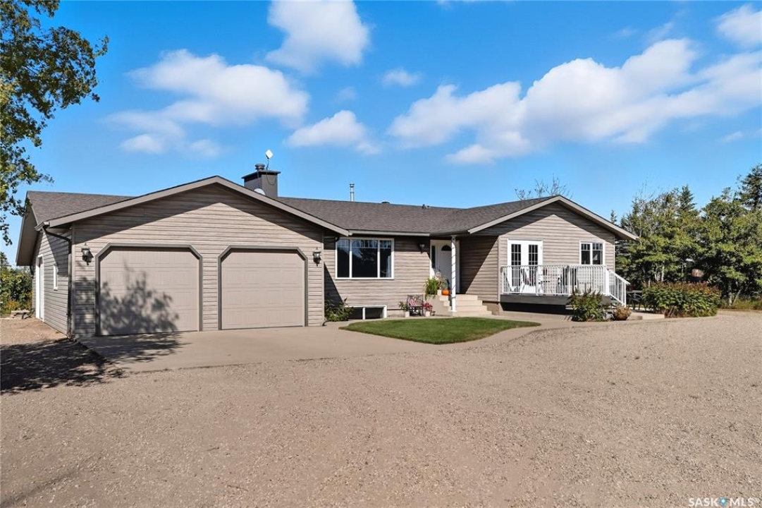 Location, loacation! Only 10 minutes from Saskatoon - this 1392 sq ft raised bungalow is just minutes off Highway 14. Sitting on 10 acres of land that could be easily be subdivided to create revenue and get a return on your investment. Trails wind through the trees and bush, giving you and your family the chance to enjoy dirt biking, quadding, snowmobiling, or even horseback riding right on your own property! The 24'x42' triple car attached garage/shop features 10' ceilings, a spacious work area, and plenty of shelving and storage for tools and toys. Inside the house, you'll feel the character the moment you walk in. The bright living room welcomes you with south-facing windows that flood the space with natural light throughout the day. In winter, the passive solar gain helps keep things cozy, and the wood-burning fireplace adds warmth and charm on a cold winter day. The kitchen is open and functional, with lots of cabinet space and room to host family meals and get-togethers. Just off the kitchen, you'll find a 2-piece guest bath and a convenient main floor laundry room. The main floor also features three big bedrooms and a 3-piece bathroom. Downstairs, the fully developed basement offers two more bedrooms, a large living area, and oversized windows that brighten the space and make you forget that you're in a basement. There's room for a games area, TV room, kids zone, or even a pool table! The property is serviced with natural gas and electricity, and includes a cistern for water that can be easily filled by hauling your own city water, or by delivery. The septic system consists of a concrete holding tank and a grey water pump out. Don't worry about getting the kids to and from school in Saskatoon, because school buses pick up right at the driveway go to elementary, and high schools in Saskatoon! This acreage has had thoughtful upgrades along the way, including newer windows and extra insulation on the exterior walls and in the attic. Book a showing today!