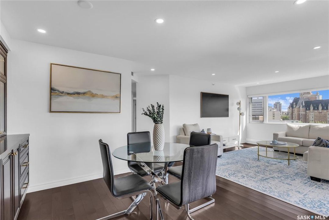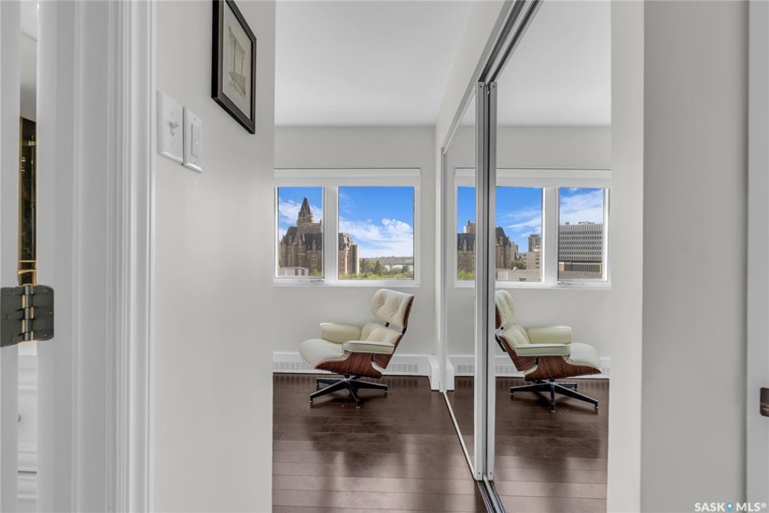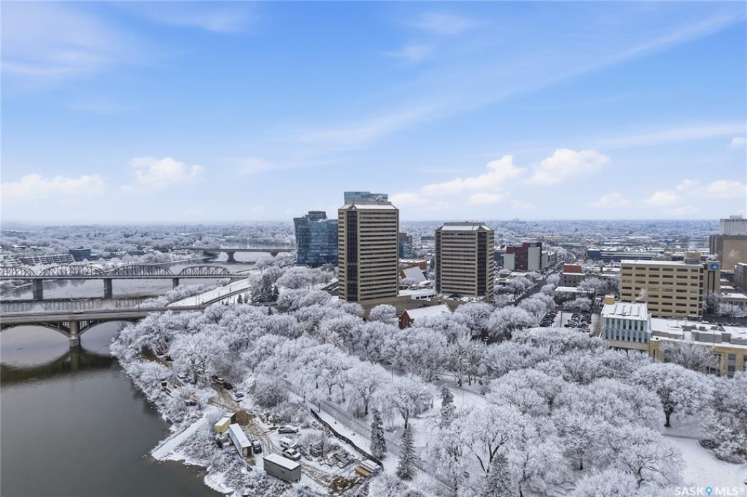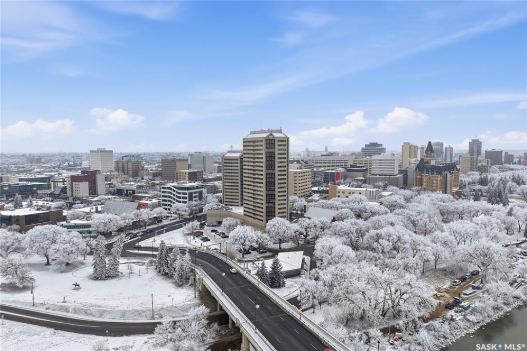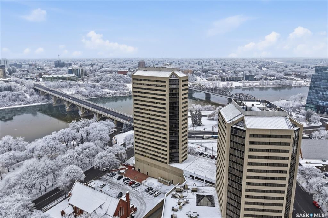 The Renaissance – Iconic Views & Urban Living Welcome to The Renaissance, where location, lifestyle, and luxury come together. This 2-bedroom, 2bathroom condo has been extensively renovated and is completely move-in ready—offering not just a home, but a statement. From the moment you step inside, the unmatched view steals the show—looking directly onto the historic Bessborough Hotel and beyond. Whether it's sunrise coffees or sunset wine, your private space frames one of the best views in Saskatoon. Located just steps from the Saskatchewan River, walking and running trails, and a short stroll to Broadway, you're never far from local gems like Poached, Shelter, and Cafe Del Rey. The best of Saskatoon's dining, coffee, and culture is truly at your doorstep. And when you're not out enjoying the neighbourhood? You'll have access to top-tier amenities including a full gym, indoor pool, and waterslide—making it easy to relax or recharge without leaving the building.