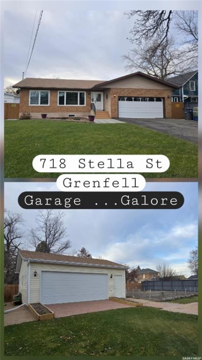 Enjoy the comforts of 718 Stella Street in Grenfell . A great family town and a 3 bedroom plus 3 bath home that will sure to please what you are looking for. Well maintained home searching for a family of retired couple! Step into this 1986 solid bungalow with 1304 sq ft on main level and another 1304 sq ft in the finished basement. Situated on a 66' x 165' and located across from the Health Center and down the road from the Elementary School. Exterior highlights to include... Fenced yard with well planned & productive garden , deck (16' x 20') with gazebo, a firepit space, and new in 2023 a double detached garage (24' x 24') in the back yard for all the storage and work space you desire. The home has an attached garage (28' x 20') another bonus to the property. Main floor of the home is spacious and a great design to provide a semi - private living room from the dining room and kitchen. New hard wood flooring throughout the main areas gives the space a seamless transition. Check out the classic white kitchen with an abundant of storage and counter space for the chef/baker in the family. Lots of natural light filter through the new vinyl windows. Ceilings, crown moldings , baseboards and paint are some of the updates in the area. Spacious primary bedroom that fits a king bed and has "HIS & HER" closets with organizers. Bright and clean 4 piece bathroom , has a new vanity, sink, paint and lighting. 2nd bedroom allows for a queen bed , and a new barn door for the closet. Storage is not a concern here , with 3 closets in the hallway. The south side door enters into a porch, laundry room and 1/2 bath. A perfect place to wash up from the garden or use the convenient washroom. Basement is finished with 1 bedroom , another guest room(office), a storage room, a 3 piece bathroom and a mechanics room. Extra features: Newer HE furnace & NG water heater (2020), NG stove , NG BBQ hook up, central air , back flow valve. This beauty has it all! Make it your HOME!