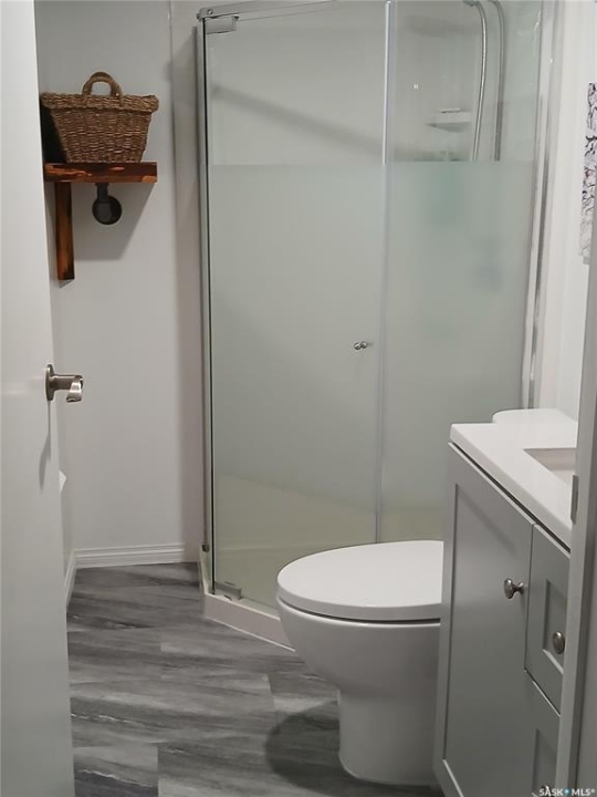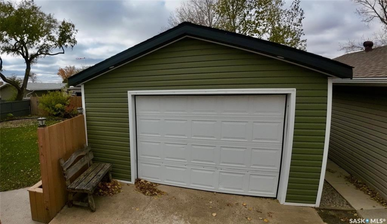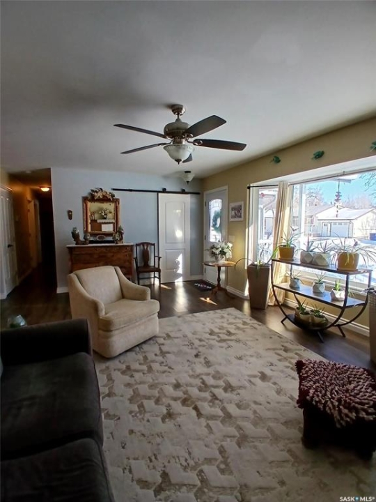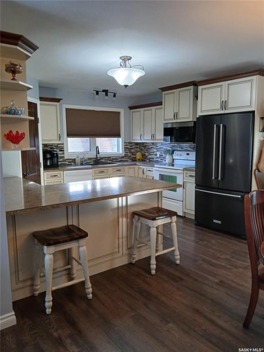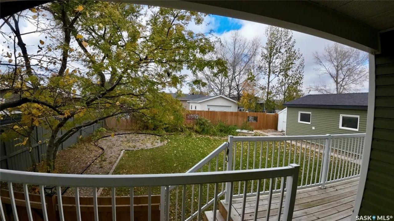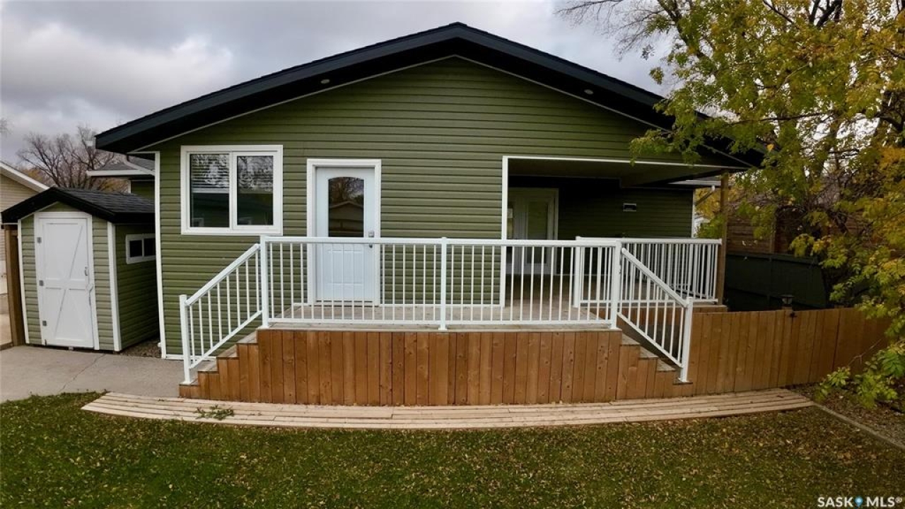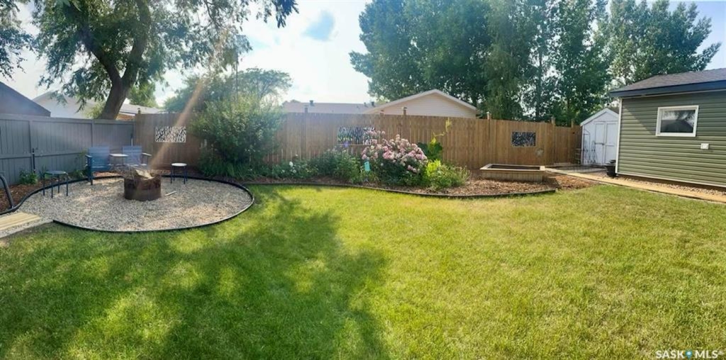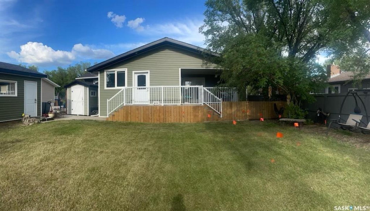 Nestled in a serene cul-de-sac in the heart of Shaunavon, this beautiful home offers the perfect blend of comfort, style, and functionality. Step onto the inviting front veranda and feel instantly at home. Inside, the open-concept main floor boasts a spacious, light-filled living room that flows seamlessly into a well-appointed kitchen. The kitchen is a chef's dream, featuring a corner pantry, ample cabinetry, and large, bright windows that bathe the space in natural light. Garden doors lead directly to a generous back deck, perfect for indoor-outdoor entertaining. The main floor also includes a cozy office space, ideal for a home business, and convenient washer and dryer hookups near the kitchen for added practicality. The master bedroom is a true retreat, complete with a luxurious four-piece ensuite featuring a heated lamp, oversized jetted tub, and dual showerheads. Two additional bedrooms on the main floor offer ample closet space, ensuring comfort for family or guests. The fully renovated basement, updated within the last two years, showcases modern finishes with new flooring, doors, lighting, and a sleek three-piece bathroom. Two spacious bedrooms, a utility room, and a generous storage room complete this versatile lower level. Stay comfortable year-round with central air conditioning. Outside, the professionally landscaped backyard is a private oasis, featuring a new fence (2022), a fire pit area, and automatic underground sprinklers for both front and back yards. A single detached, insulated, and heated garage provides additional convenience. This move-in-ready home combines modern upgrades with thoughtful design, making it perfect for families, professionals, or anyone seeking a peaceful retreat in Shaunavon. Don't miss your chance to own this gem!