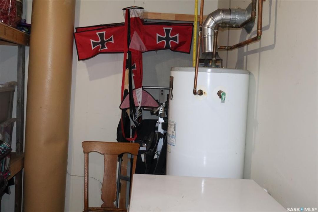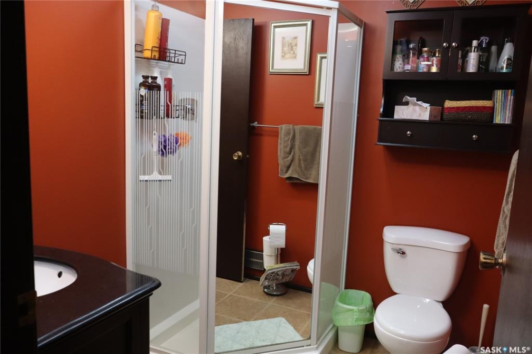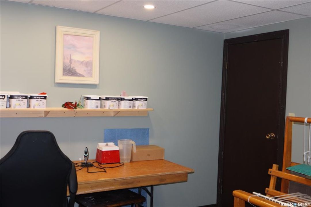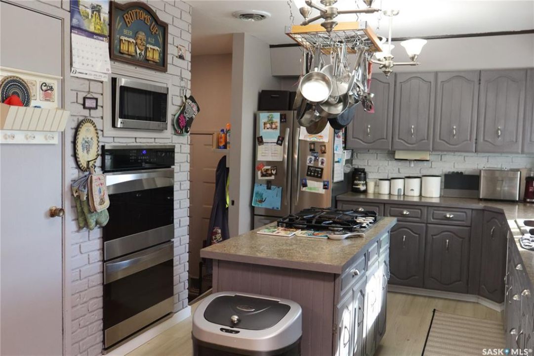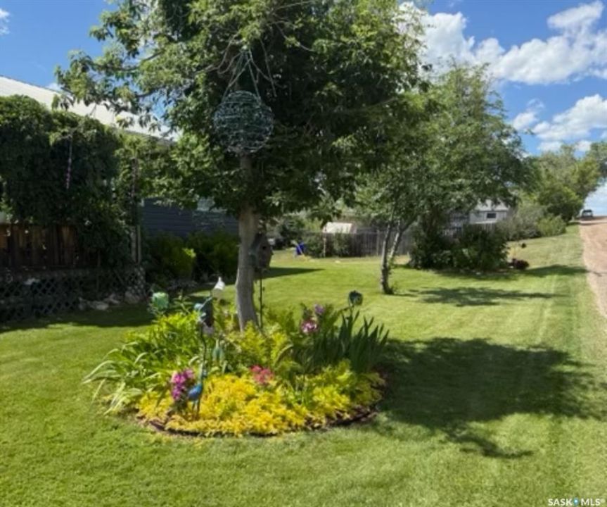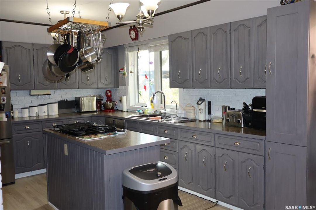 Situated on a spacious double corner lot in the Town of Rockglen, this property showcases upgraded vinyl siding and faux stone accents, complemented by a durable metal roof. All windows and doors are high-quality vinyl replacements. The insulated and heated double attached garage provides reliable year-round utility. Check out the awesome view of the rolling hills! The kitchen features an island with a cooktop, extensive cabinetry, and a nook ideal for a coffee bar setup. An open-concept dining area connects seamlessly to the kitchen and grants access to a tiered deck through a garden door. The living room offers ample natural light via an oversized window. The primary bedroom is enhanced by an updated three-piece ensuite with a walk-in shower. Two additional bedrooms are located on the main floor, along with convenient laundry facilities tucked into the hallway. The developed basement includes a sizable family room equipped with a wet bar, a three-piece bathroom, and a den currently functioning as a bedroom (buyers are advised to verify window egress compliance). Additionally, there is a versatile multipurpose room—well-suited for crafts or hobbies—with attached storage space. The utility room provides built-in shelving and houses a natural gas forced air furnace. The exterior boasts abundant storage solutions, numerous upgrades, and a tiered deck designed for outdoor cooking and entertaining. The landscaping is arranged for low maintenance and incorporates underground sprinklers. This property is ready for its next family to enjoy.