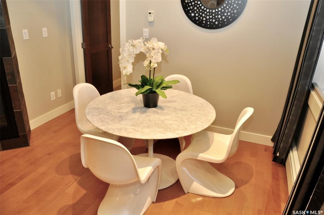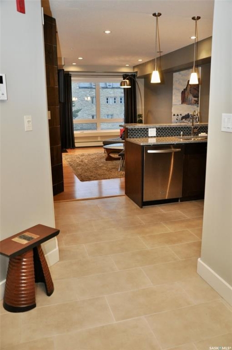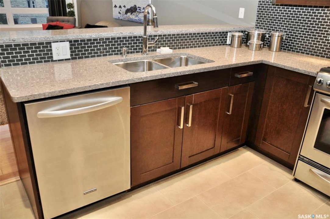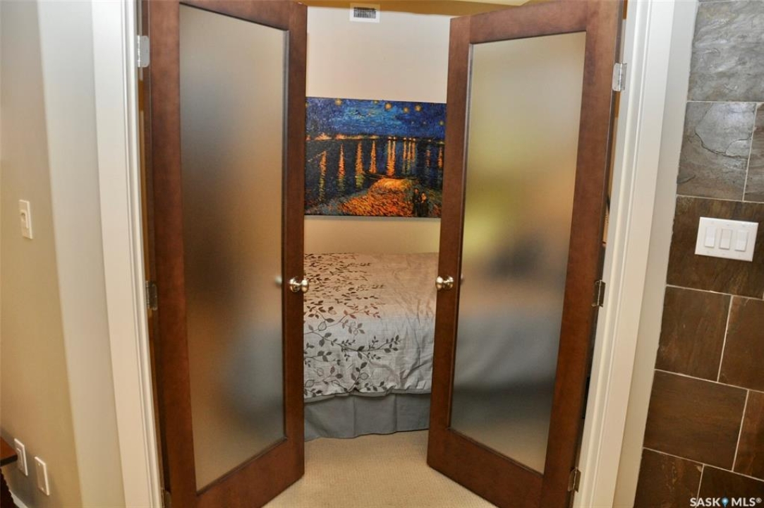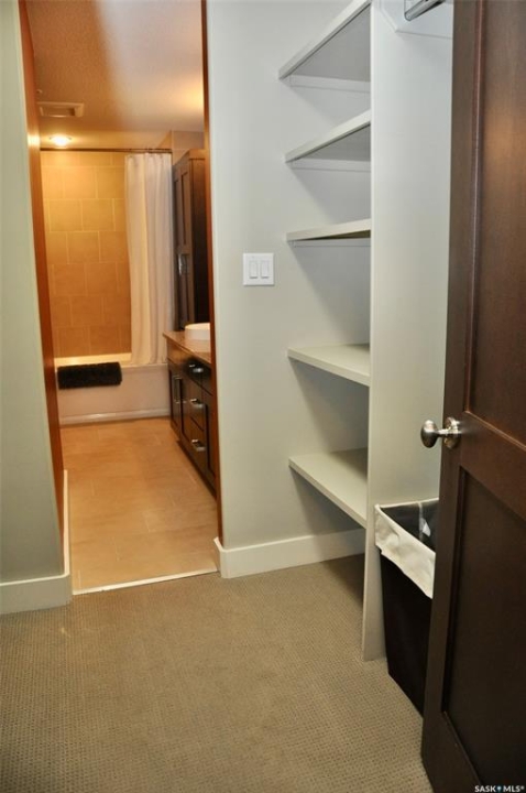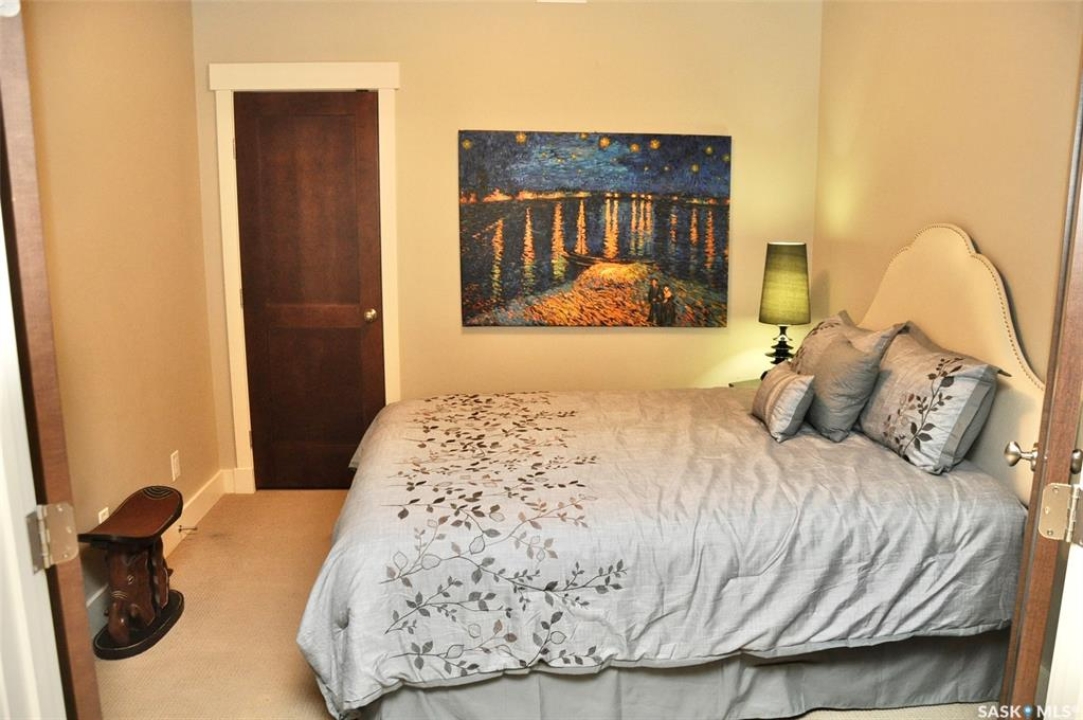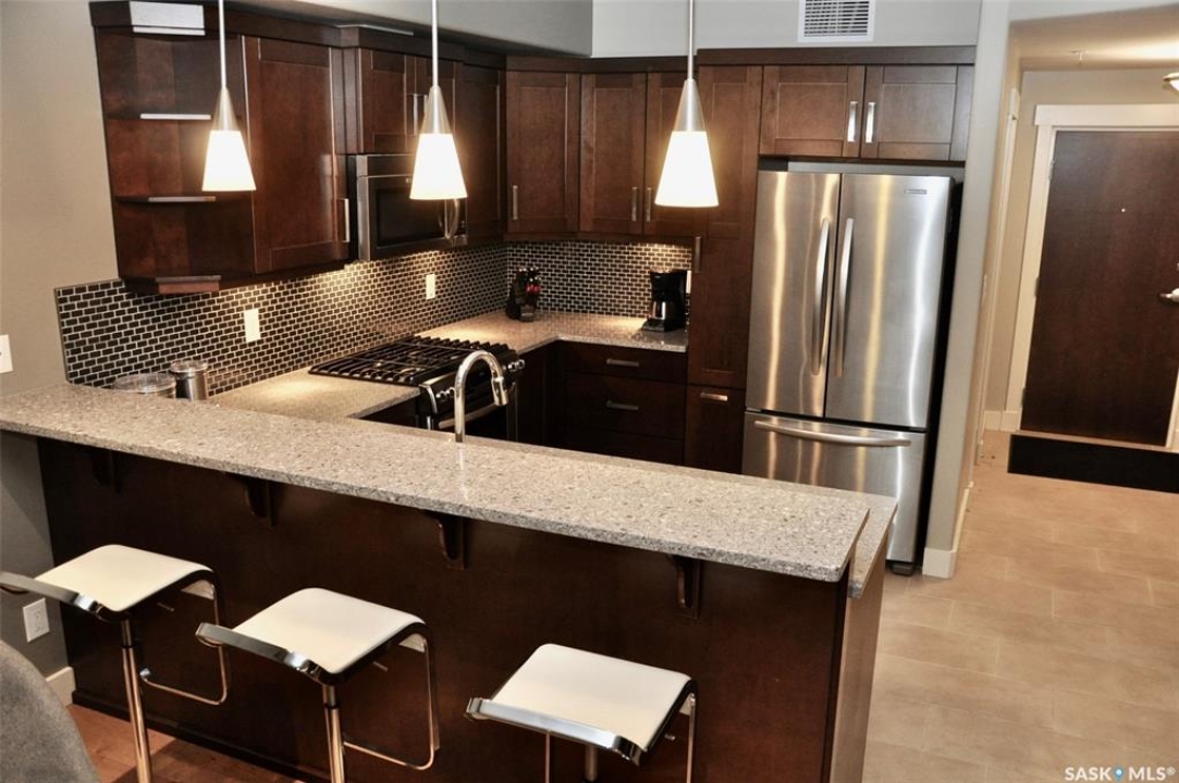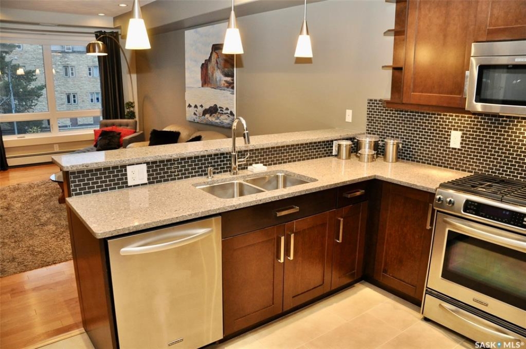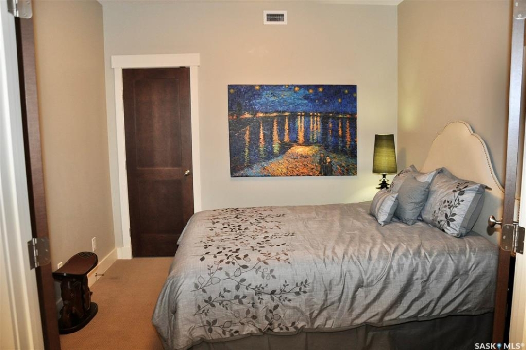 Welcome to this lovely condo in J.B. Black Estates situated across the street from the University of Saskatchewan and both Royal University and Jim Pattison Children's Hospitals. Ideally located within close proximity to downtown, river valley and walking trails and the vibrant Broadway District, this great unit offers two bedrooms two baths large bright open living area featuring hardwood and tile floors. natural gas fireplace, ample kitchen cabinets with granite counter tops, snack bar and tile backsplash and offers stainless steel appliances with natural gas range plus 9 ' ceilings. The primary bedroom has double walk thru closets leading to a spa like ensuite with 6'ft jet tub. double sinks, granite counter tops and heated tile floors. The main bathroom has a walk in shower with body jets and full glass doors. Also includes a large storage room/ laundry room, one underground parking stall and storage locker plus natural gas on balcony for your bbq or grill. Call your Realtor to view this fine condo today!